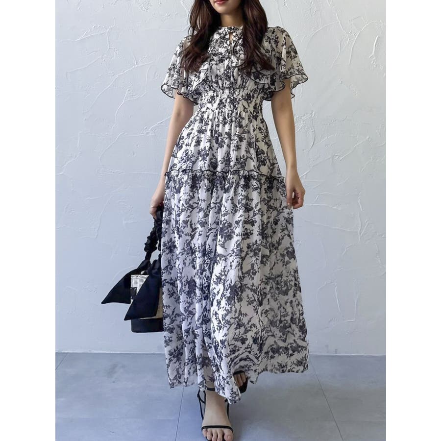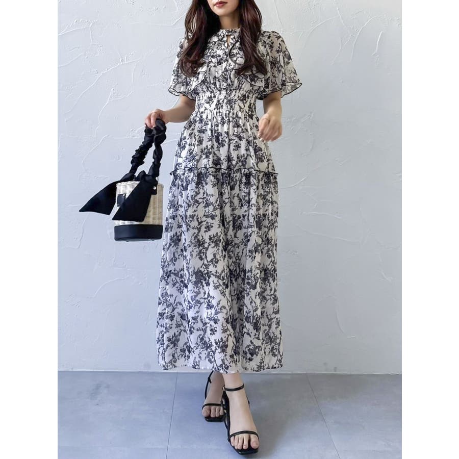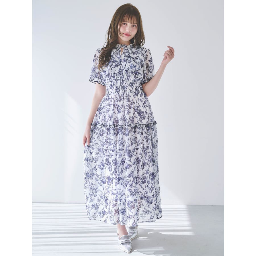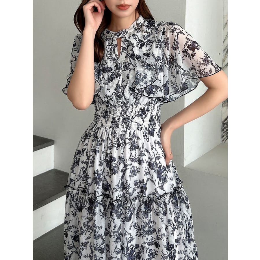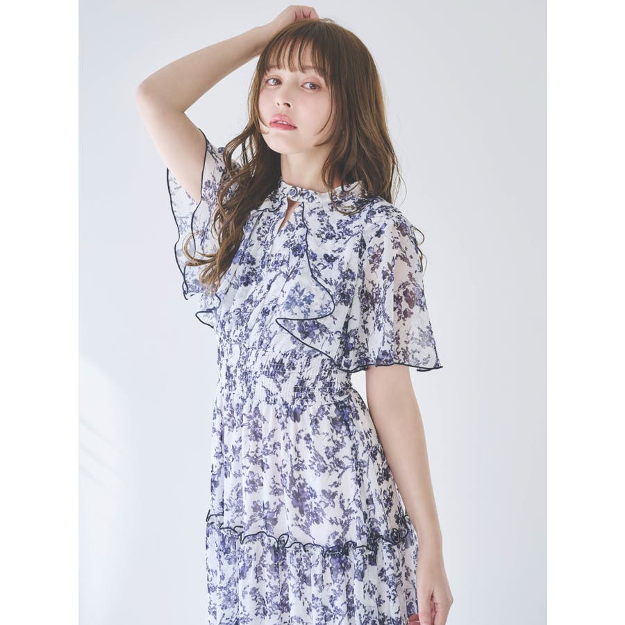 ?dazzlin20周年記念 復刻アイテム? 【アイテム】 dazzlin(ダズリン)名品のワンピースに、新色ピンク、ネイビー、グレーが加わり、ブラッシュアップされた一枚。 みずみずしい水面に漂う花びらをイメージしたdazzlinオリジナル柄で春らしい雰囲気を表現しました。 上半身は軽やかに広がるケープ調のシルエットで、優雅な抜け感を演出。 ティアード部分には繊細なパイピングを施し、動くたびに柔らかな表情を生み出すデザインに仕上げました。 【スタイリング】 ニットカーディガンやジャケットの羽織合わせで、上品で可愛らしいスタイリングが完成します。 シフォン素材なので、ブーツからサンダルまで幅広いシューズと相性が良く、長いシーズン楽しめるのも魅力です。 >>その他ワンピースはこちら<<---------------------------------------------------- 気になるアイテムはお気に入り登録がおすすめ 入荷情報やラスト1点、お得なプライスダウンの情報をいち早くお届け! ぜひご登録ください◎ ---------------------------------------------------- ※実際にお届けする商品と仕様やサイズが異なる場合がございます。 また生産の都合上、お届け時期が前後する場合がございます。