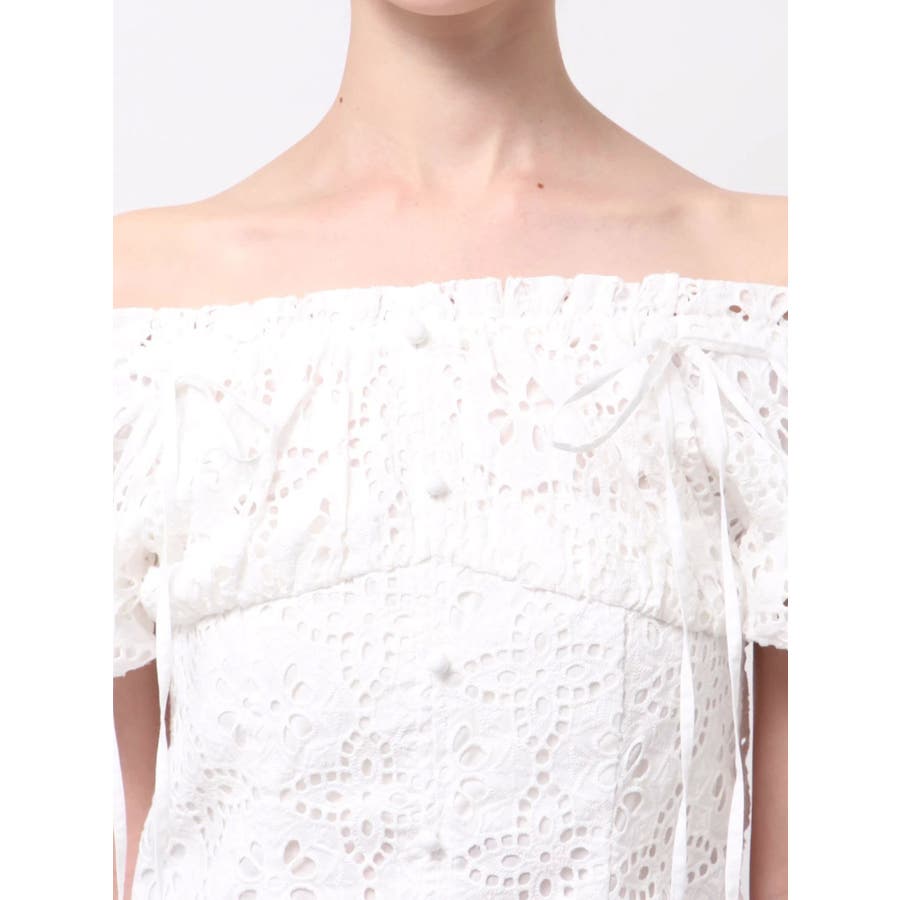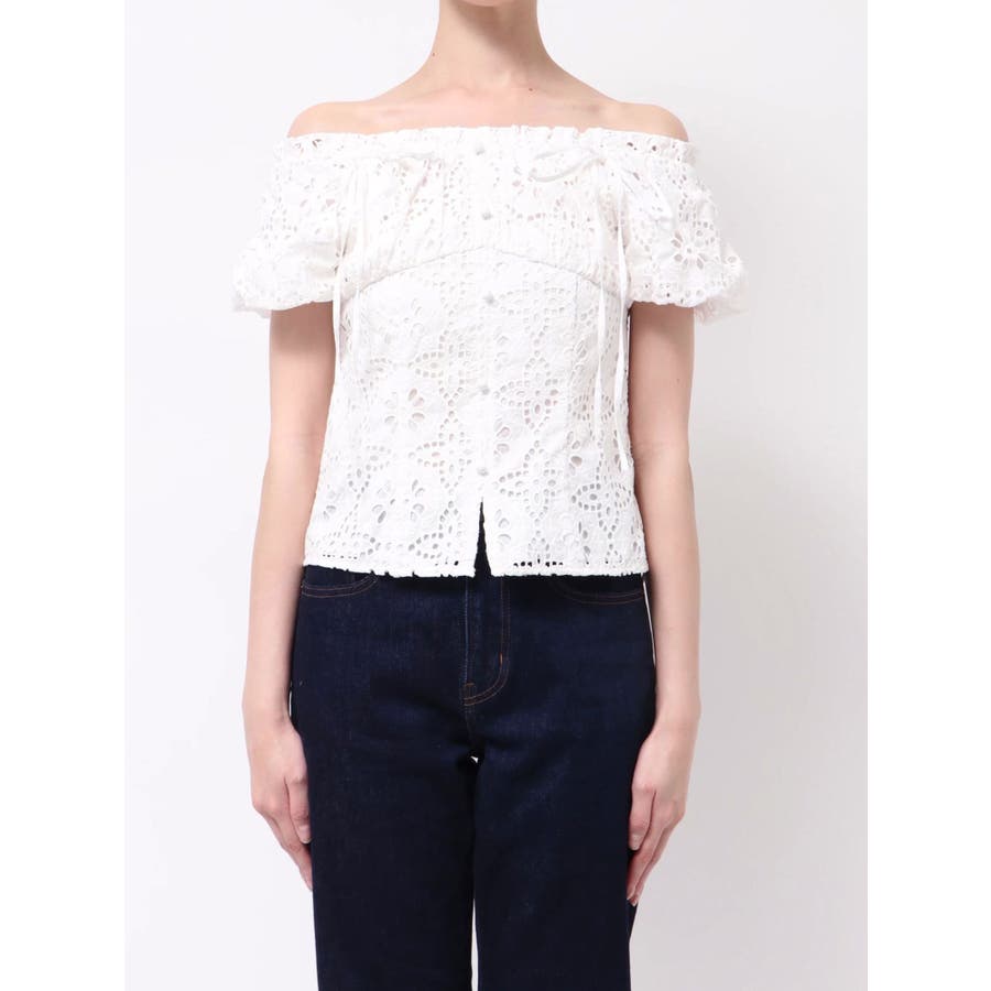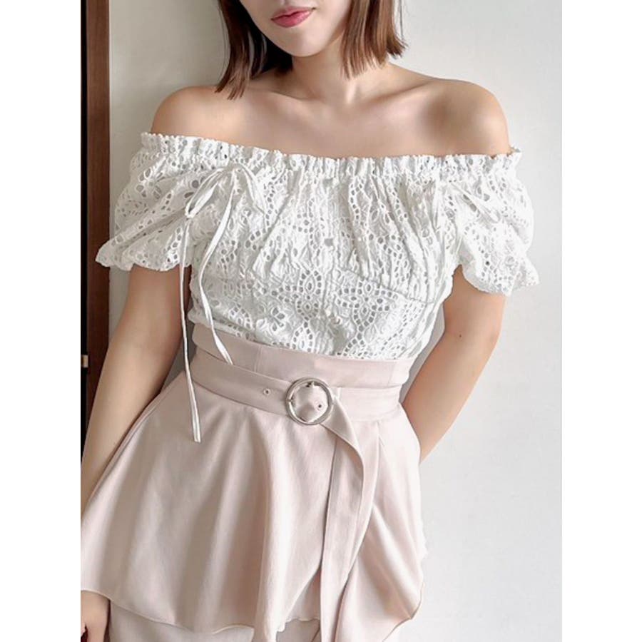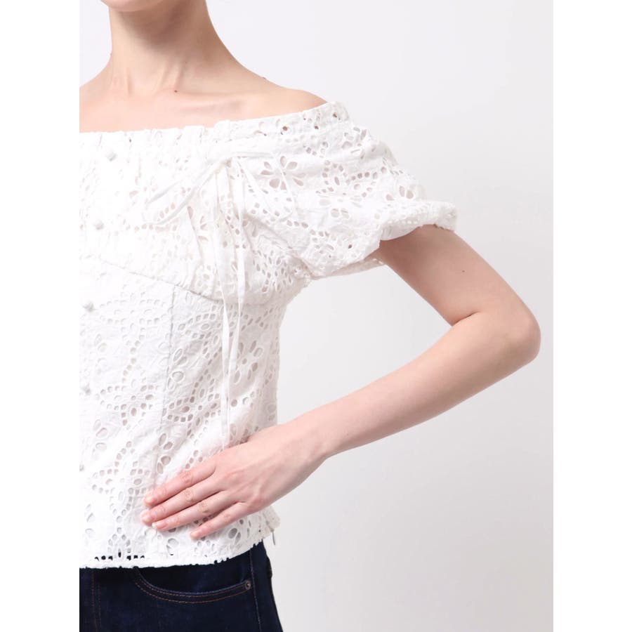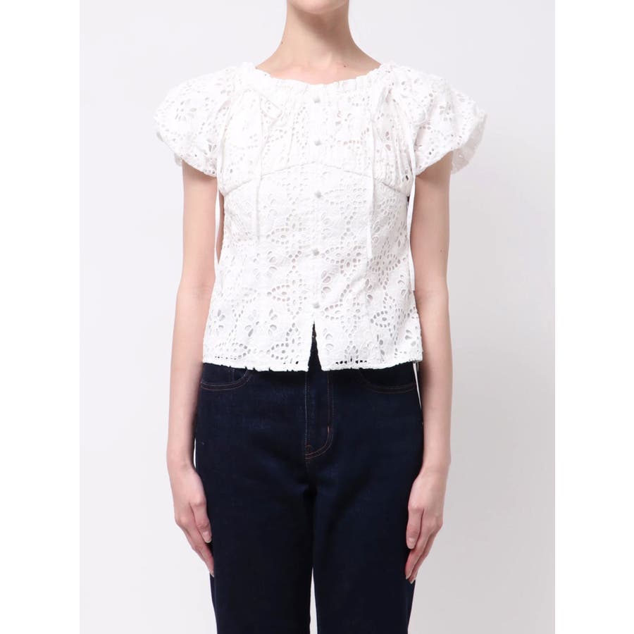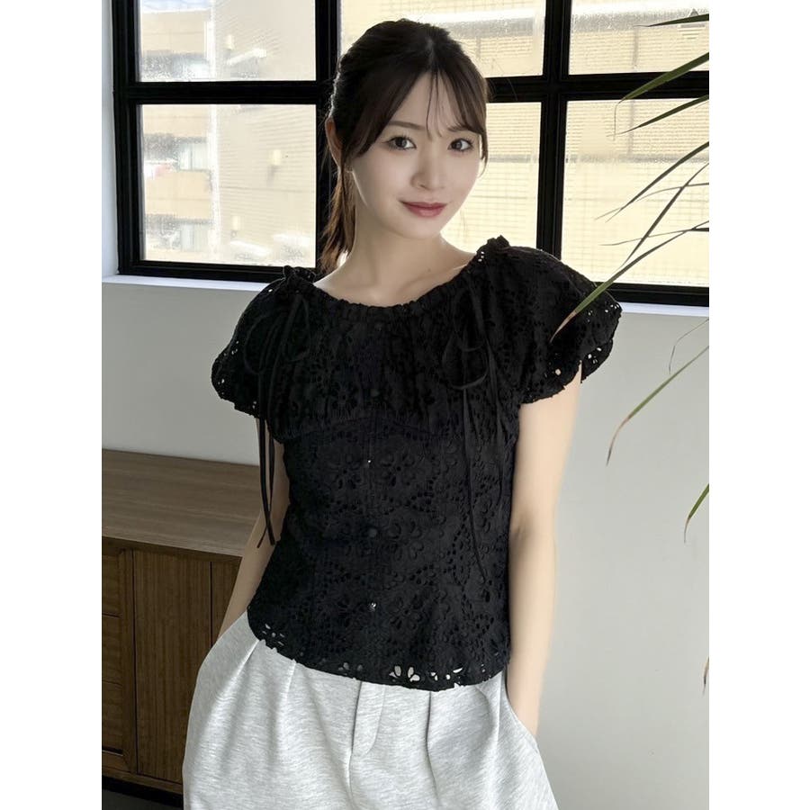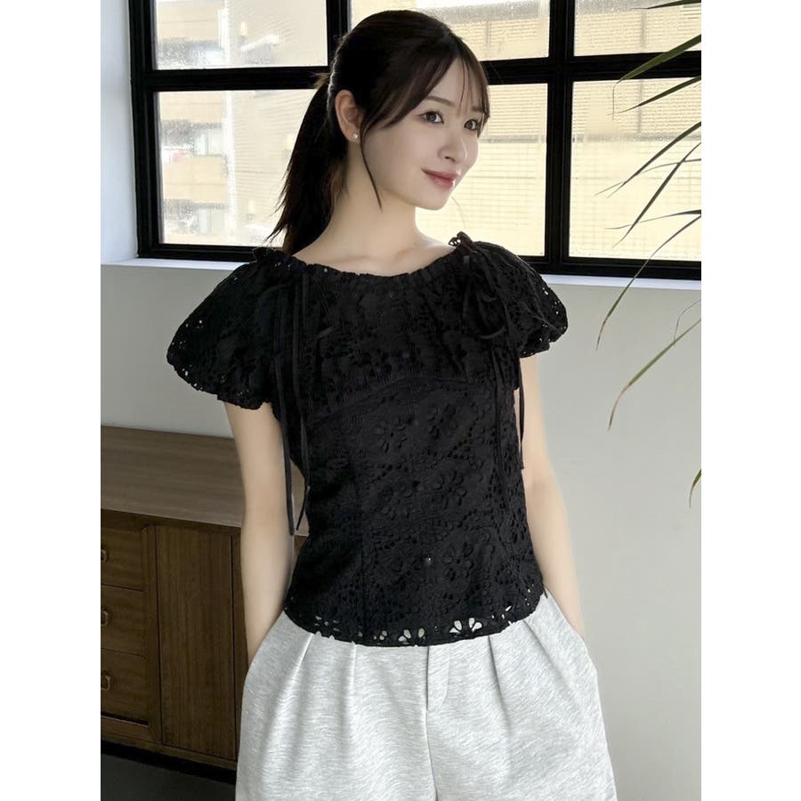 【商品】※本生産時、前ボタン裾にスリット入ります。※詳細画像が正規の商品となります。こだわりの切り替えラインで韓国ライクに仕上げたブラウス。ボヘミアンライクなコットンレースで高級感と、存在感をプラスします。【スタイリング】デニムやチノ系素材のボトムス合わせで甘辛MIXコーデがおすすめ。メリハリが付き、レースの華やかさが際立ちます。