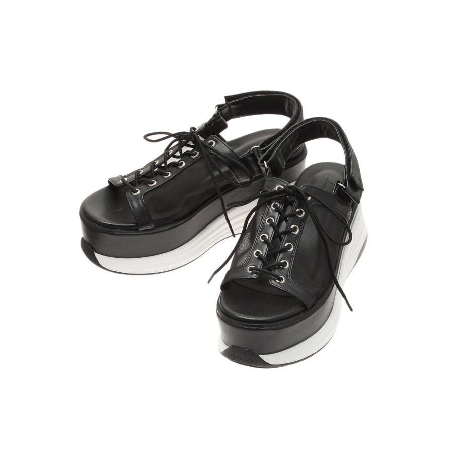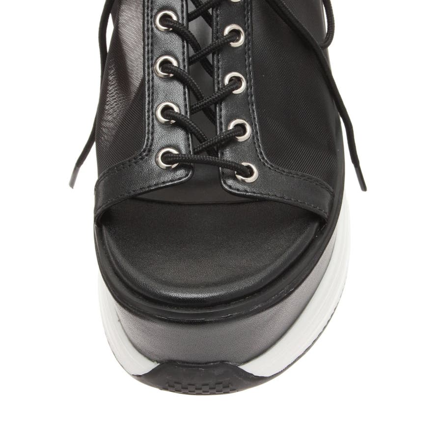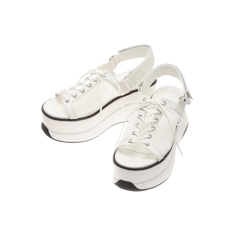 【商品】トレンドのスニーカーアッパーをサンダルにアレンジ。細目の紐でキレイ目にまとめました。程良いボリュームフォルムで存在感がありながらも、合わせやすいデザインでキレイめスタイルにも、カジュアルスタイルにもマルチなコーデにマッチ。安定感のある履き心地なので、デイリーに幅広く活躍してくれます。程よい傾斜のついたソールが、美脚効果を高めてくれます。