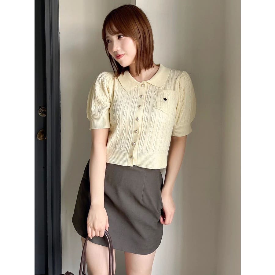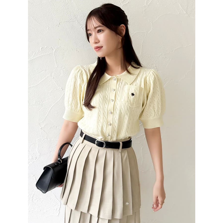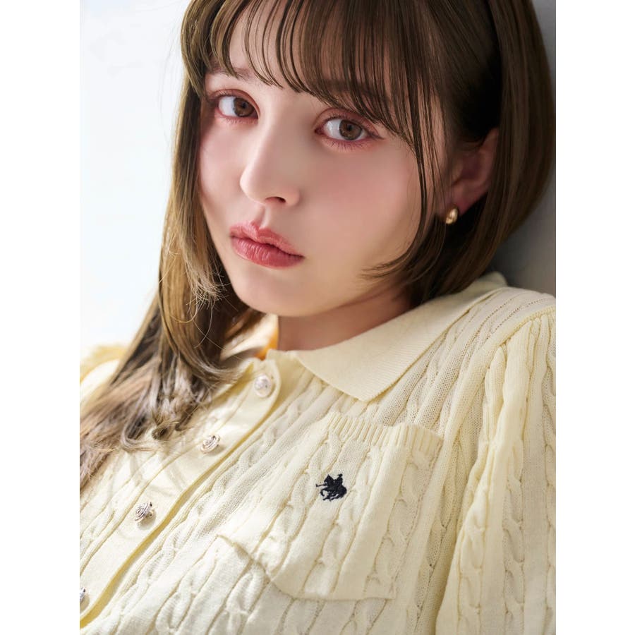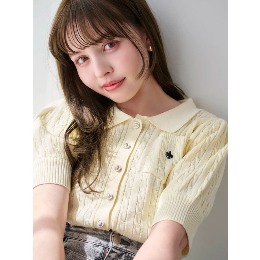 POLO BCS× dazzlin(ダズリン) コラボアイテム5/29 12:00 再受注START!>>その他コラボアイテムはこちら<<【アイテム】 トレンドのケーブル編みを細やかに繊細なムードで編み上げました。 カーデのようなデザインでフロントにボタンを施しキャッチーに仕上げました。 短丈でスタイルアップが狙えるスカートパンツどちらとも好相性。 【スタイリング】 ミディプリーツスカートを合わせてカレッジ風なスタイリングがおすすめです。 足元はフェミニンならローファーで、カジュアルならスポーツサンダルで合わせて足元でテイストを変えながらお楽しみ頂けます。 ▼このアイテムを見ている人にオススメのアイテム・ダブルカラーケーブルレイヤードニット・ランダムタックバルーンスカート・ナナメリボンミニスカート---------------------------------------------------- 気になるアイテムはお気に入り登録がおすすめ 入荷情報やラスト1点、お得なプライスダウンの情報をいち早くお届け! ぜひご登録ください◎ ---------------------------------------------------- ※実際にお届けする商品と仕様やサイズが異なる場合がございます。 また生産の都合上、お届け時期が前後する場合がございます。