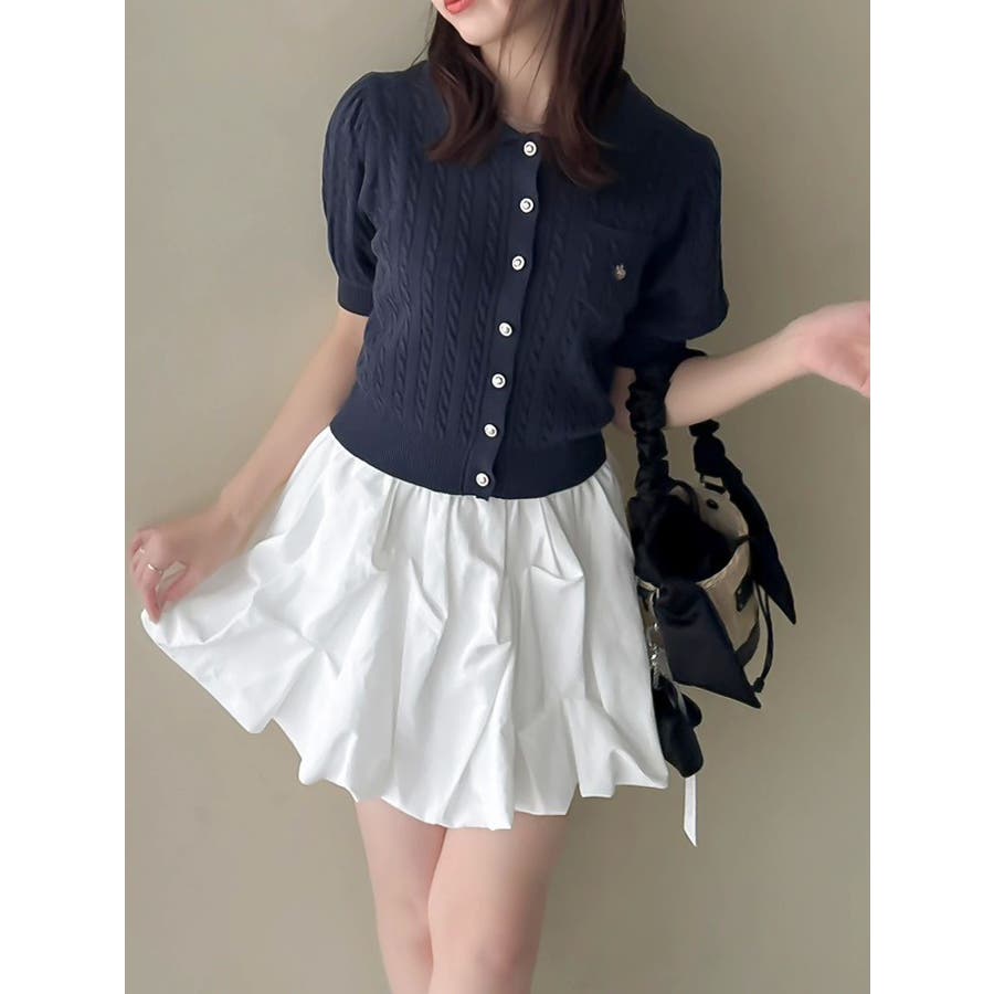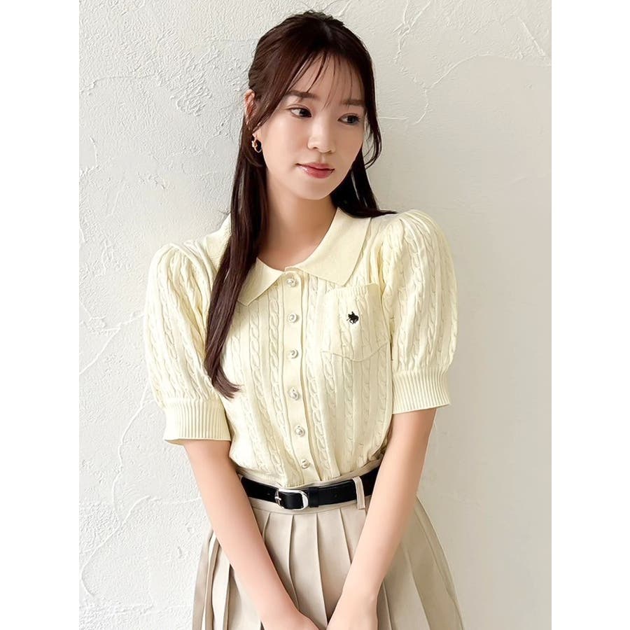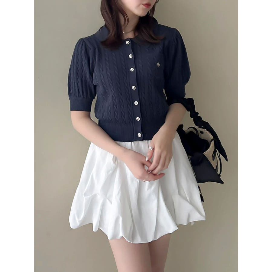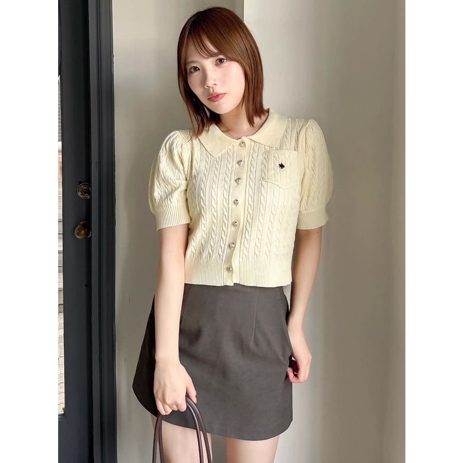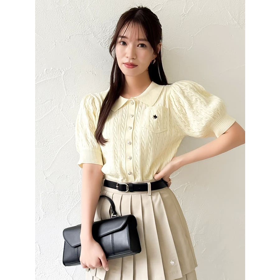 POLO BCS× dazzlin(ダズリン) コラボアイテム5/29 12:00 再受注START!>>その他コラボアイテムはこちら<<【アイテム】 トレンドのケーブル編みを細やかに繊細なムードで編み上げました。 カーデのようなデザインでフロントにボタンを施しキャッチーに仕上げました。 短丈でスタイルアップが狙えるスカートパンツどちらとも好相性。 【スタイリング】 ミディプリーツスカートを合わせてカレッジ風なスタイリングがおすすめです。 足元はフェミニンならローファーで、カジュアルならスポーツサンダルで合わせて足元でテイストを変えながらお楽しみ頂けます。 ▼このアイテムを見ている人にオススメのアイテム・ダブルカラーケーブルレイヤードニット・ランダムタックバルーンスカート・ナナメリボンミニスカート---------------------------------------------------- 気になるアイテムはお気に入り登録がおすすめ 入荷情報やラスト1点、お得なプライスダウンの情報をいち早くお届け! ぜひご登録ください◎ ---------------------------------------------------- ※実際にお届けする商品と仕様やサイズが異なる場合がございます。 また生産の都合上、お届け時期が前後する場合がございます。