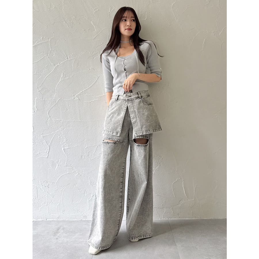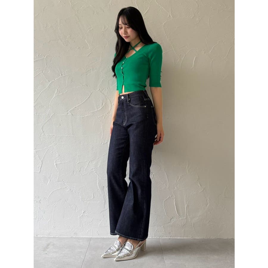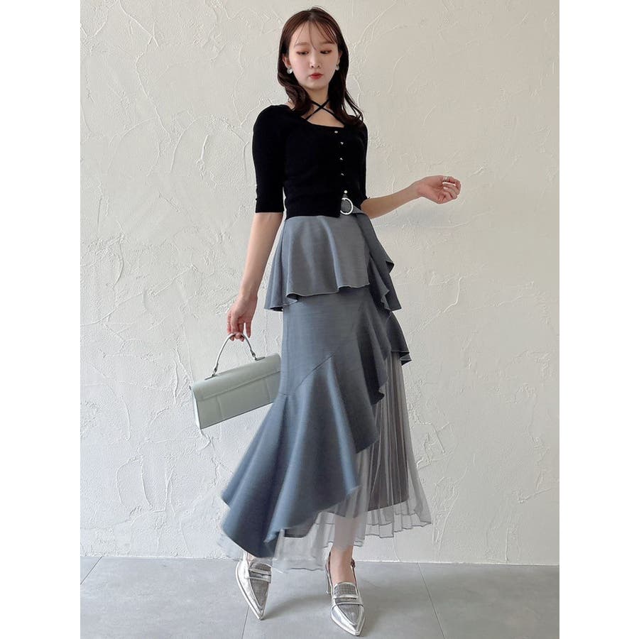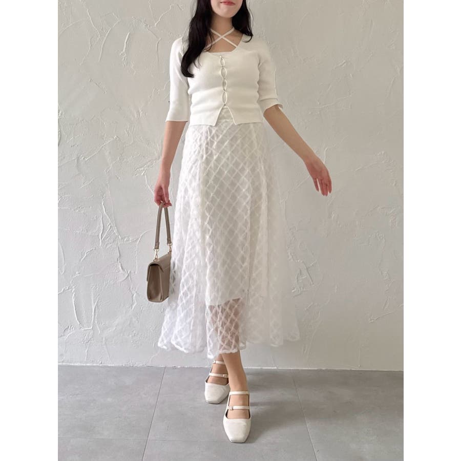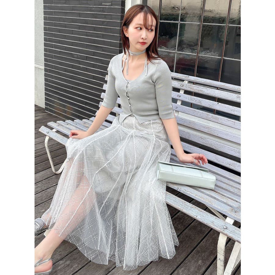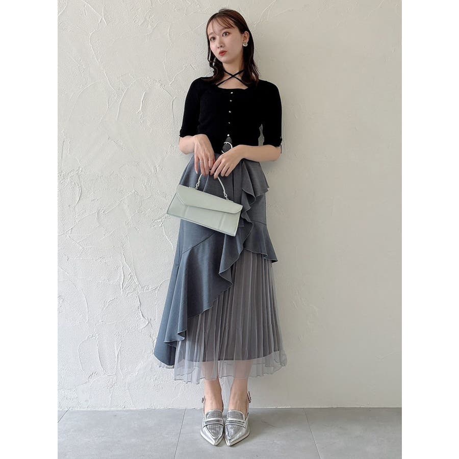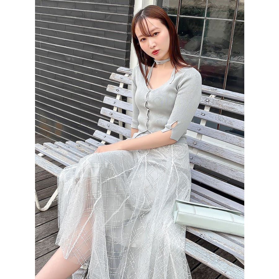 【商品】フロントのチョーカーデザインが一癖放つアイテム。カーデの中にキャミソールを着ているような1枚で手軽にレイヤードスタイルが叶います。表と中で編地を変えており、さりげなさを演出。どんなアイテムにも万能にマッチするのが特徴です。【スタイリング】ボリュームスカート合わせでフェミニンにまとめたり、パンツスタイル合わせでクールなスタイリングにも組み合わせ可能です。