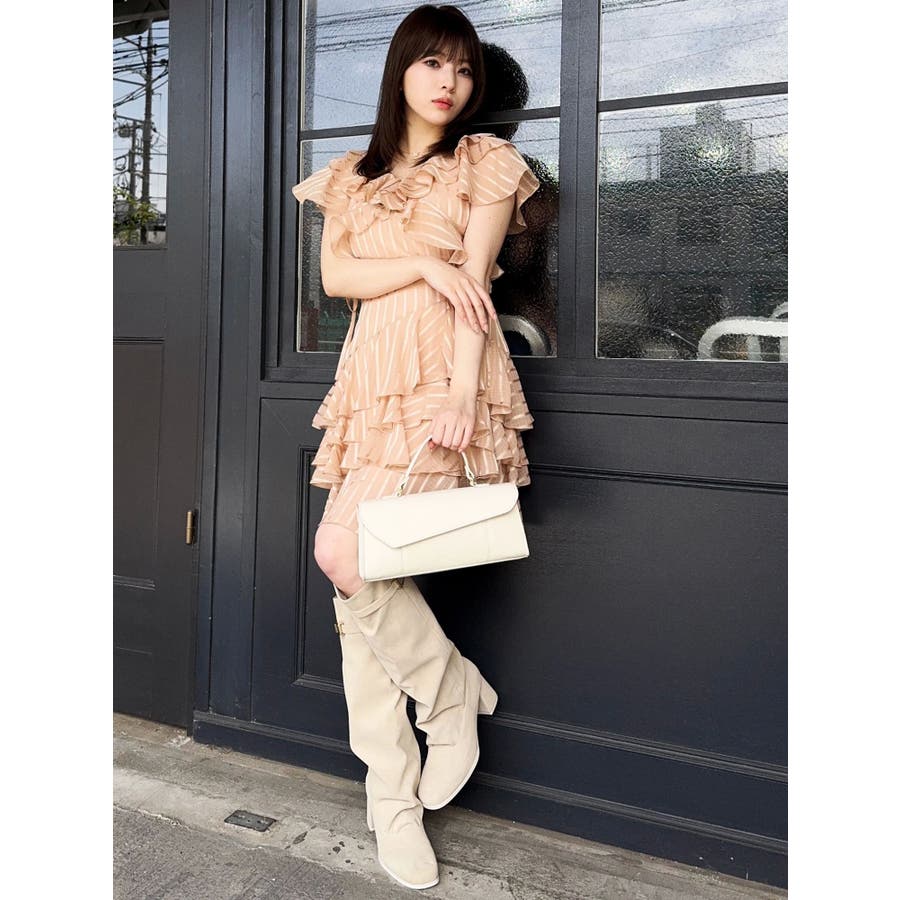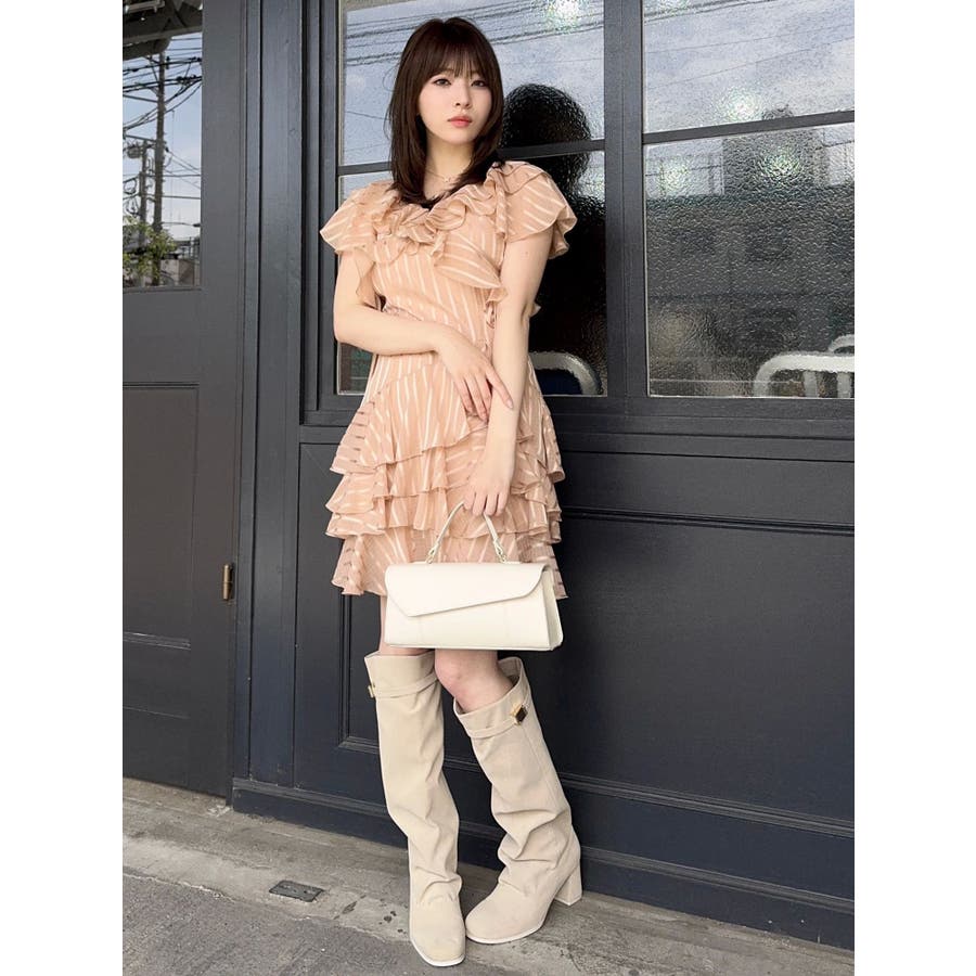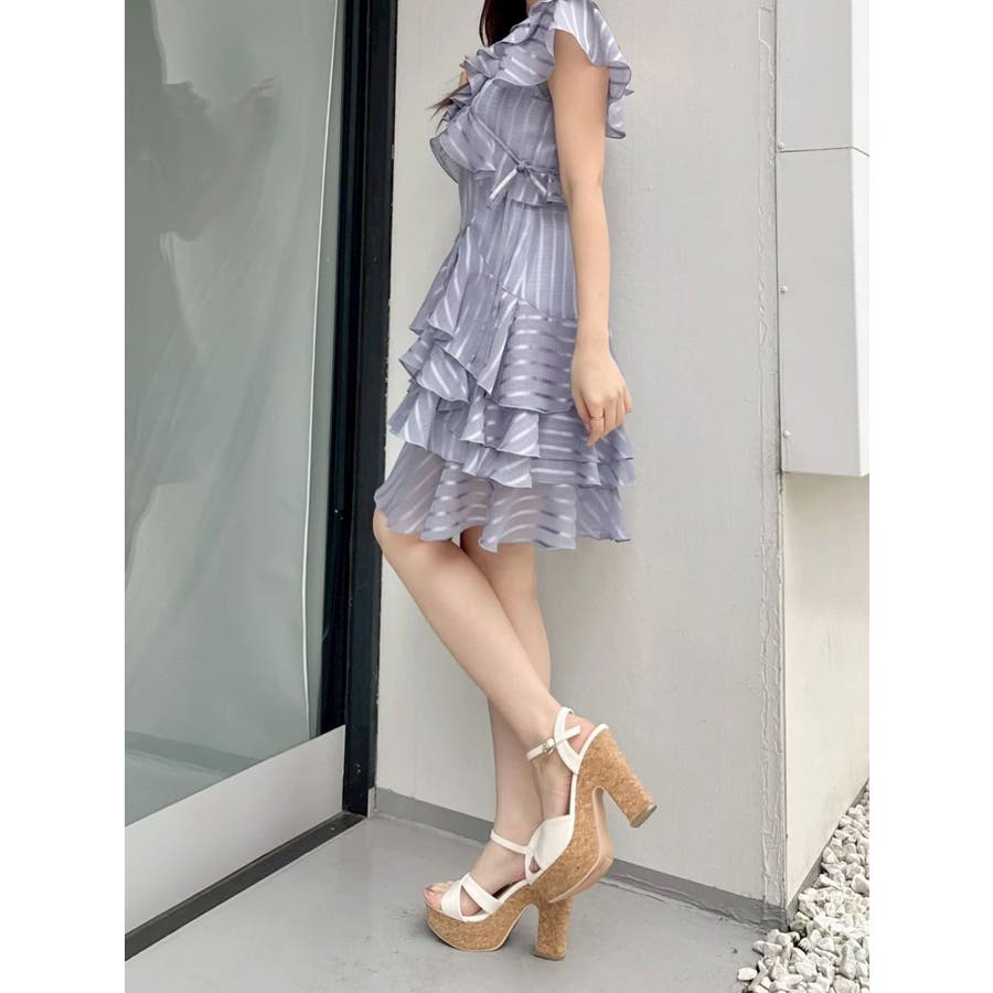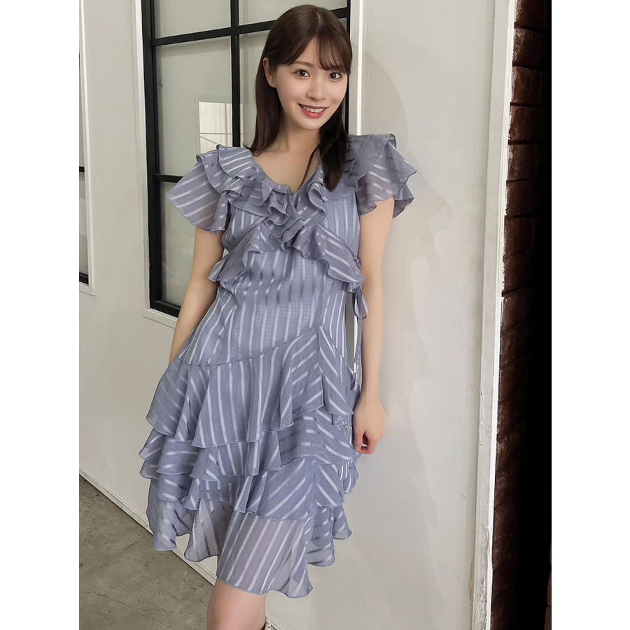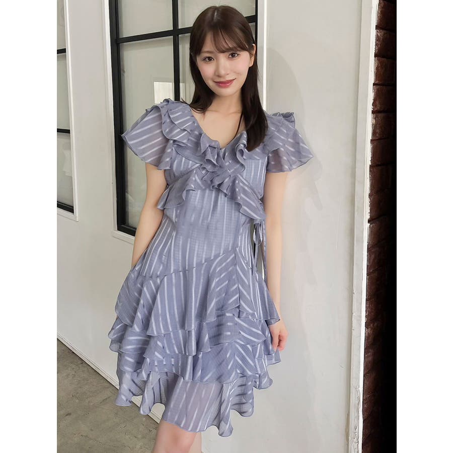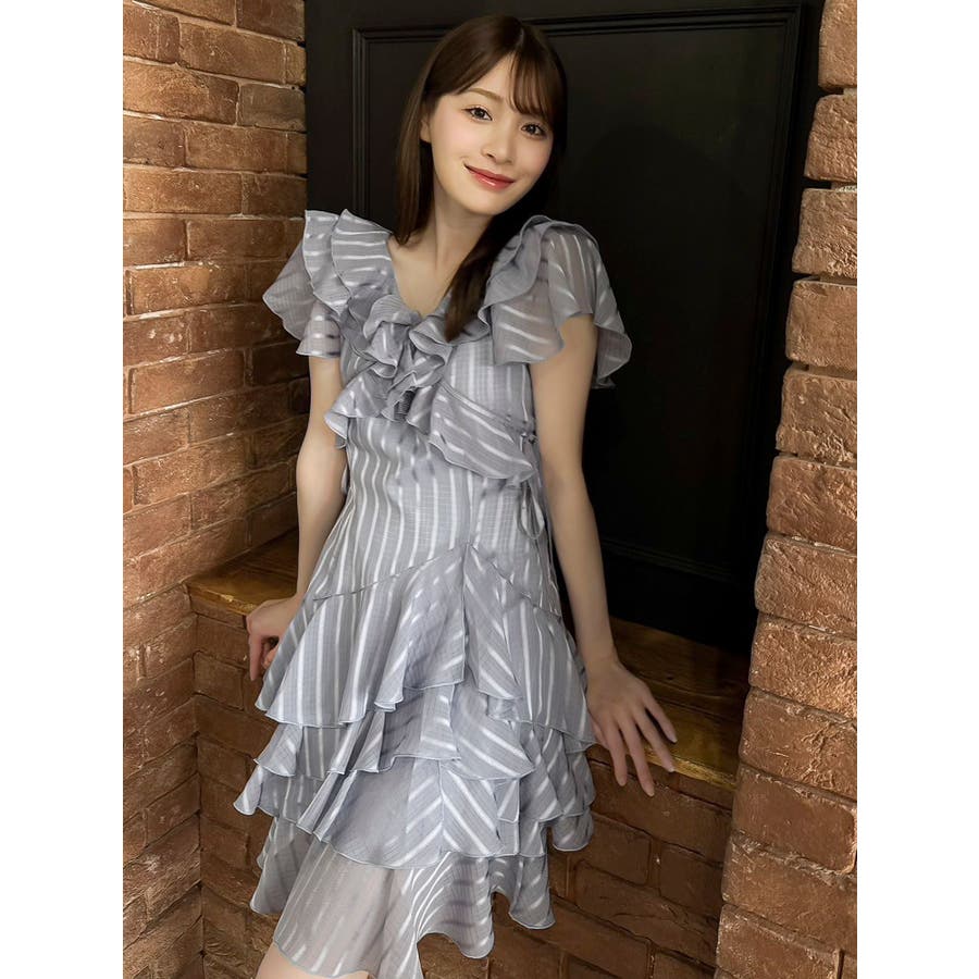 \大人気のワンピースがミニ丈になりました!/>>ロング丈はこちらから<<【アイテム】 ロマンティックなラッフルティアードデザインを取り入れつつ、軽やかで遊び心のあるシルエットに仕上げました。 艶と透け感のある素材が、歩くたびにふんわりと揺れて女性らしさを引き立てます。 袖のフリルが肩まわりをやさしくカバーし、Vネック×フロントリボンで甘さと抜け感を両立。 かわいいミニの丈感が、よりアクティブでフレッシュな印象を演出してくれます。 【スタイリング】 ショート丈ジャケットを羽織れば、華やかさを残しつつ大人っぽい印象に。 ライダースを合わせて甘さを程よく引き締めた、辛口フェミニンな着こなしもおすすめです。 カーディガンを合わせれば、可愛らしくやわらかな雰囲気に仕上がります。---------------------------------------------------- 気になるアイテムはお気に入り登録がおすすめ 入荷情報やラスト1点、お得なプライスダウンの情報をいち早くお届け! ぜひご登録ください◎ ---------------------------------------------------- ※実際にお届けする商品と仕様やサイズが異なる場合がございます。 また生産の都合上、お届け時期が前後する場合がございます。 ★STAFFInstagramもチェック