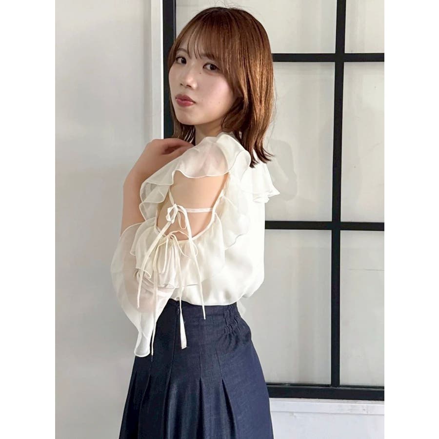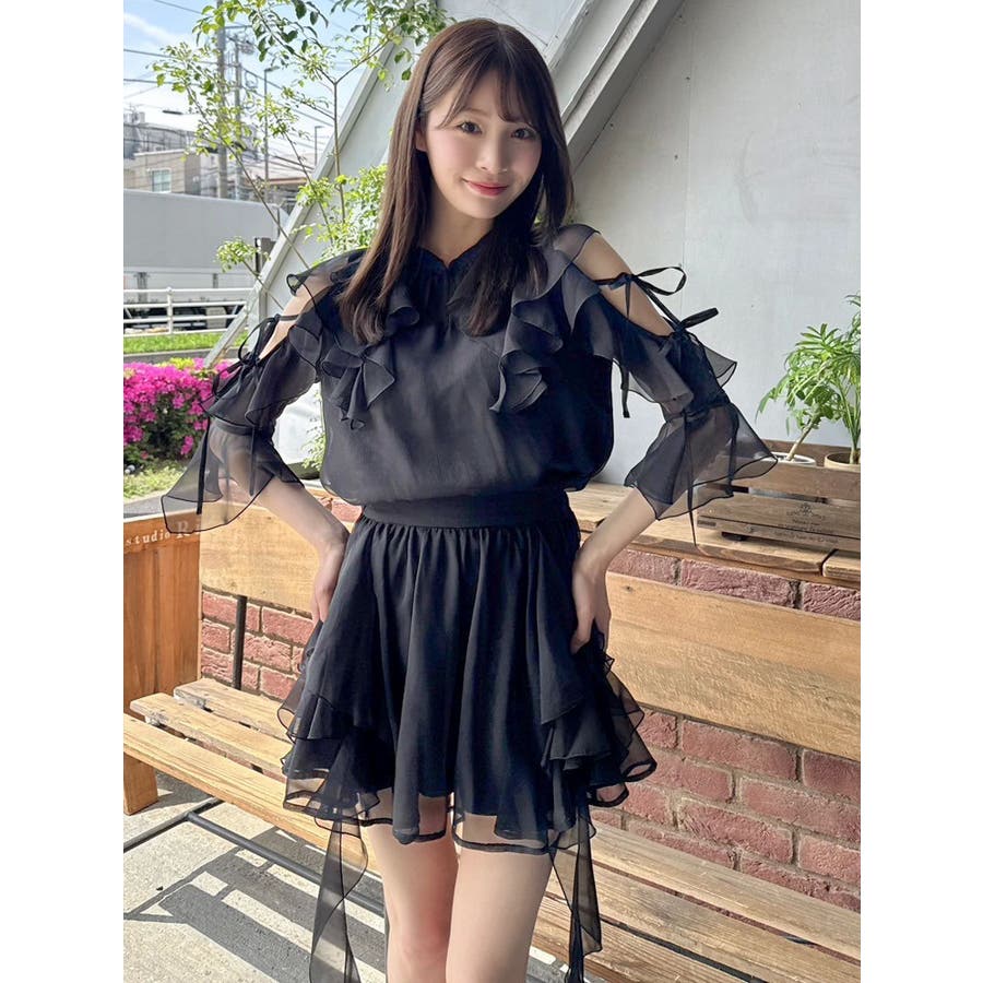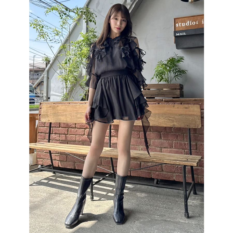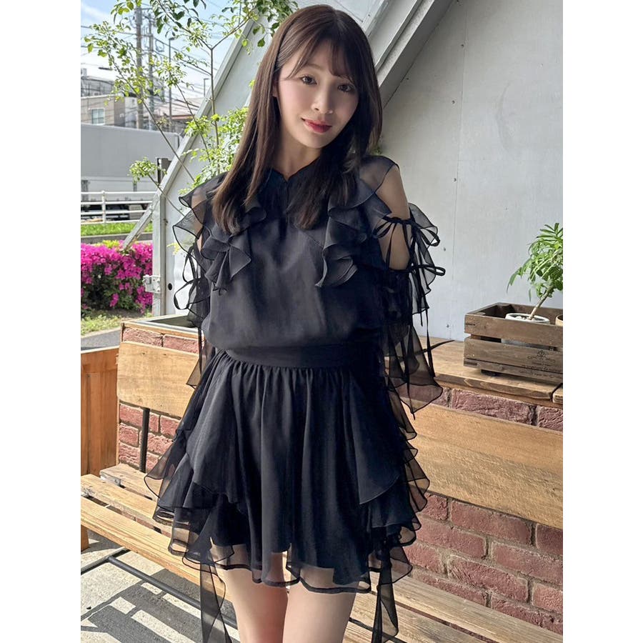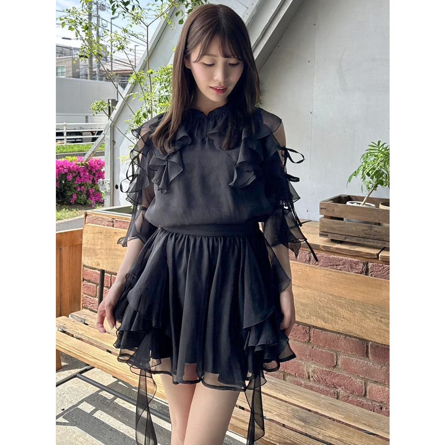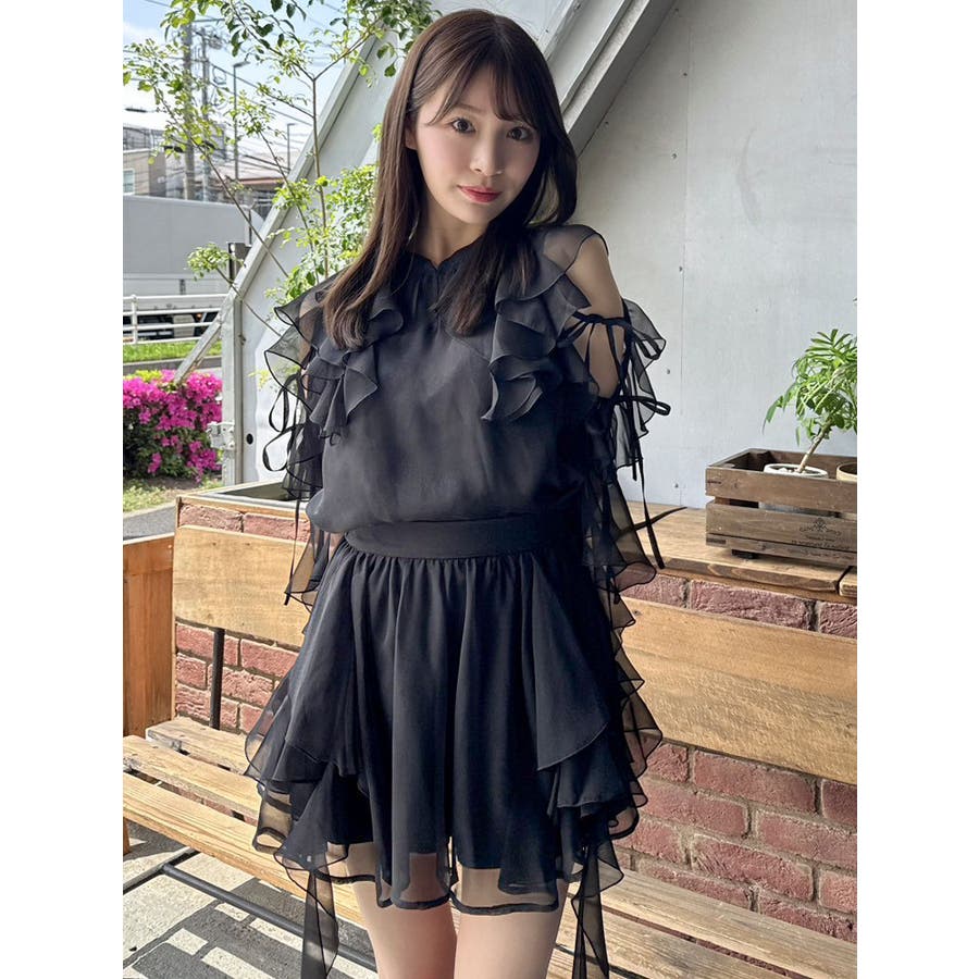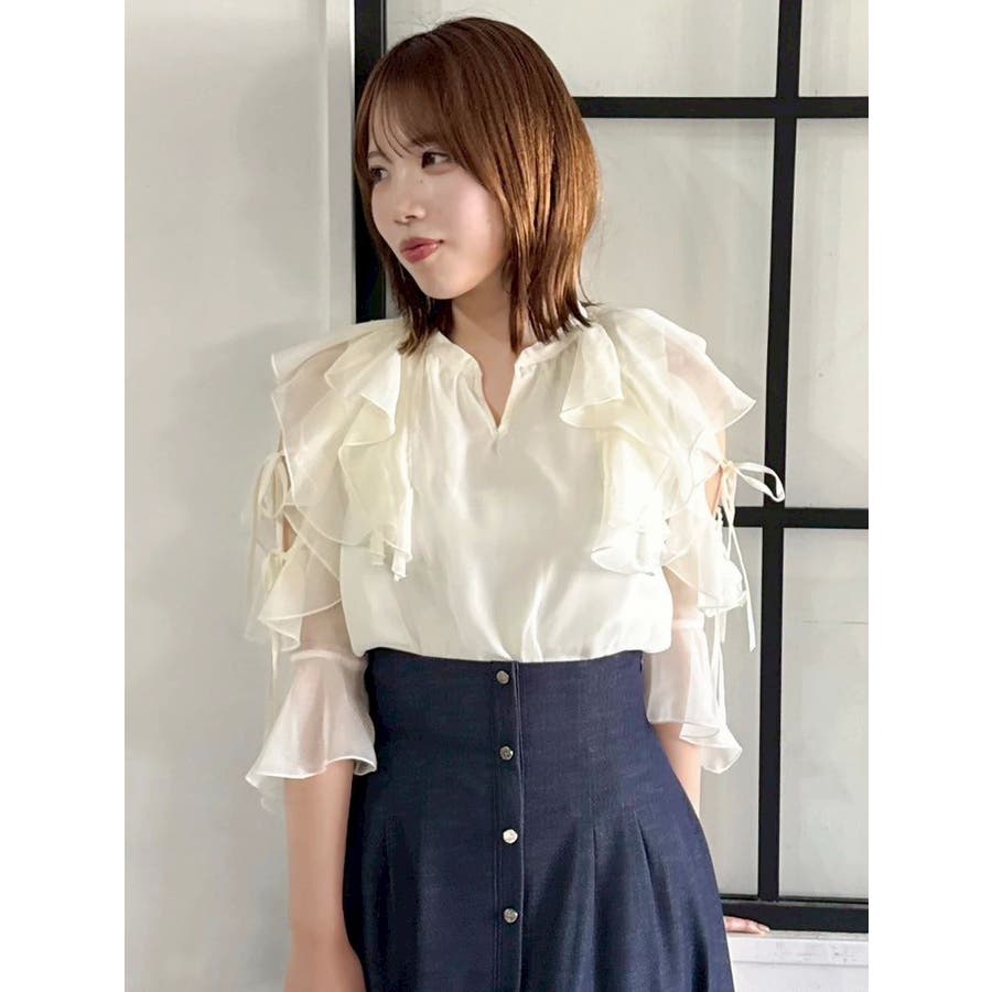 セットアップ対応のスカートはこちら>>シアーフルイドフリルミニスカート<<【アイテム】 微光沢ラメを織り込んだシアー素材で今季トレンドのフリルやフルイド感をエアリーに仕上げたブラウス。 キーネックラインは開け閉め可能。 存在感のある襟元フリルは小顔効果を、袖フリルは二の腕をカバーしながら程よい肌見せデザインで抜け感をプラスします。 【スタイリング】 セットアップのスカートと合わせるとミニワンピース見えが可能。 単体でデニムパンツを合わせるとヘルシーに、 きれいめなマーメイドスカート合わせでレディライクなスタイリングも楽しめます。 ---------------------------------------------------- 気になるアイテムはお気に入り登録がおすすめ 入荷情報やラスト1点、お得なプライスダウンの情報をいち早くお届け! ぜひご登録ください◎ ---------------------------------------------------- ※実際にお届けする商品と仕様やサイズが異なる場合がございます。 また生産の都合上、お届け時期が前後する場合がございます。