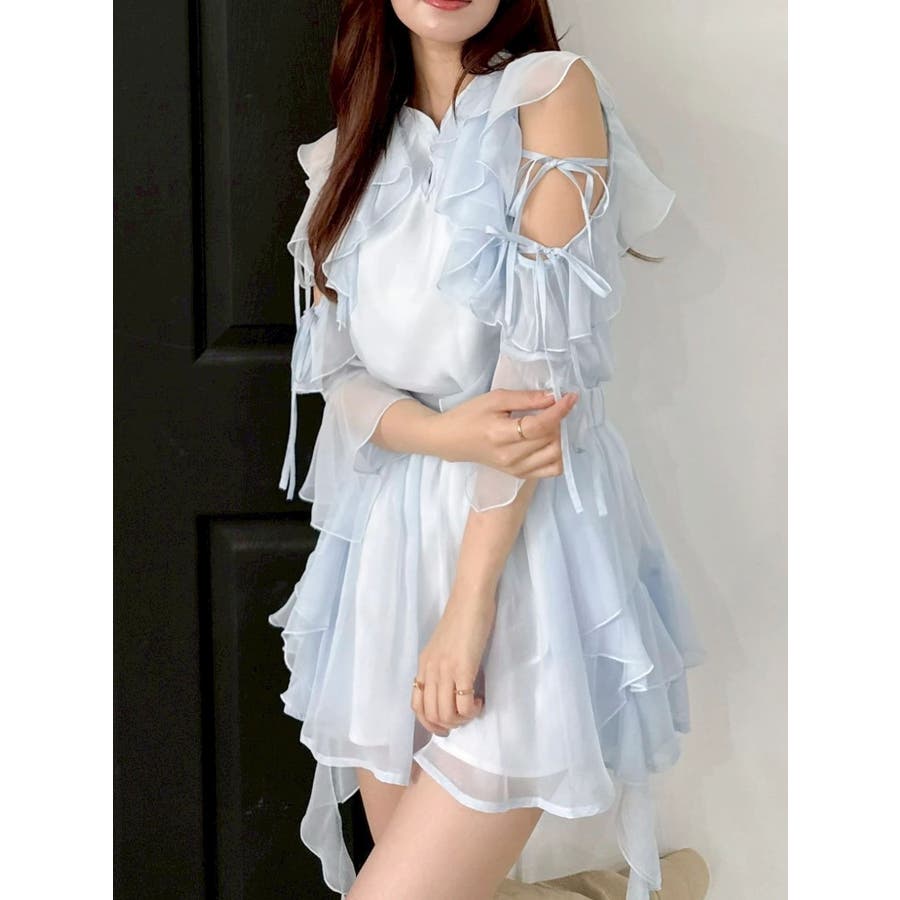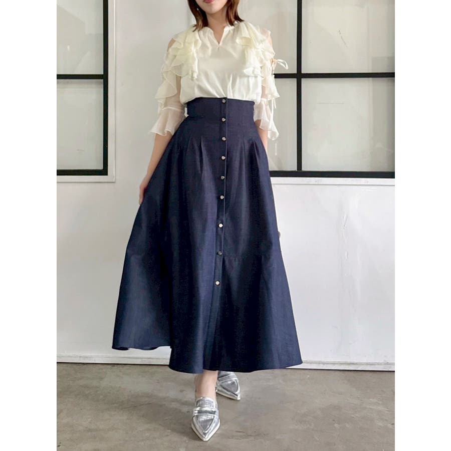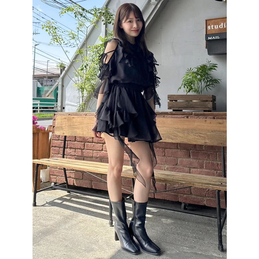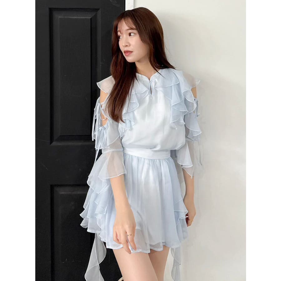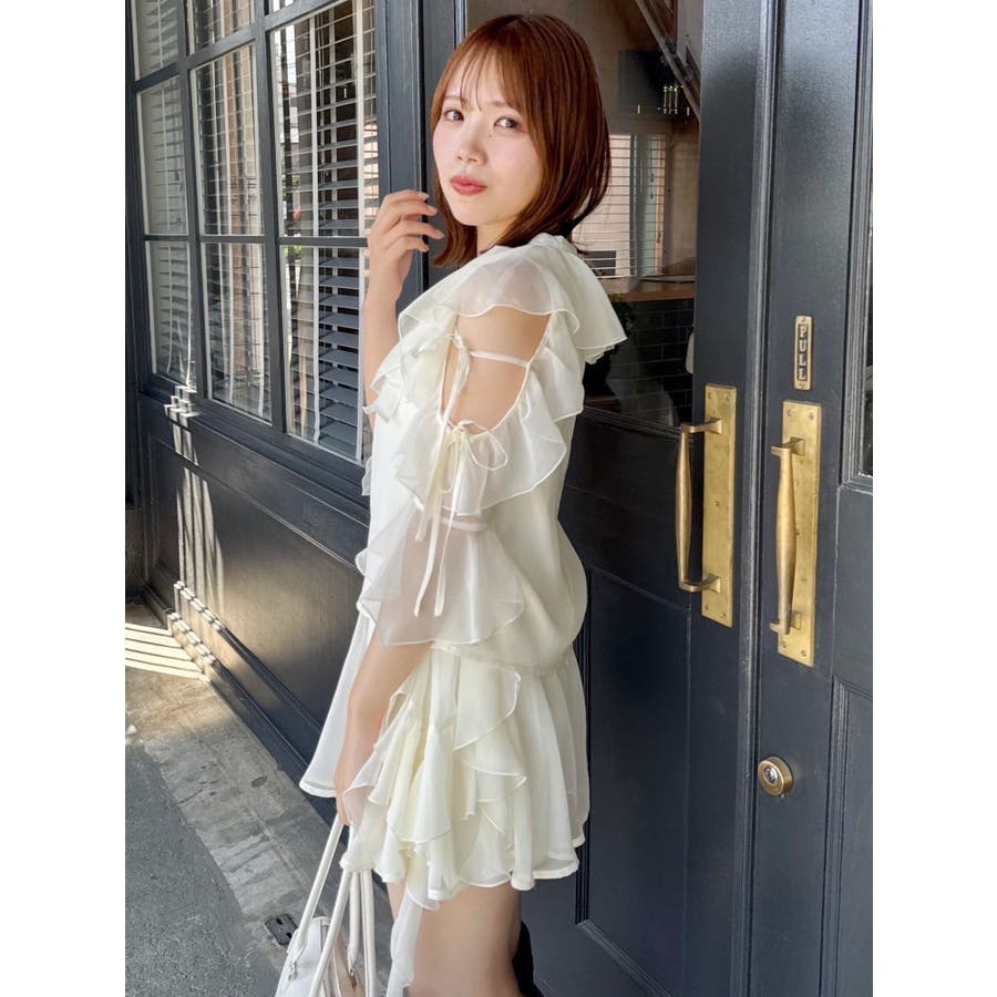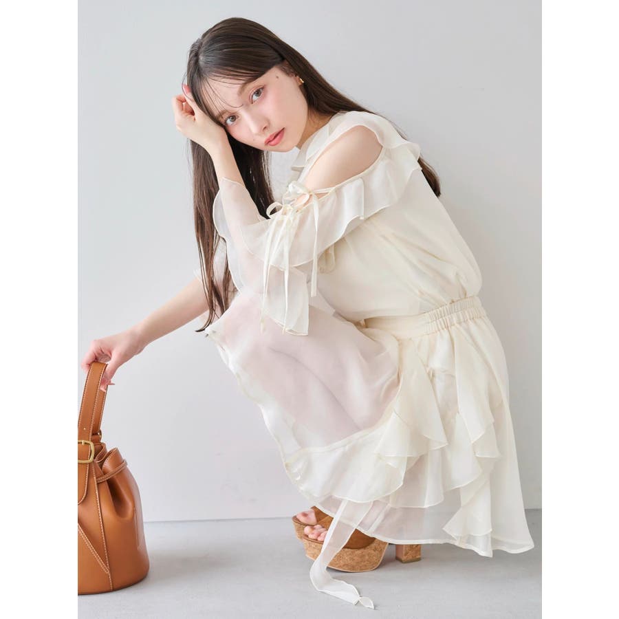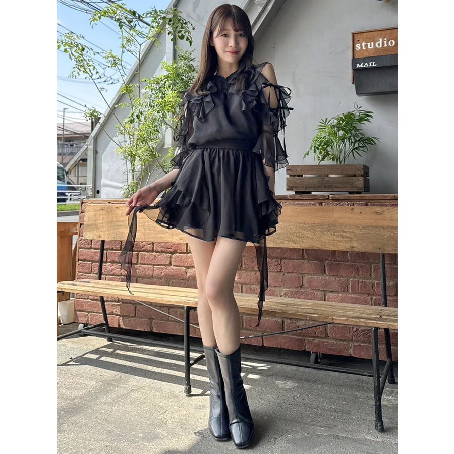 セットアップ対応のスカートはこちら>>シアーフルイドフリルミニスカート<<【アイテム】 微光沢ラメを織り込んだシアー素材で今季トレンドのフリルやフルイド感をエアリーに仕上げたブラウス。 キーネックラインは開け閉め可能。 存在感のある襟元フリルは小顔効果を、袖フリルは二の腕をカバーしながら程よい肌見せデザインで抜け感をプラスします。 【スタイリング】 セットアップのスカートと合わせるとミニワンピース見えが可能。 単体でデニムパンツを合わせるとヘルシーに、 きれいめなマーメイドスカート合わせでレディライクなスタイリングも楽しめます。 ---------------------------------------------------- 気になるアイテムはお気に入り登録がおすすめ 入荷情報やラスト1点、お得なプライスダウンの情報をいち早くお届け! ぜひご登録ください◎ ---------------------------------------------------- ※実際にお届けする商品と仕様やサイズが異なる場合がございます。 また生産の都合上、お届け時期が前後する場合がございます。