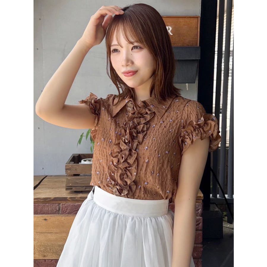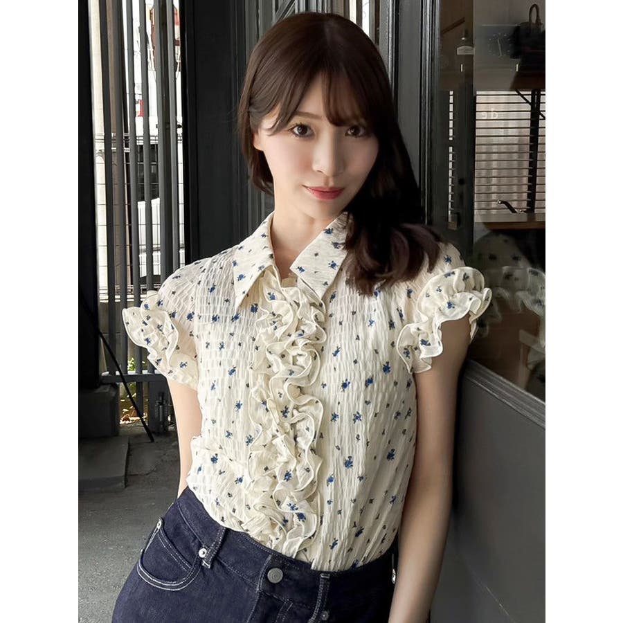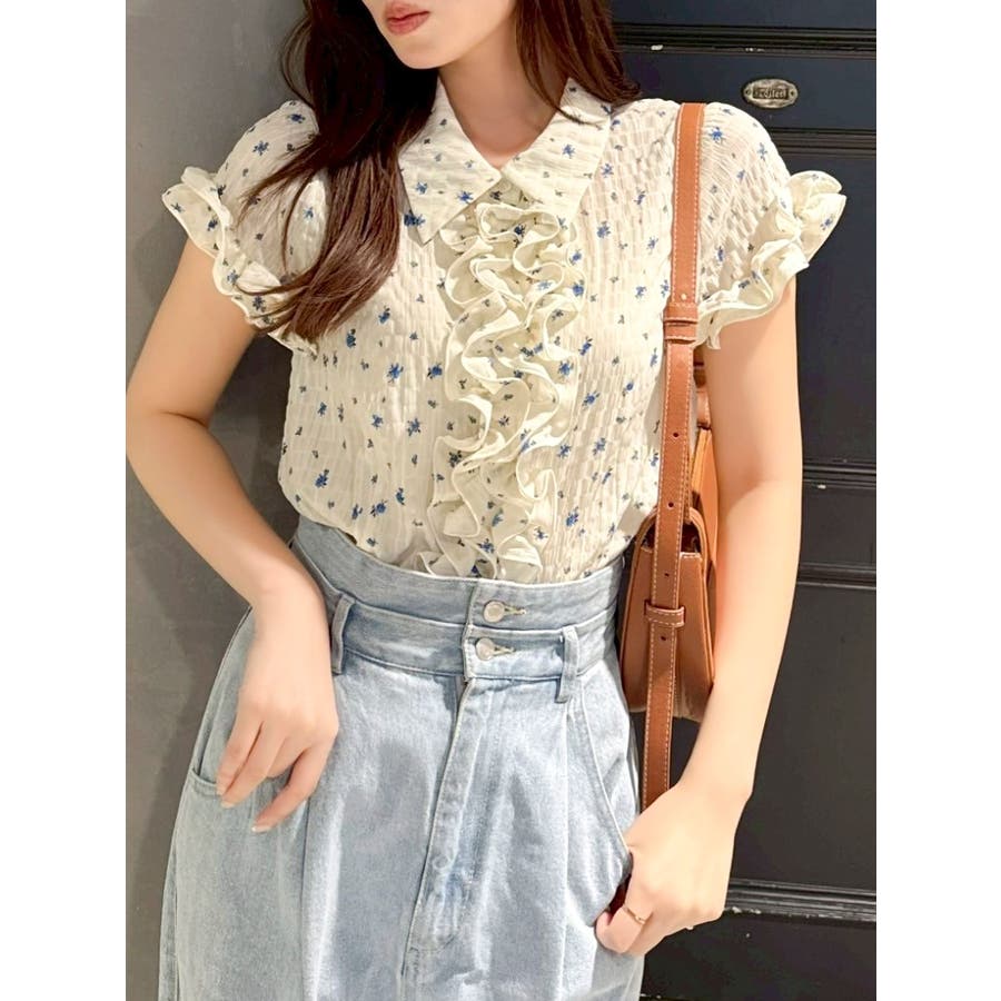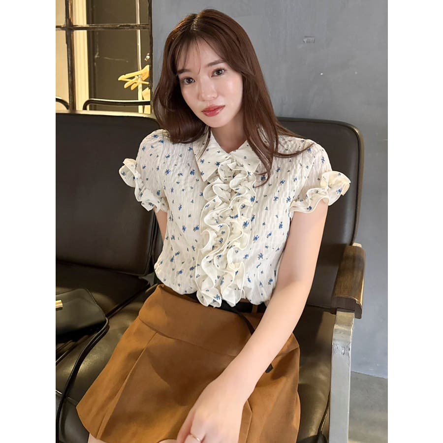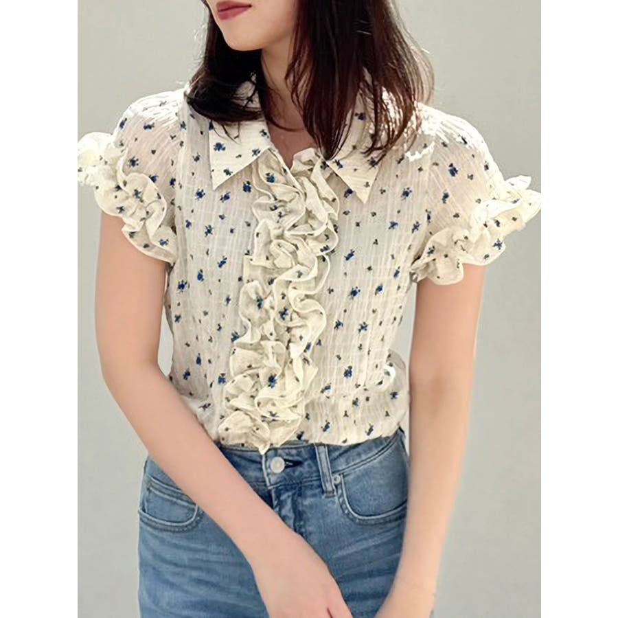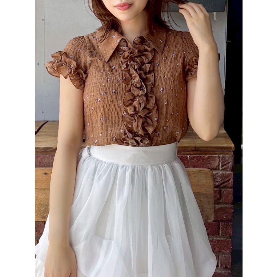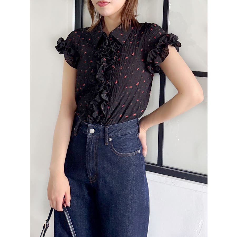 シュリンクフラワーフリルシャツ