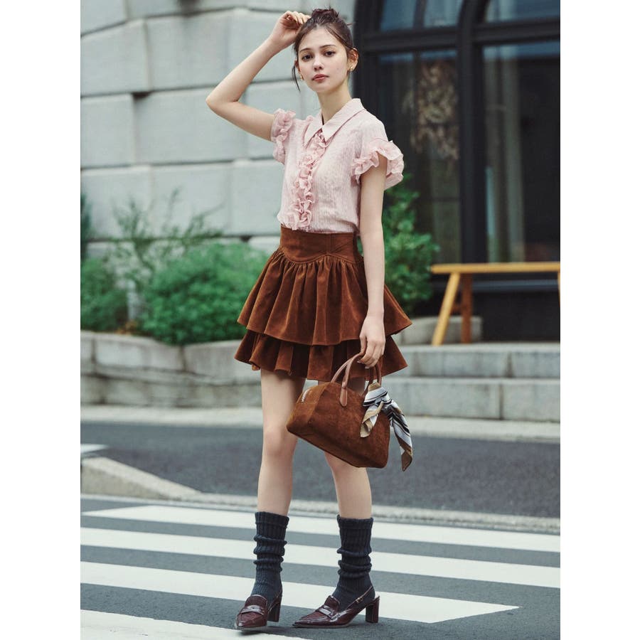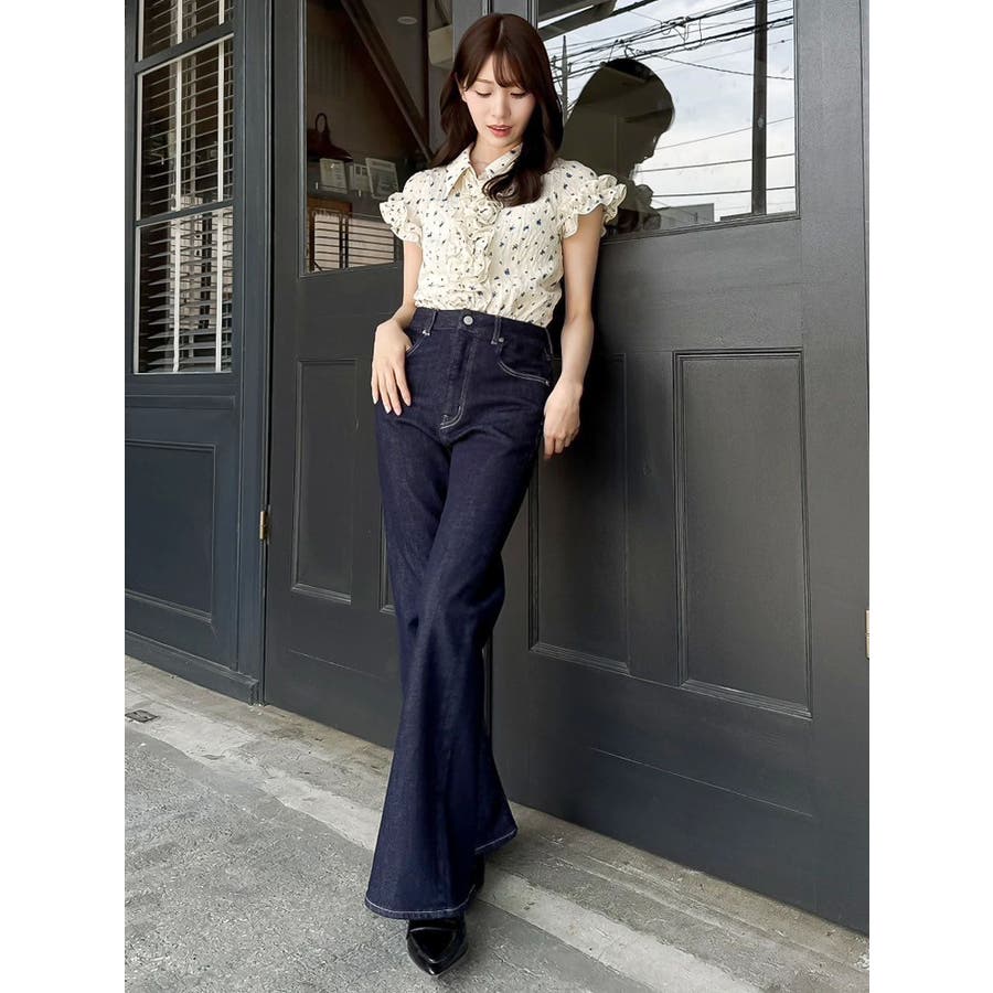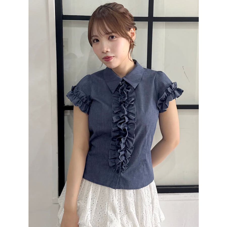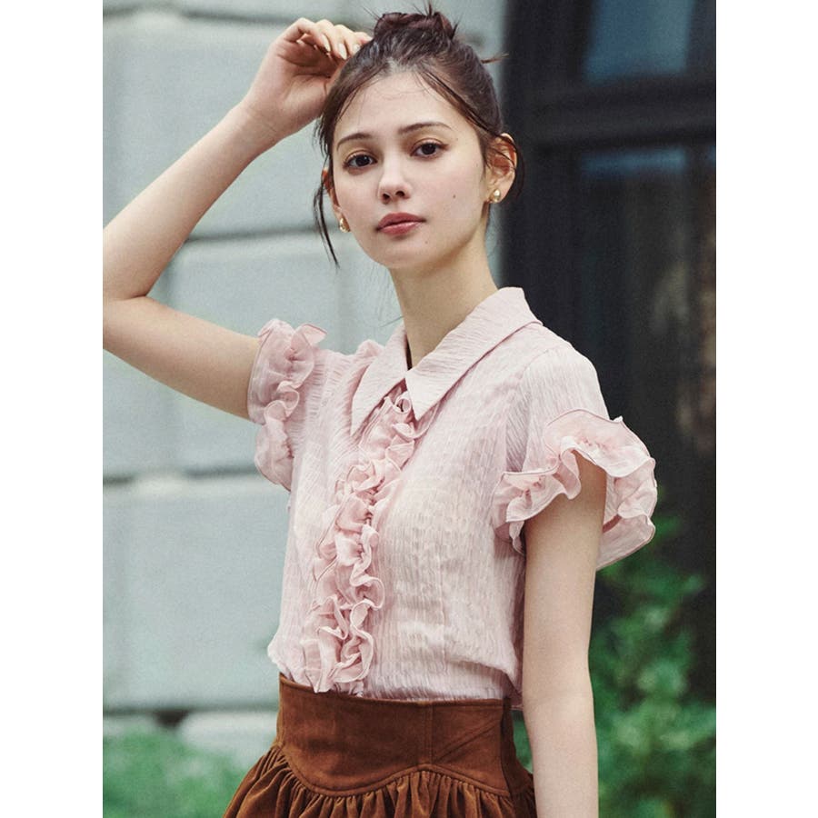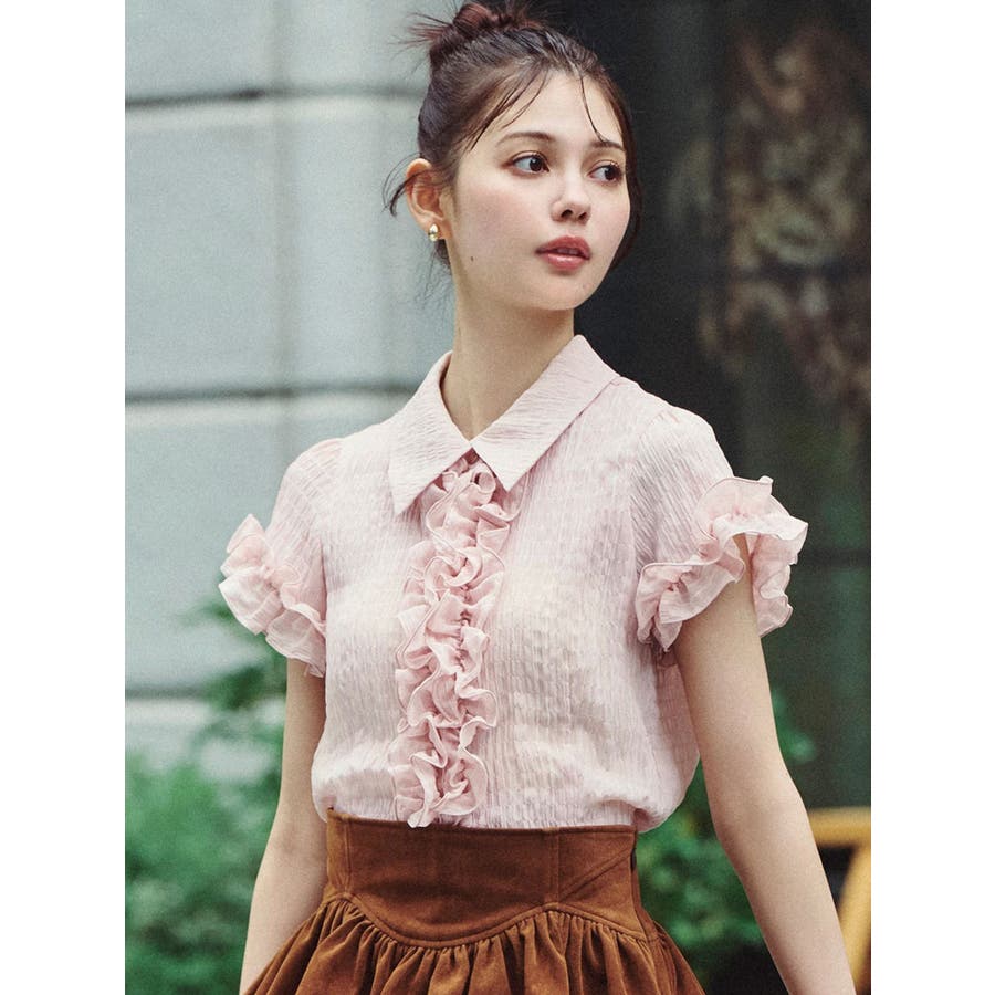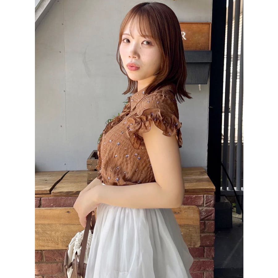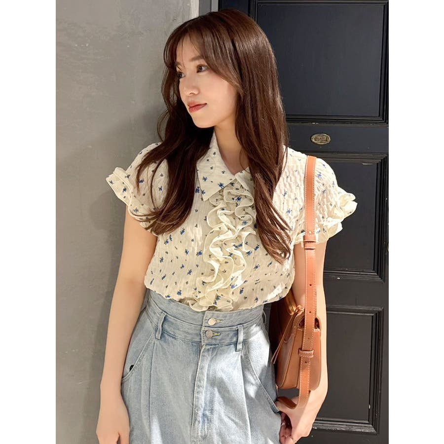 シュリンクフラワーフリルシャツ