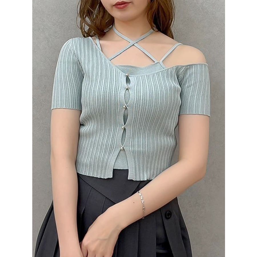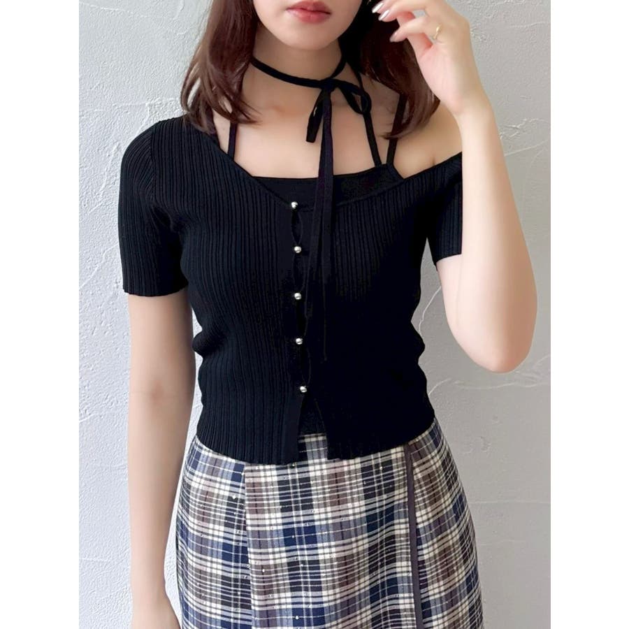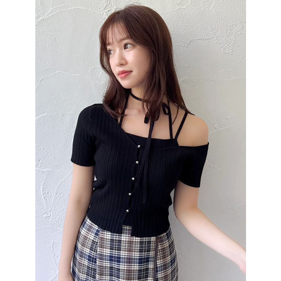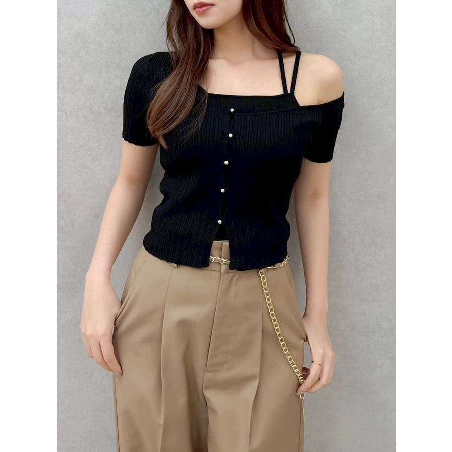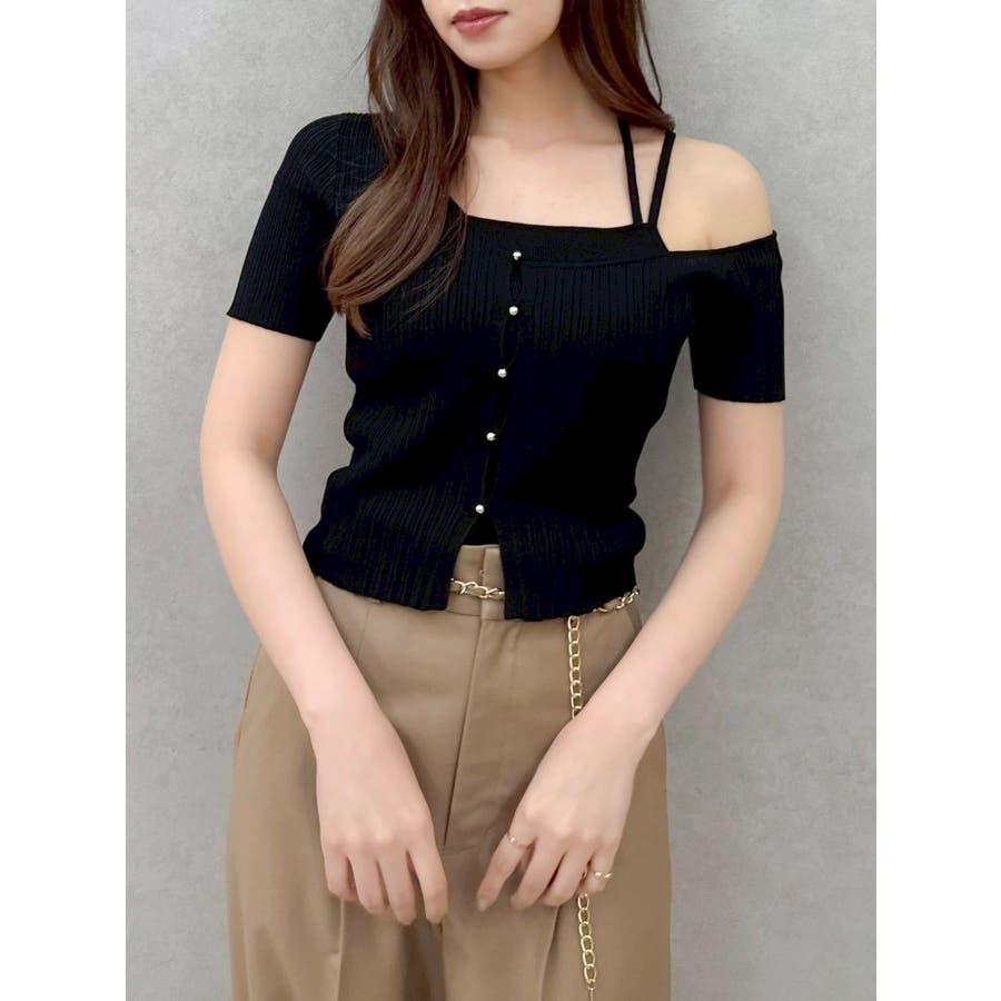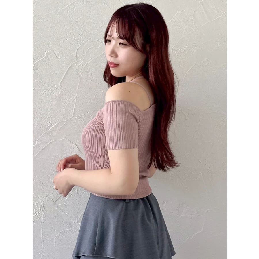 ワンショルレイヤードリブニット