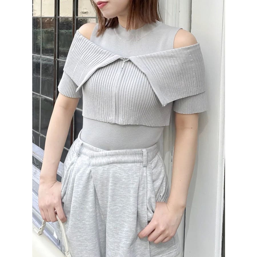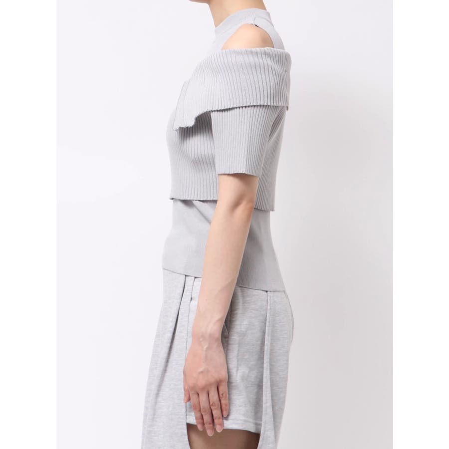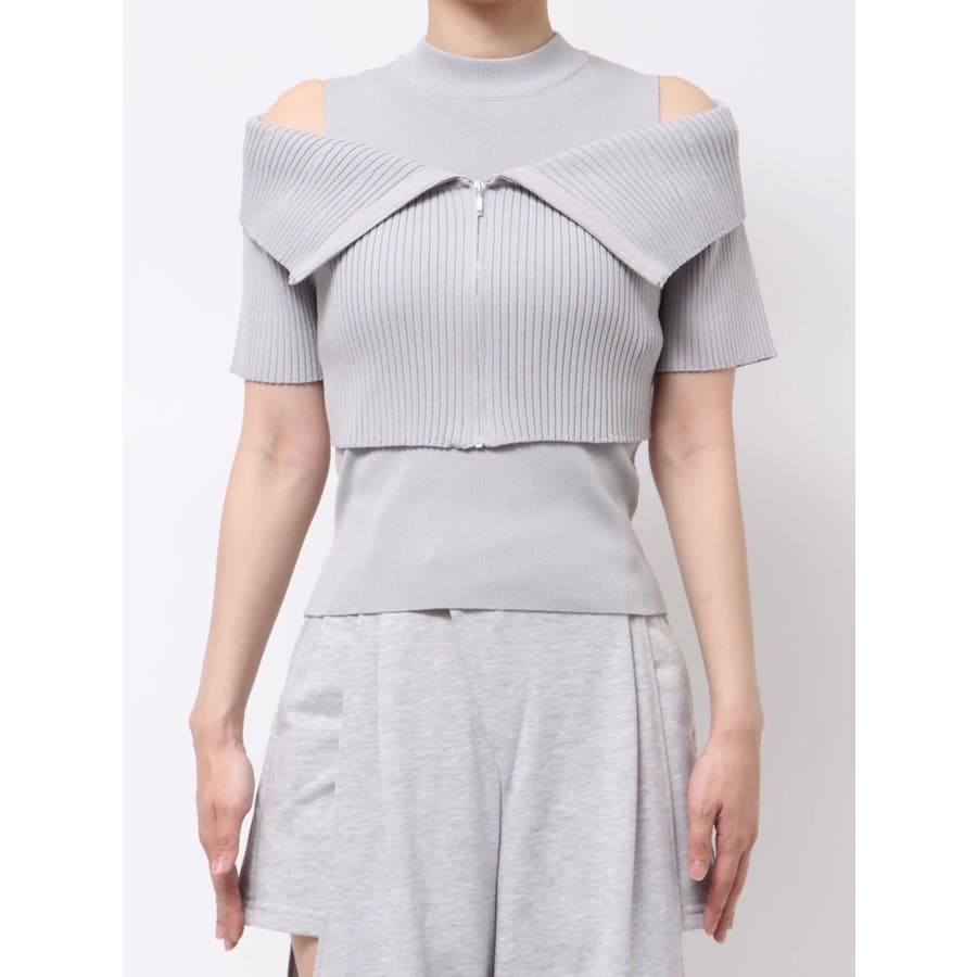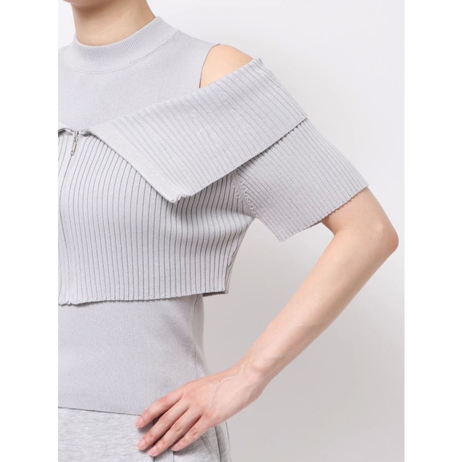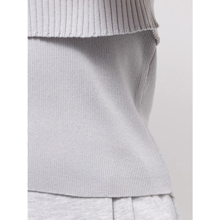 【商品】トレンド感あふれるレイヤード風ニットトップス。ビッグカラーの半袖リブニットとノースリーブハイネックの2ピース仕様。外の一枚を外せば、インナーのミニマルなニットトップスとしても着用でき、気分やシーンに合わせた着こなしが楽しめます。コンパクトなシルエットで、辛めなトレンド感と洗練された女性らしさを演出します。【スタイリング】タイトスカートやマーメイドスカートと合わせて、甘さを抑えた大人辛口フェミニンコーデが完成します。ハイウエストのワイドパンツやスラックスを合わせて、ハンサムで都会的なスタイリングに。足元はヒールブーツやスクエアトゥのミュールを選べば、よりシャープで洗練された印象に。