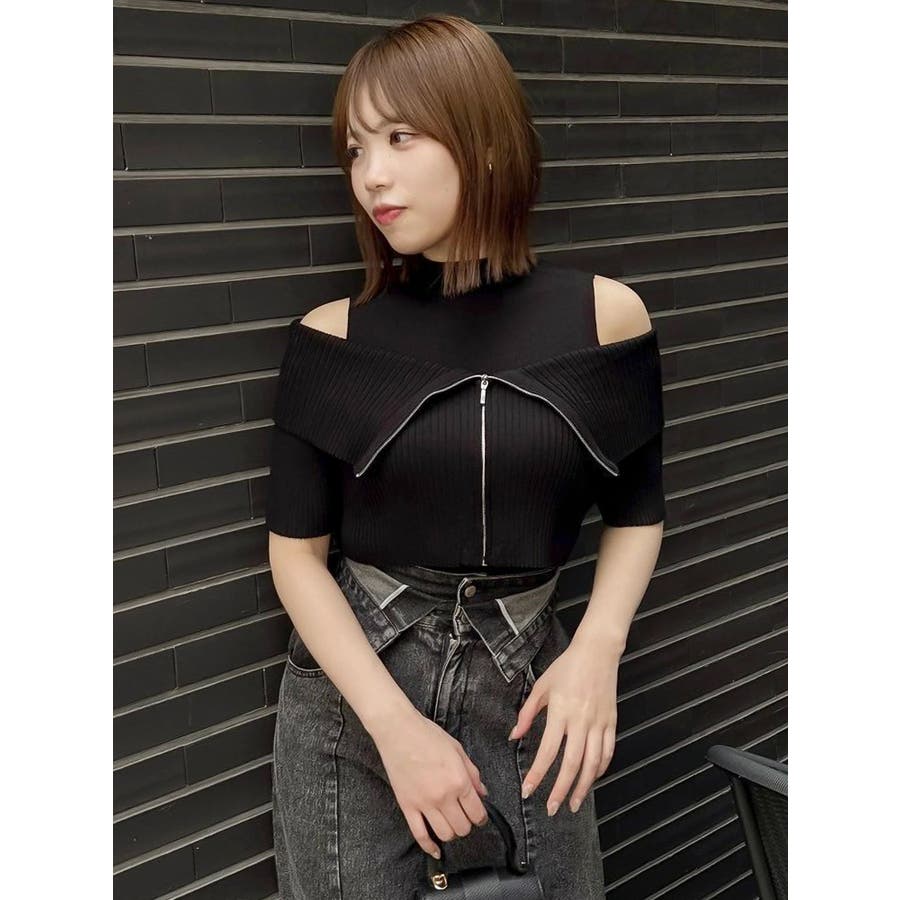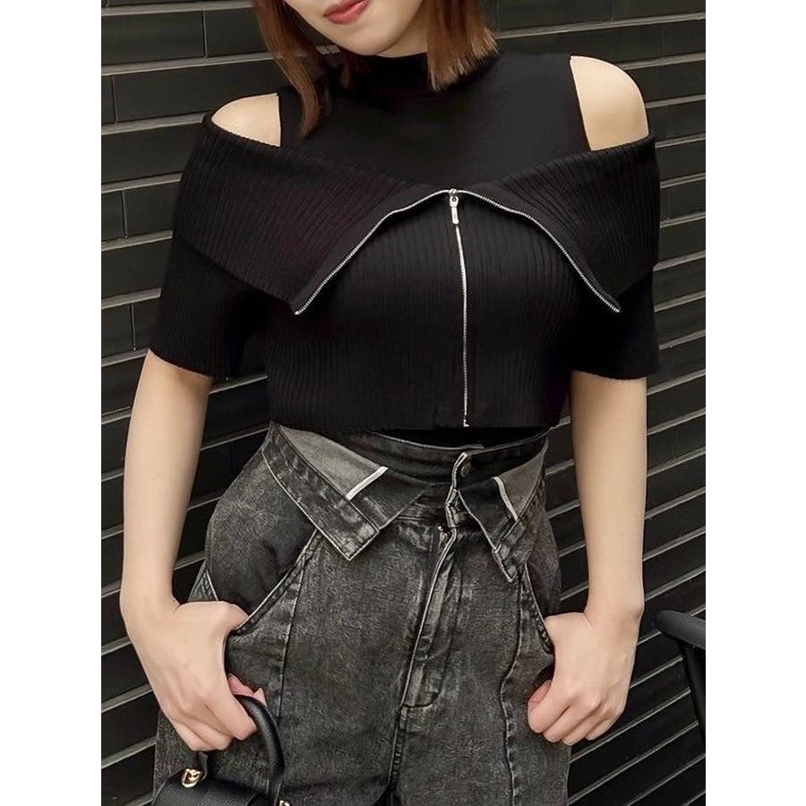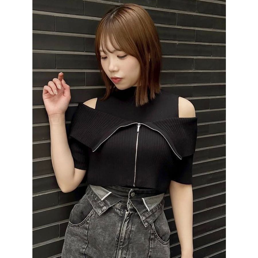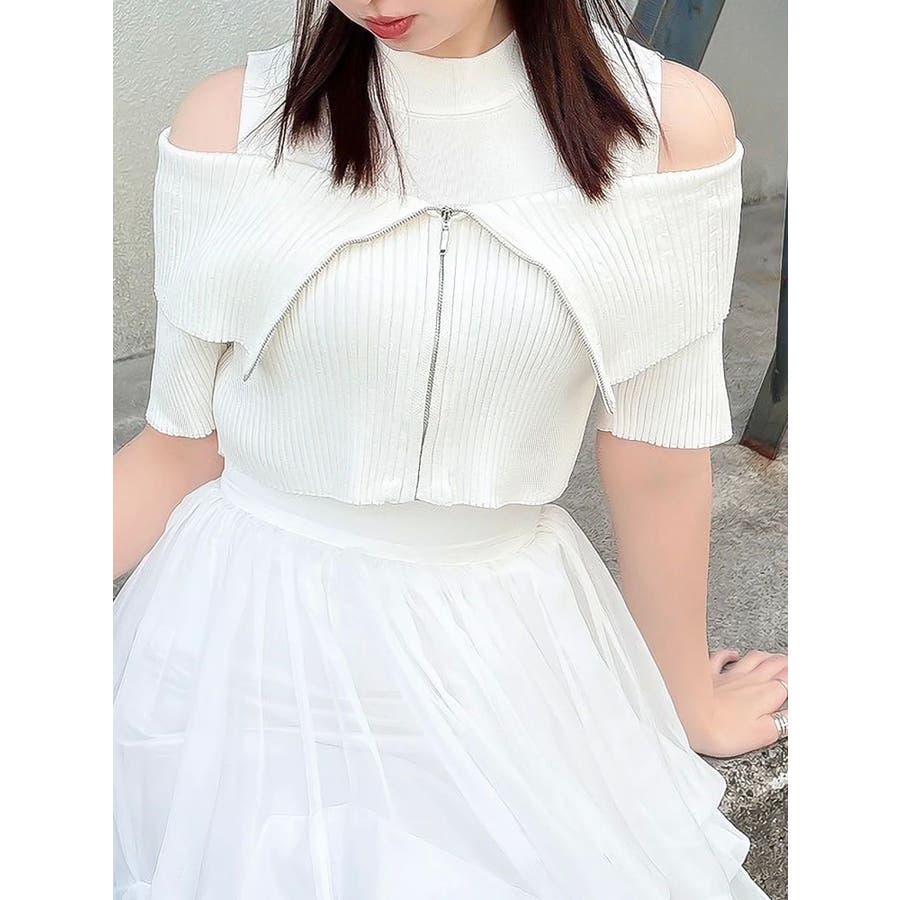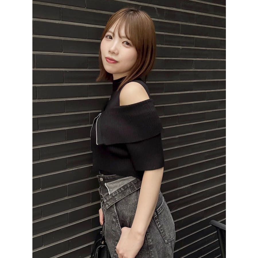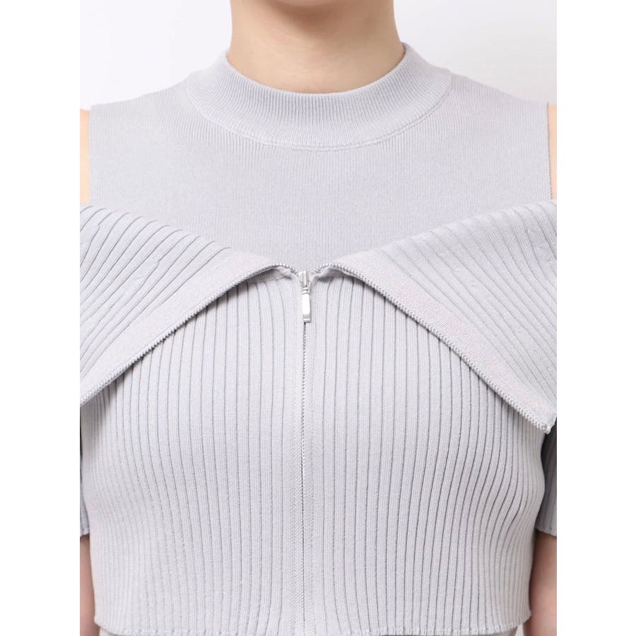 【商品】トレンド感あふれるレイヤード風ニットトップス。ビッグカラーの半袖リブニットとノースリーブハイネックの2ピース仕様。外の一枚を外せば、インナーのミニマルなニットトップスとしても着用でき、気分やシーンに合わせた着こなしが楽しめます。コンパクトなシルエットで、辛めなトレンド感と洗練された女性らしさを演出します。【スタイリング】タイトスカートやマーメイドスカートと合わせて、甘さを抑えた大人辛口フェミニンコーデが完成します。ハイウエストのワイドパンツやスラックスを合わせて、ハンサムで都会的なスタイリングに。足元はヒールブーツやスクエアトゥのミュールを選べば、よりシャープで洗練された印象に。