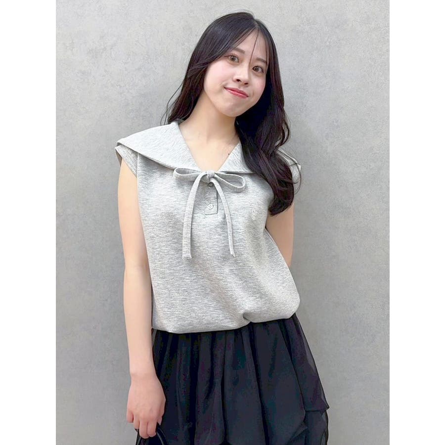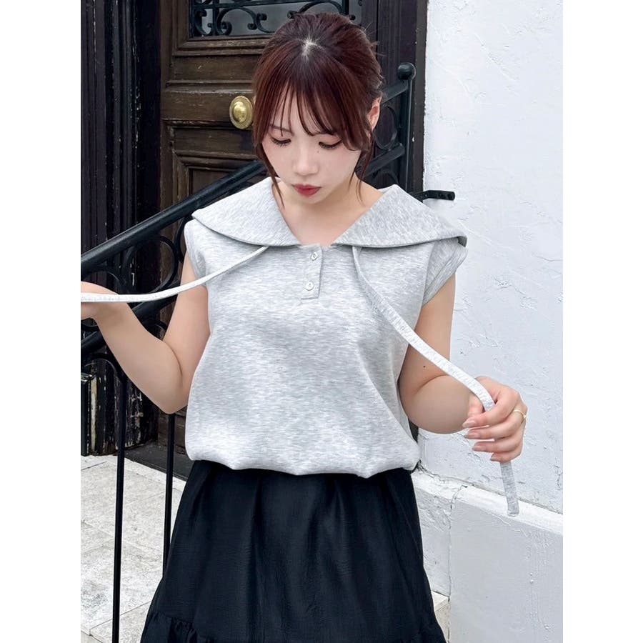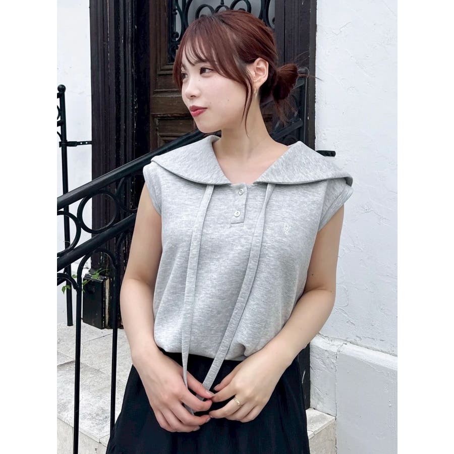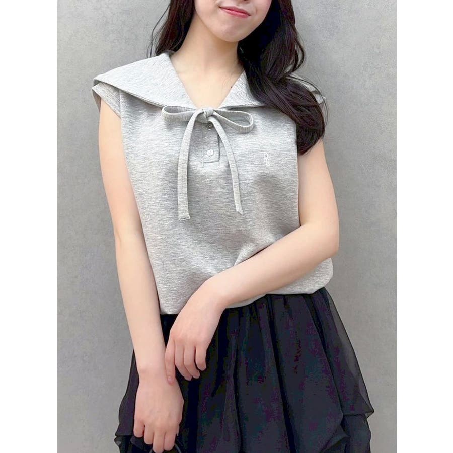 【商品】※本生産時、左胸刺繍位置が2cm程度上になります。※詳細画像が正しい仕様となります。今季トレンドのセーラーカラーをスウェットで新鮮に表現。ポロライクなボタンディテールで甘さを抑え、スポーティさをプラス。リボンは取り外しが可能でコーデの幅も広がります。裾にタックを施すことで愛らしいコクーン調のシルエットを形成し、ボディラインをカバーしながら立体感を発揮します。【スタイリング】バルーンやフリル系のミニボトムス合わせでプレッピーライクなスタイリングがおすすめ。シアー系のロングスカートやデニムパンツ合わせで大人っぽくヘルシーなコーデにも昇華します。※実際にお届けする商品と仕様やサイズが異なる場合がございます。また生産の都合上、お届け時期が前後する場合がございます。【商品特徴】透け感:なし伸縮性:ややあり生地の厚さ:普通サイズ感:普通裏地:なしポケット:なし