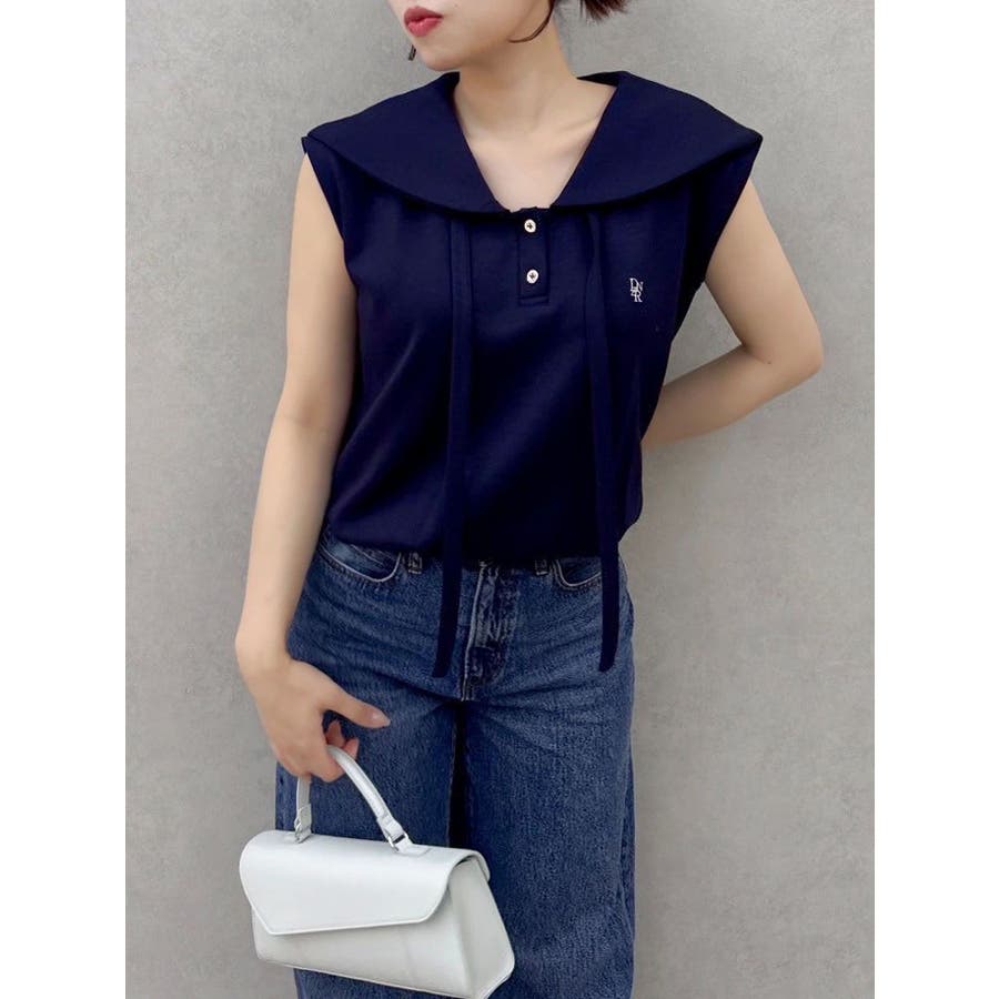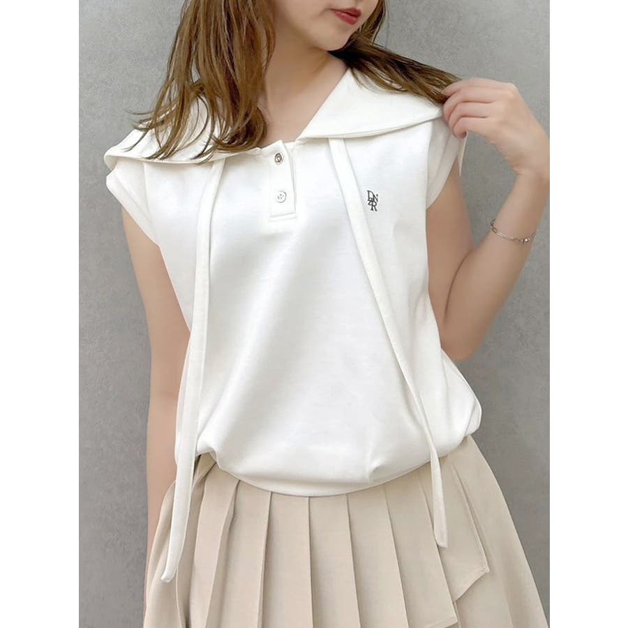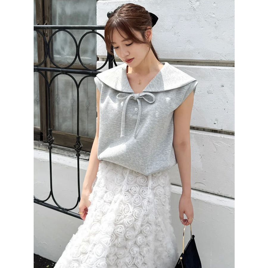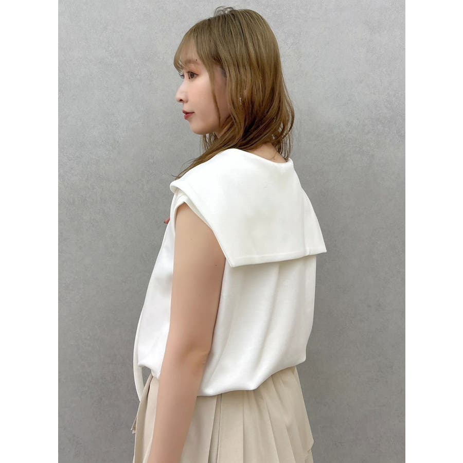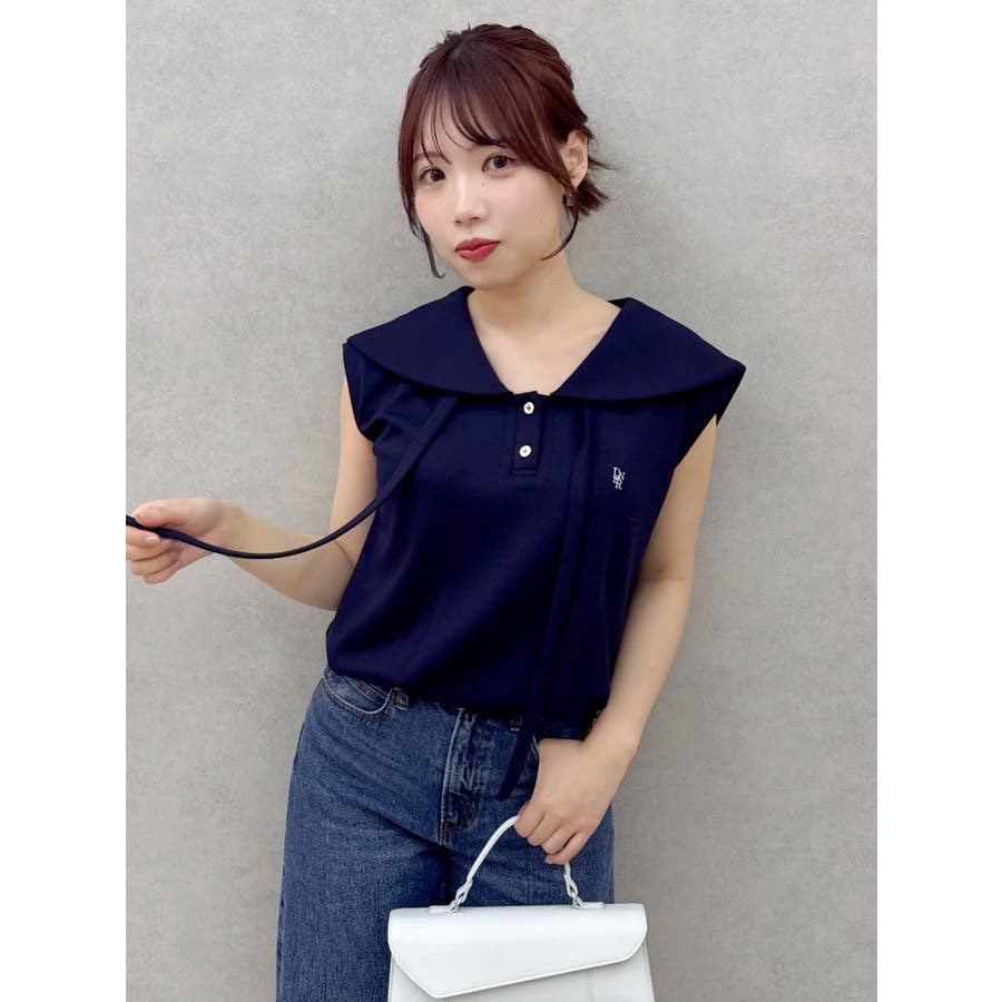 【商品】※本生産時、左胸刺繍位置が2cm程度上になります。※詳細画像が正しい仕様となります。今季トレンドのセーラーカラーをスウェットで新鮮に表現。ポロライクなボタンディテールで甘さを抑え、スポーティさをプラス。リボンは取り外しが可能でコーデの幅も広がります。裾にタックを施すことで愛らしいコクーン調のシルエットを形成し、ボディラインをカバーしながら立体感を発揮します。【スタイリング】バルーンやフリル系のミニボトムス合わせでプレッピーライクなスタイリングがおすすめ。シアー系のロングスカートやデニムパンツ合わせで大人っぽくヘルシーなコーデにも昇華します。※実際にお届けする商品と仕様やサイズが異なる場合がございます。また生産の都合上、お届け時期が前後する場合がございます。【商品特徴】透け感:なし伸縮性:ややあり生地の厚さ:普通サイズ感:普通裏地:なしポケット:なし