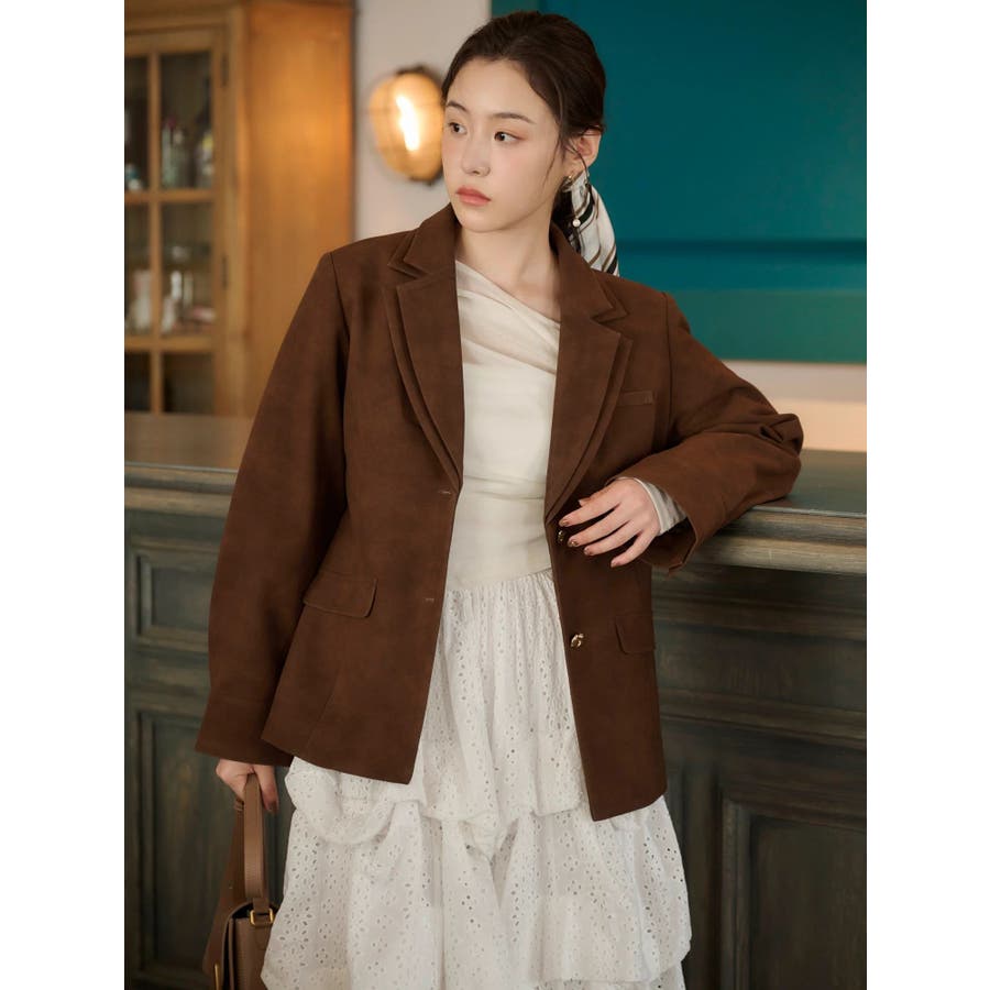 素材 | [アイボリー]表地:ポリエステル97% ポリウレタン3% 裏地:ポリエステル100%[ブラウン]表地 基布:ポリエステル100% フロック部分:ポリエステル100% 裏地:ポリエステル100%[ミックス]表地:ポリエステル79% レーヨン19% ポリウレタン2% 裏地:ポリエステル100% |