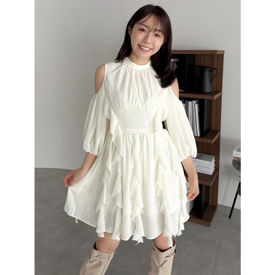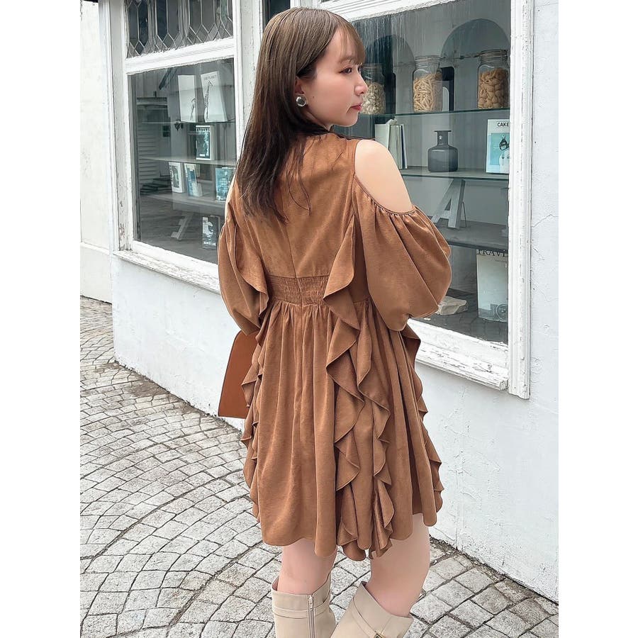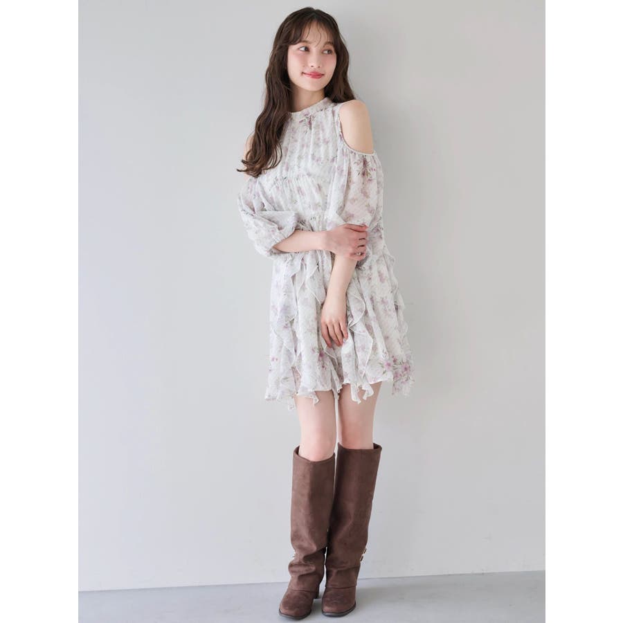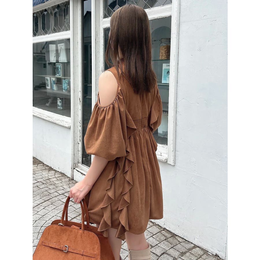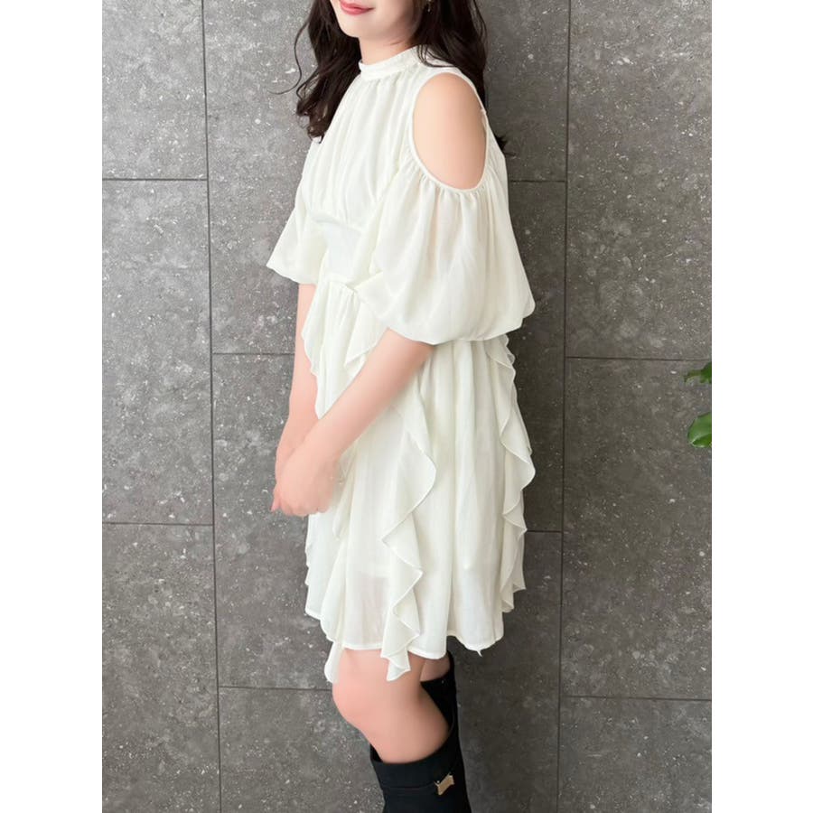 【商品】立体感のあるフリルが印象的なミニワンピース。ハイウエスト切替とコンパクトな丈感で脚長効果を演出し、肩あきデザインで抜け感とフェミニンさをプラス。無地、花柄、スエード調とバリエ豊富で、季節や気分に合わせて選べるのも魅力。【スタイリング】春夏はショートカーデやブルゾンで軽やかに、秋冬はロングコートやファージャケットで甘辛ミックスに。足元はブーツでクールに、ストラップヒールでフェミニンにも。ミニバッグやヘアリボンでバランス良く仕上げるのがおすすめです。※実際にお届けする商品と仕様やサイズが異なる場合がございます。また生産の都合上、お届け時期が前後する場合がございます。【商品特徴】透け感(オフホワイト/アイボリーのみ):あり 透け感(その他カラー):なし伸縮性:なし生地の厚さ:普通サイズ感:普通裏地:ありポケット:なしファスナー:あり(後)