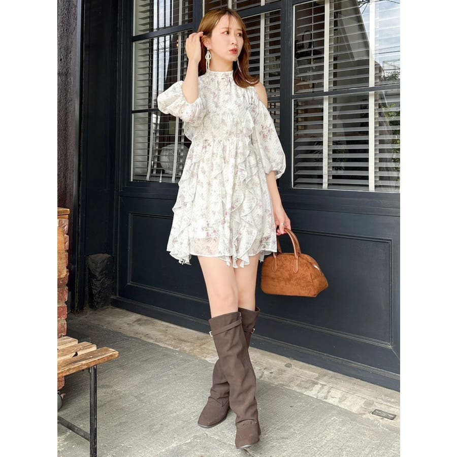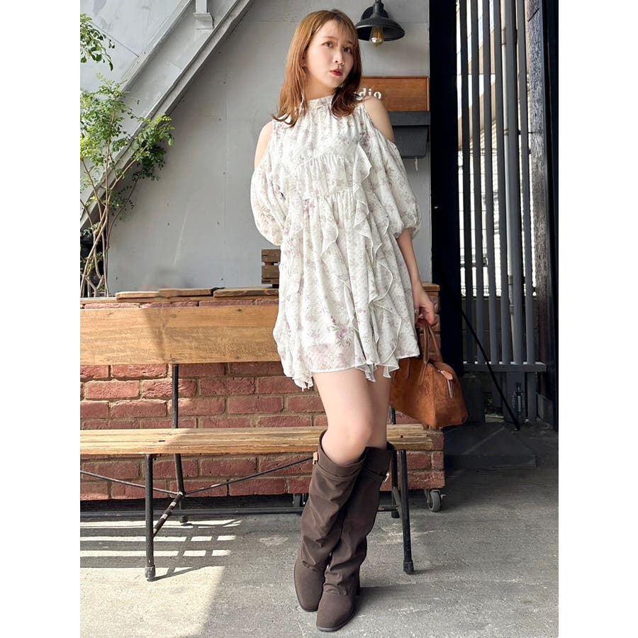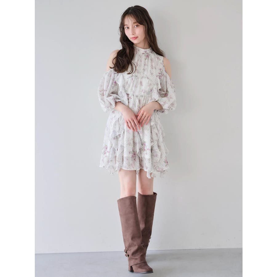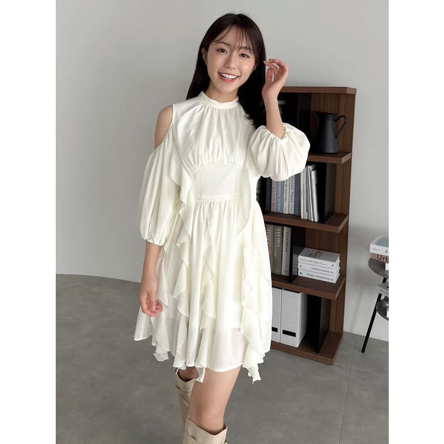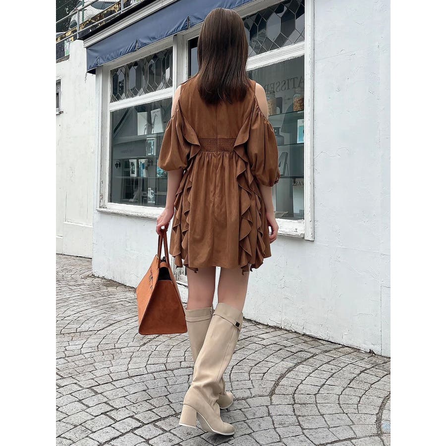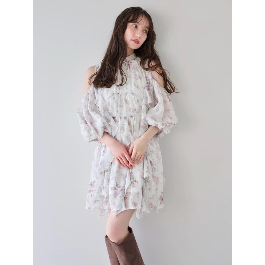 【商品】立体感のあるフリルが印象的なミニワンピース。ハイウエスト切替とコンパクトな丈感で脚長効果を演出し、肩あきデザインで抜け感とフェミニンさをプラス。無地、花柄、スエード調とバリエ豊富で、季節や気分に合わせて選べるのも魅力。【スタイリング】春夏はショートカーデやブルゾンで軽やかに、秋冬はロングコートやファージャケットで甘辛ミックスに。足元はブーツでクールに、ストラップヒールでフェミニンにも。ミニバッグやヘアリボンでバランス良く仕上げるのがおすすめです。※実際にお届けする商品と仕様やサイズが異なる場合がございます。また生産の都合上、お届け時期が前後する場合がございます。【商品特徴】透け感(オフホワイト/アイボリーのみ):あり 透け感(その他カラー):なし伸縮性:なし生地の厚さ:普通サイズ感:普通裏地:ありポケット:なしファスナー:あり(後)