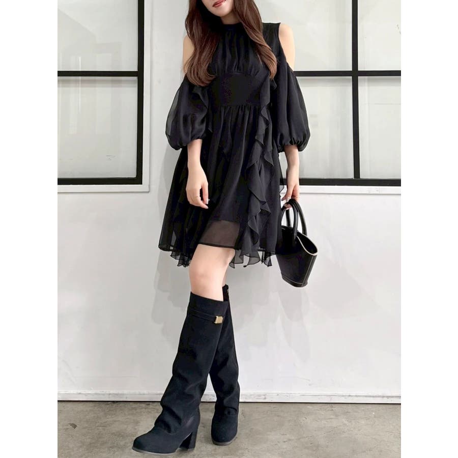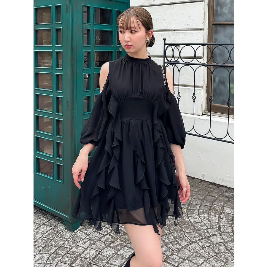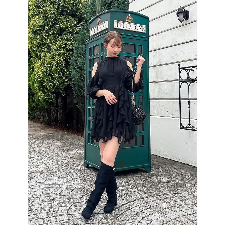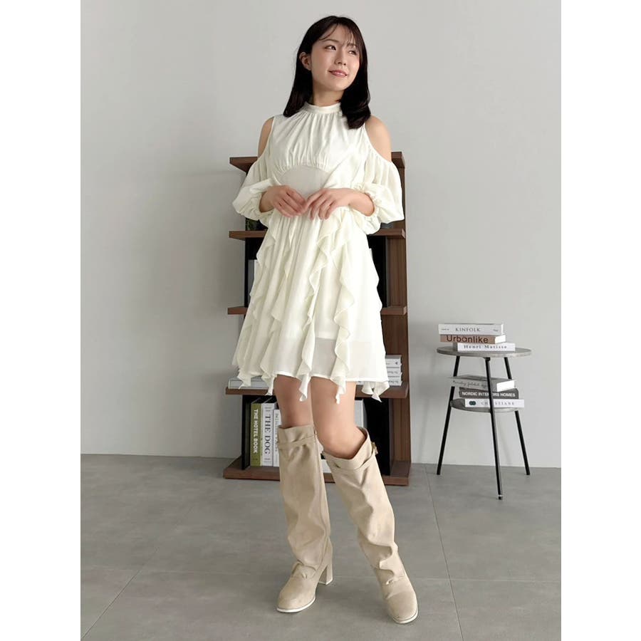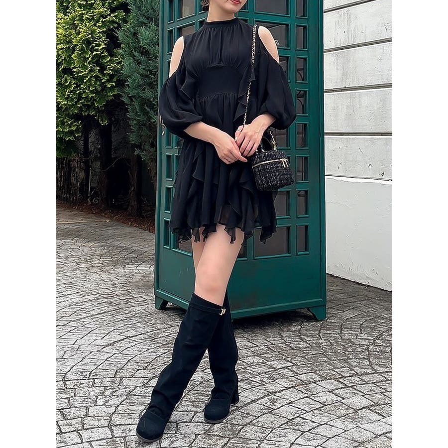 【商品】立体感のあるフリルが印象的なミニワンピース。ハイウエスト切替とコンパクトな丈感で脚長効果を演出し、肩あきデザインで抜け感とフェミニンさをプラス。無地、花柄、スエード調とバリエ豊富で、季節や気分に合わせて選べるのも魅力。【スタイリング】春夏はショートカーデやブルゾンで軽やかに、秋冬はロングコートやファージャケットで甘辛ミックスに。足元はブーツでクールに、ストラップヒールでフェミニンにも。ミニバッグやヘアリボンでバランス良く仕上げるのがおすすめです。※実際にお届けする商品と仕様やサイズが異なる場合がございます。また生産の都合上、お届け時期が前後する場合がございます。【商品特徴】透け感(オフホワイト/アイボリーのみ):あり 透け感(その他カラー):なし伸縮性:なし生地の厚さ:普通サイズ感:普通裏地:ありポケット:なしファスナー:あり(後)