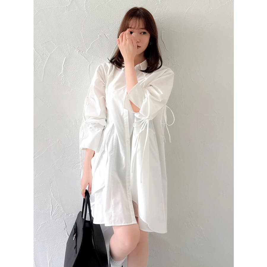 【商品】シャツライクな襟デザインと、計算された立体感のあるフレアシルエットが魅力のワンピース。ウエストからふんわり広がるイレギュラーヘムが動くたびに軽やかに揺れ、脚長効果を発揮しながら、トレンド感を兼ね備えた1枚。1枚で着映えする存在感がありつつも、シンプルで着回しやすく、オンオフ問わず活躍できる万能デザインです。【スタイリング】キャップやスニーカーを合わせれば、シャツワンピのきちんと感を程よくカジュアルダウン。ニットベストにソックスローファーでプレッピーライクなスタイリングにも昇華します。※実際にお届けする商品と仕様やサイズが異なる場合がございます。また生産の都合上、お届け時期が前後する場合がございます。【商品特徴】透け感:(オフホワイト)あり透け感:(その他カラー)なし伸縮性:なし生地の厚さ:普通サイズ感:普通裏地:なしポケット:なしファスナー:なし
