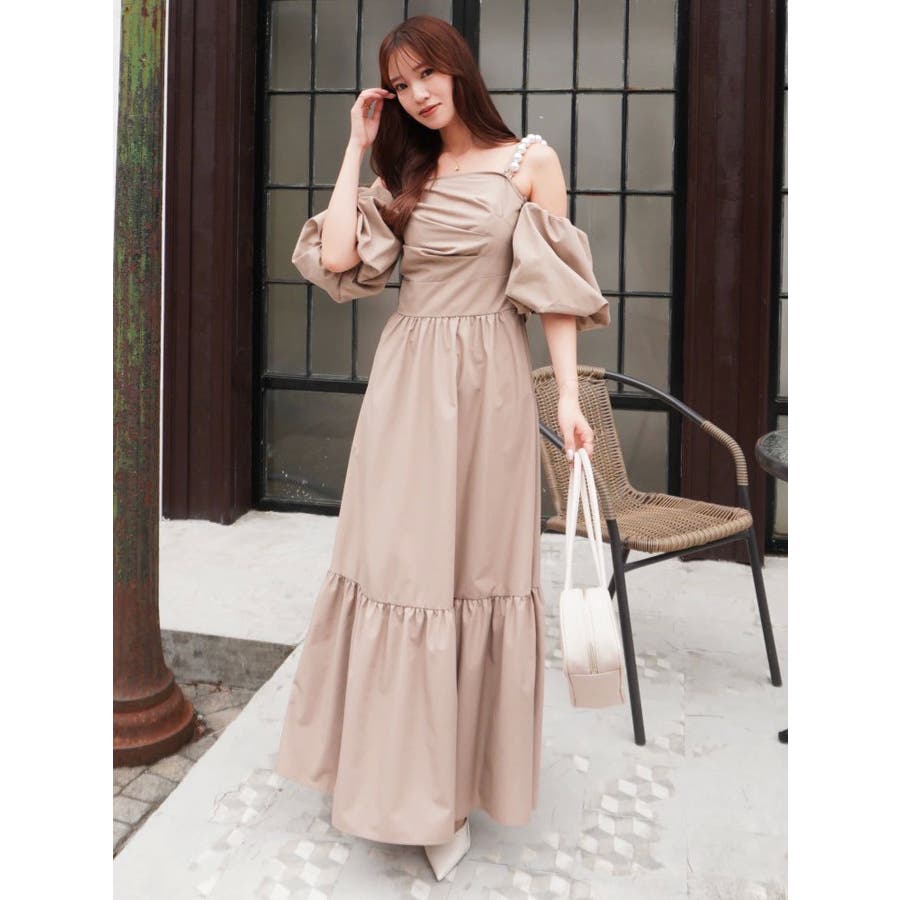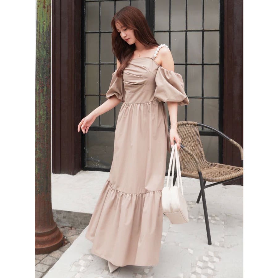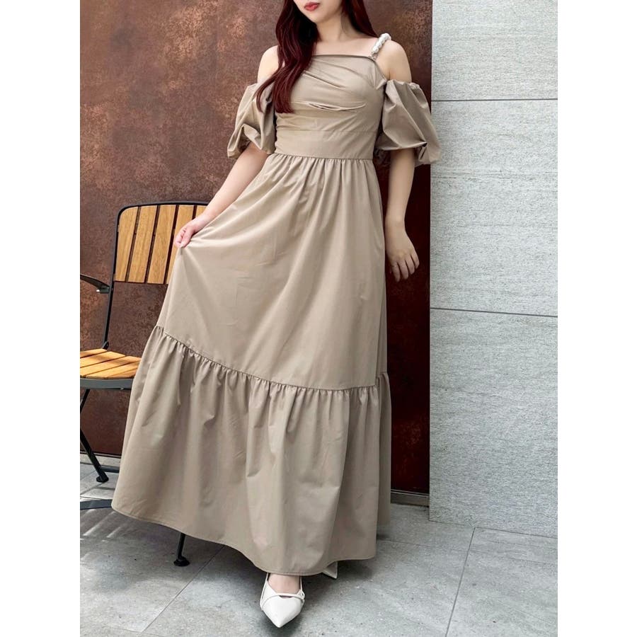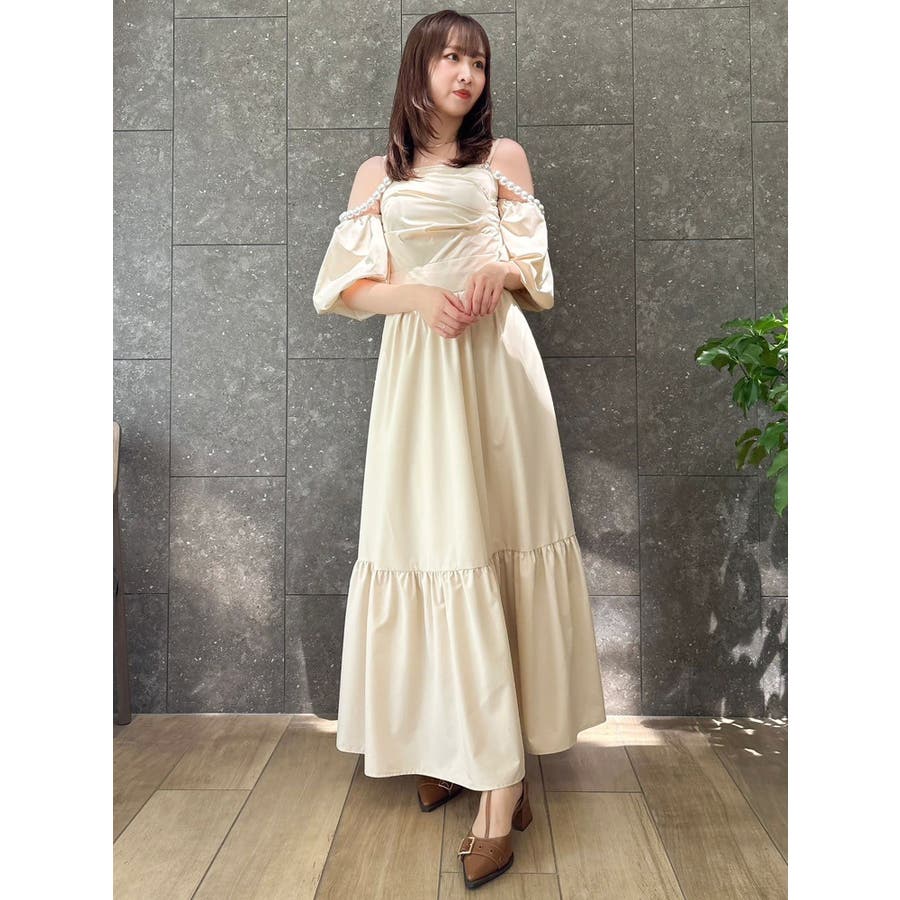 - 吉田朱里 supportted by dazzlin - akarin made.w/dazzlin アイテム第1弾>>特設ページはこちら<< 【アイテム】 程よいハリ感のあるコットン風の素材で仕立てたロングワンピース。 ツヤ感よりもマットな“質感”で魅せる大人の抜け感スタイルにぴったりの一枚です。 肩元にあしらわれたパールディテールが、シンプルなシルエットに上品な華やかさを添え、さりげないアクセントに。 袖はオフショルダーとしても着用できる2WAY仕様で、ON/OFF問わず着回しが効くのも嬉しいポイント。 長めの丈感とギャザー切り替えが動きのある美しいシルエットを演出します。 【スタイリング】 デイリーにはフラットサンダルやバレエシューズで抜け感のあるナチュラルスタイルに。パールアクセサリーを効かせれば、ちょっとしたお呼ばれやディナーシーンにも対応可能です。 肌寒い季節には、ショート丈のジャケットやニットカーディガンを羽織ってバランスよく。 ■dazzlin'S STAFF コメント大粒のパール風チェーンが見た瞬間から可愛く、コーデのポイントにもなります。チェーンは肩に乗せる・下ろす、どちらでも使えて、取り外しも可能!お袖のパフスリーブも取り外しができるので、様々なシーンで着用できそうなワンピースです。アフタヌーンティーやリゾートなど、着映えしたい特別な日に着たいです?---------------------------------------------------- 気になるアイテムはお気に入り登録がおすすめ 入荷情報やラスト1点、お得なプライスダウンの情報をいち早くお届け! ぜひご登録ください◎ ---------------------------------------------------- ※実際にお届けする商品と仕様やサイズが異なる場合がございます。 また生産の都合上、お届け時期が前後する場合がございます。