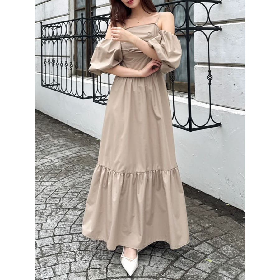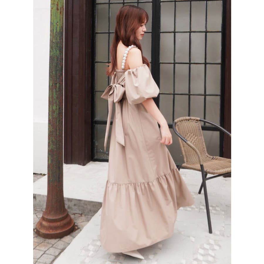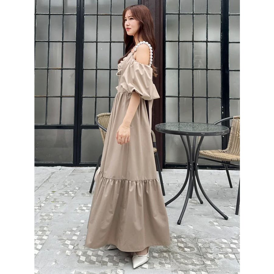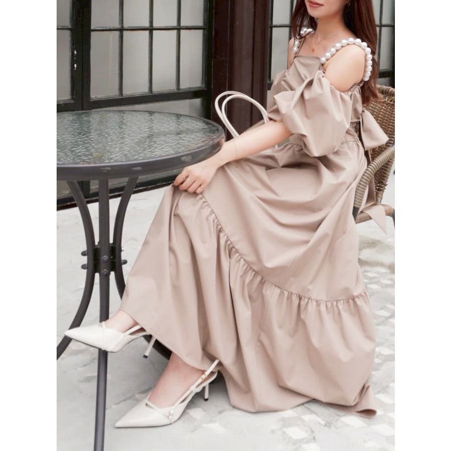 - 吉田朱里 supportted by dazzlin - akarin made.w/dazzlin アイテム第1弾>>特設ページはこちら<< 【アイテム】 程よいハリ感のあるコットン風の素材で仕立てたロングワンピース。 ツヤ感よりもマットな“質感”で魅せる大人の抜け感スタイルにぴったりの一枚です。 肩元にあしらわれたパールディテールが、シンプルなシルエットに上品な華やかさを添え、さりげないアクセントに。 袖はオフショルダーとしても着用できる2WAY仕様で、ON/OFF問わず着回しが効くのも嬉しいポイント。 長めの丈感とギャザー切り替えが動きのある美しいシルエットを演出します。 【スタイリング】 デイリーにはフラットサンダルやバレエシューズで抜け感のあるナチュラルスタイルに。パールアクセサリーを効かせれば、ちょっとしたお呼ばれやディナーシーンにも対応可能です。 肌寒い季節には、ショート丈のジャケットやニットカーディガンを羽織ってバランスよく。 ■dazzlin'S STAFF コメント大粒のパール風チェーンが見た瞬間から可愛く、コーデのポイントにもなります。チェーンは肩に乗せる・下ろす、どちらでも使えて、取り外しも可能!お袖のパフスリーブも取り外しができるので、様々なシーンで着用できそうなワンピースです。アフタヌーンティーやリゾートなど、着映えしたい特別な日に着たいです?---------------------------------------------------- 気になるアイテムはお気に入り登録がおすすめ 入荷情報やラスト1点、お得なプライスダウンの情報をいち早くお届け! ぜひご登録ください◎ ---------------------------------------------------- ※実際にお届けする商品と仕様やサイズが異なる場合がございます。 また生産の都合上、お届け時期が前後する場合がございます。