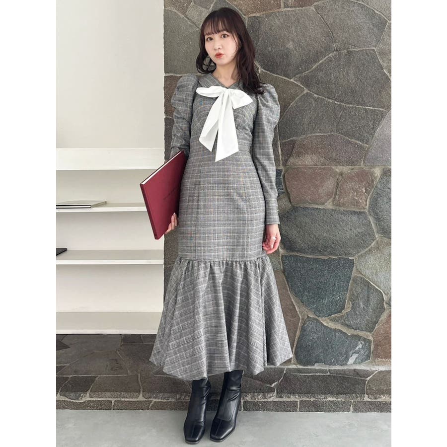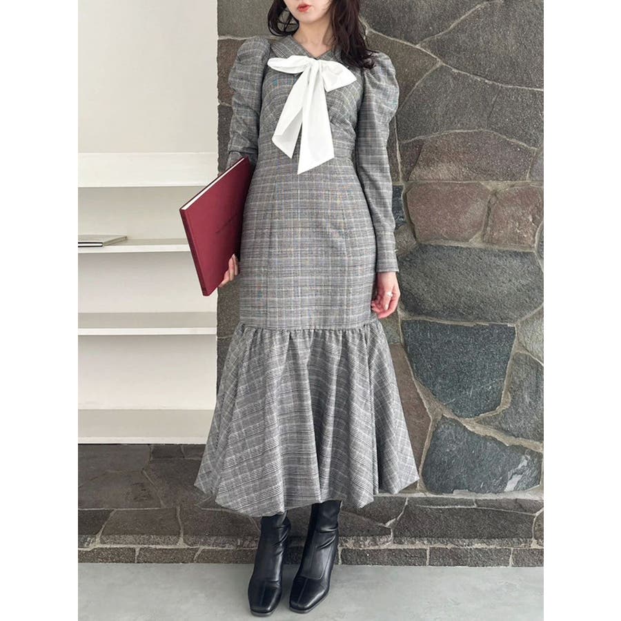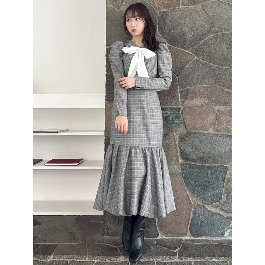 バルーンチェックワンピース