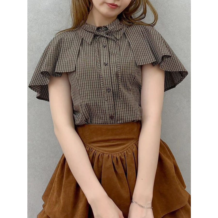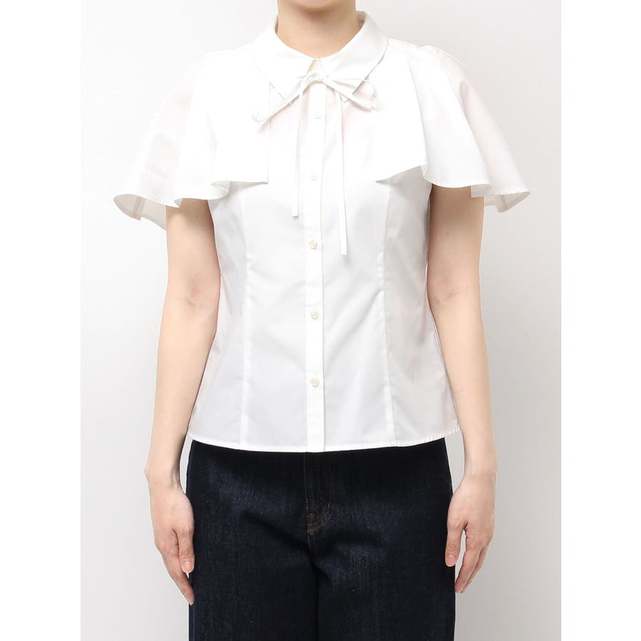 【商品】トレンドライクなケープがドッキングされた1枚で映えるデザインブラウス。ケープは二の腕をカバーしながら小顔効果も上げてくれます。リボンは取り外し可能で気分によって付け替えできるのも魅力です。【スタイリング】無地はオンシーンで、きれいめなマーメイドスカートやパンツ合わせでレディライクに。トレンド感のあるキャビンシャツライクなチェックはオフシーンでデニムパンツやミニボトムス合わせでシティガール風なスタイリングが今っぽくおすすめです。※実際にお届けする商品と仕様やサイズが異なる場合がございます。また生産の都合上、お届け時期が前後する場合がございます。【商品特徴】透け感:なし伸縮性:なし生地の厚さ:普通サイズ感:普通裏地:なしポケット:なし