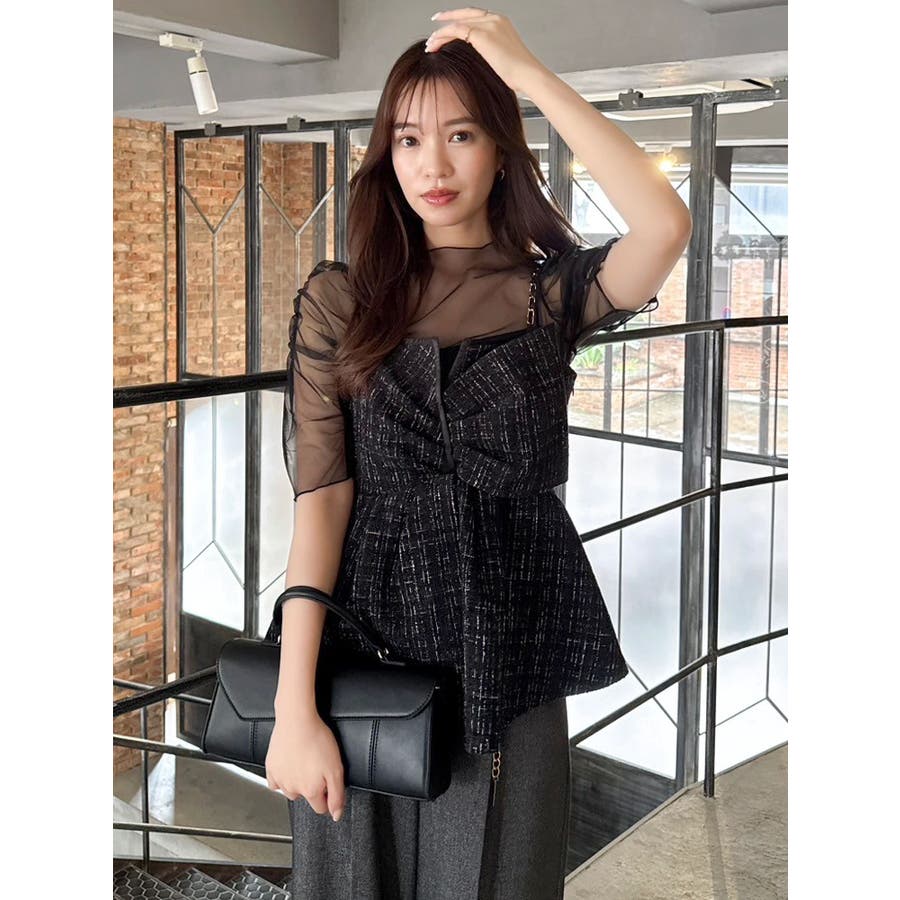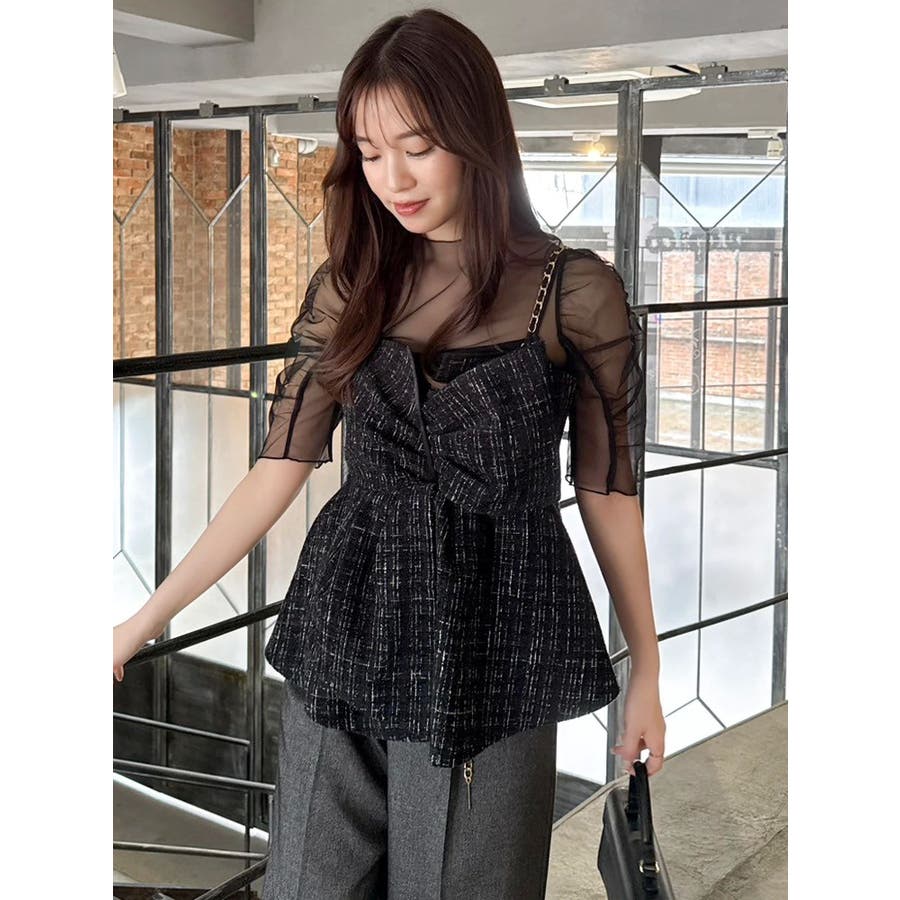 F: バスト一部ゴム仕様:82~92cm/前下がり調節、取り外し可能cm/総丈前身頃41.5 後身頃34cm/計量約252g