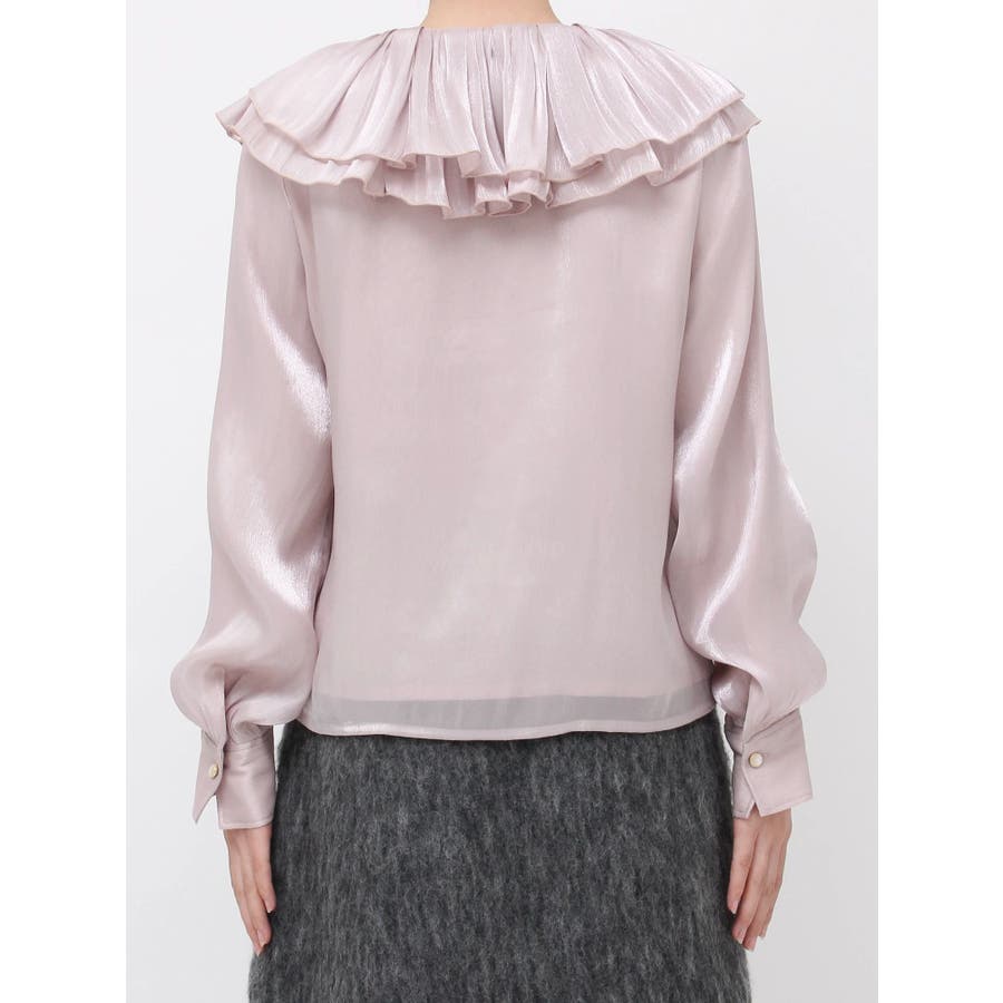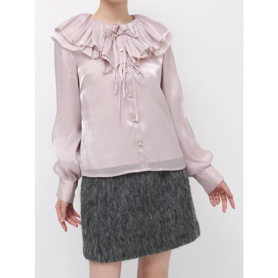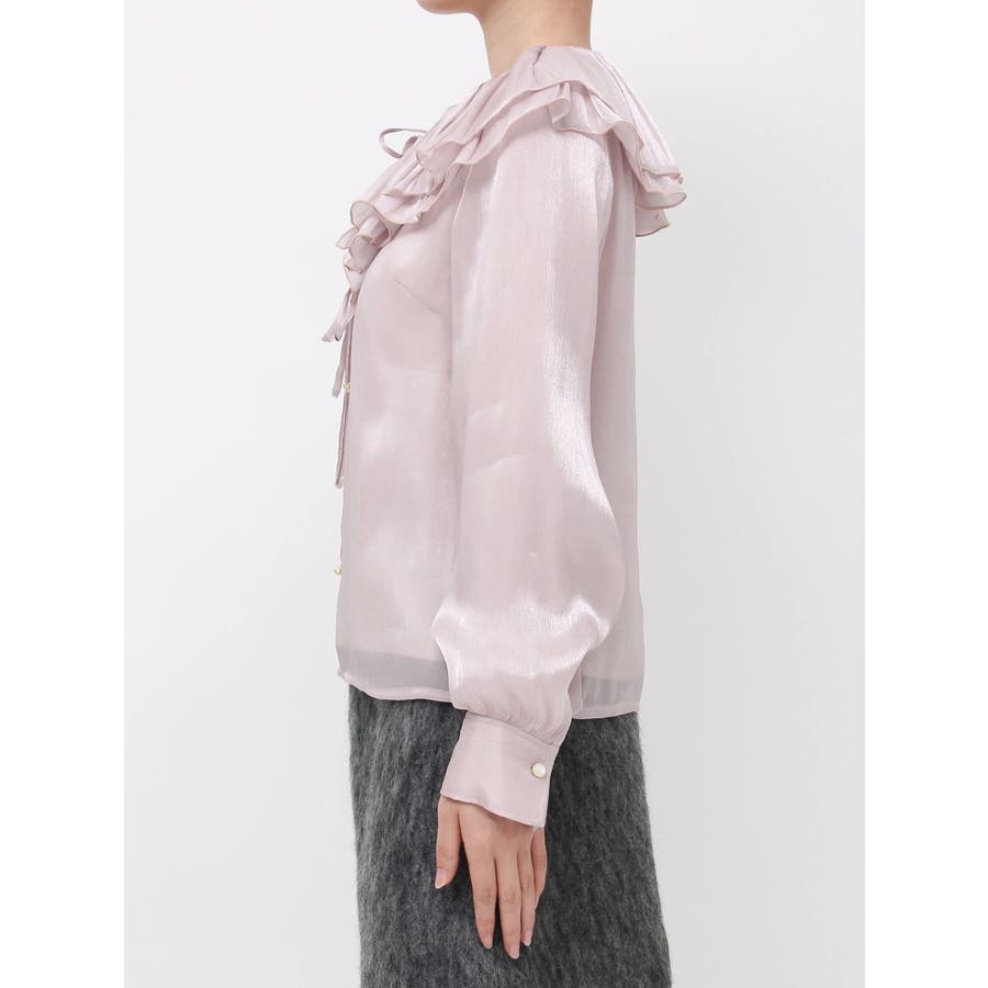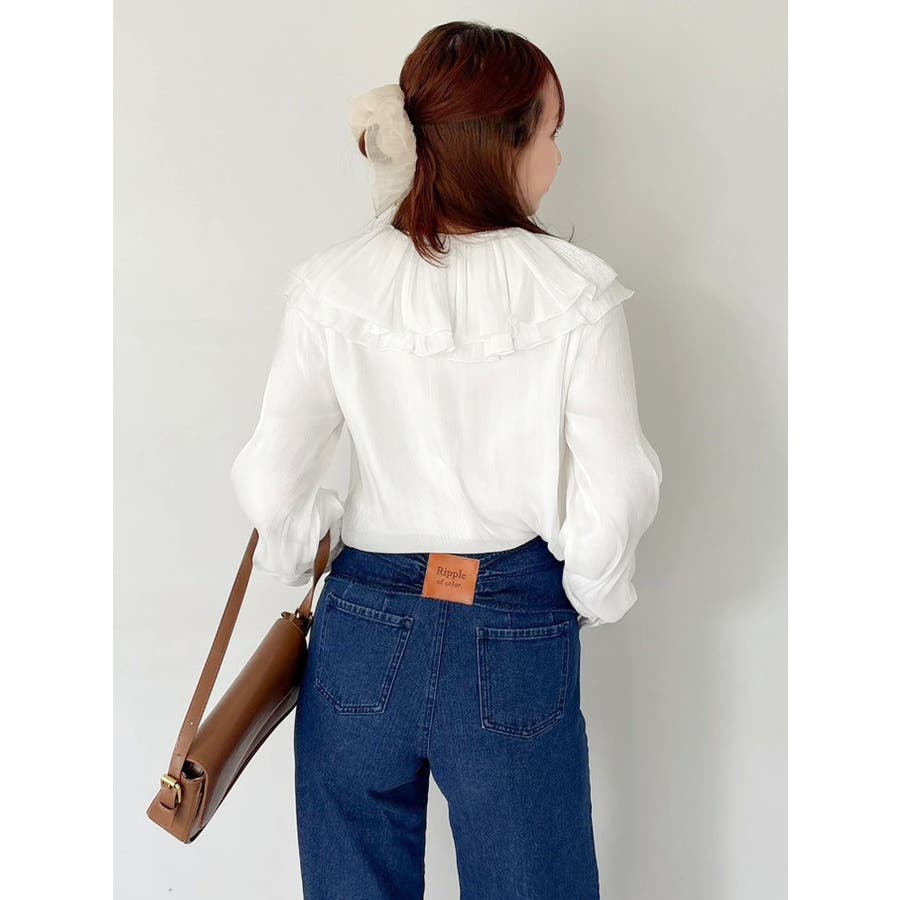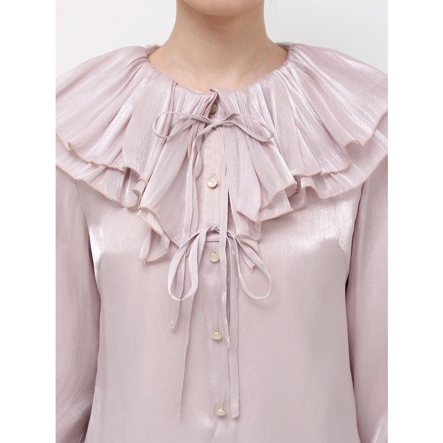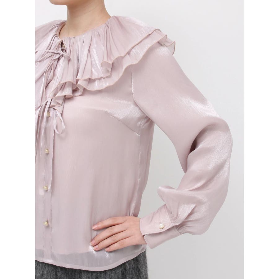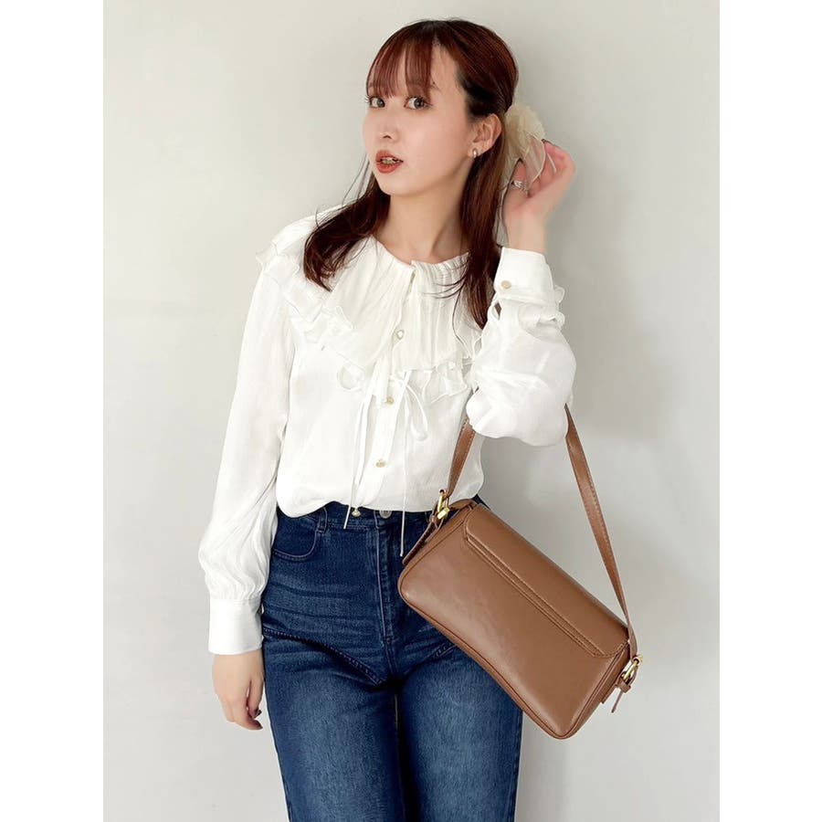 【商品】今季トレンド間違いなしのピエロカラーに、繊細なフリルを重ねたデザインが目を惹くブラウス。顔まわりに華やかさを添えるボリューム感のある襟元は、dazzlin(ダズリン)らしい甘さと品の良さを両立したポイント。素材は軽やかで張りを出しラッフルフリルを優しく仕上げました。艶のある素材で、ふんわりとしたシルエットが女性らしさを引き立てます。【スタイリング】今季はジャケットからフリルを出して華やかに着合わせるスタイリングがおすすめです。上品さがありながらもトレンド感を引き立てdazzlinらしい遊び心のあるスタイルが完成します。※実際にお届けする商品と仕様やサイズが異なる場合がございます。また生産の都合上、お届け時期が前後する場合がございます。【商品特徴】透け感:あり伸縮性:なし生地の厚さ:薄手サイズ感:普通裏地:あり毛ポケット:なし
