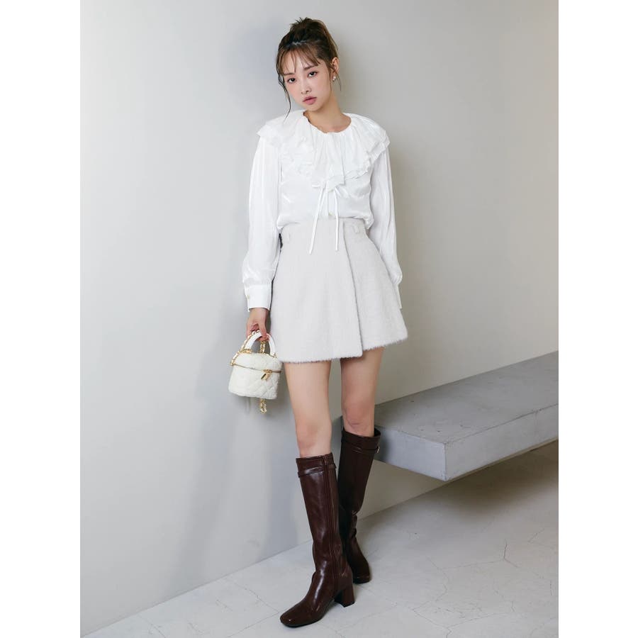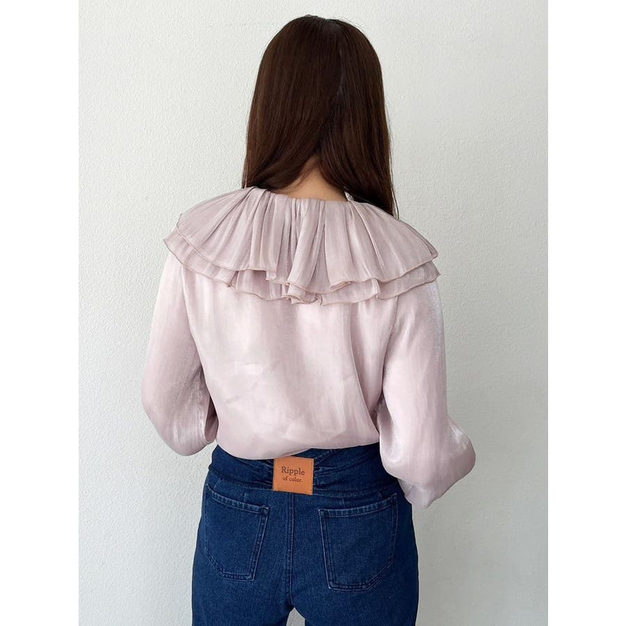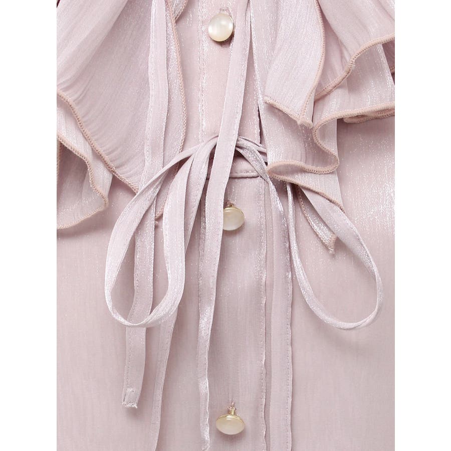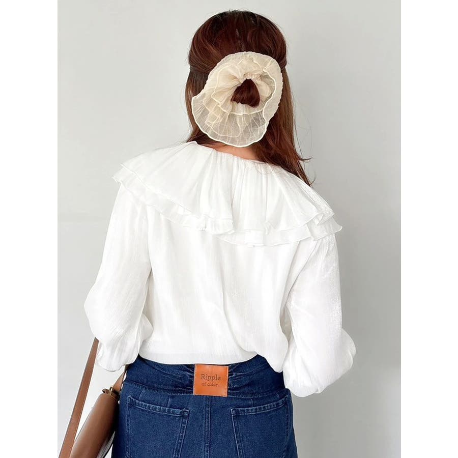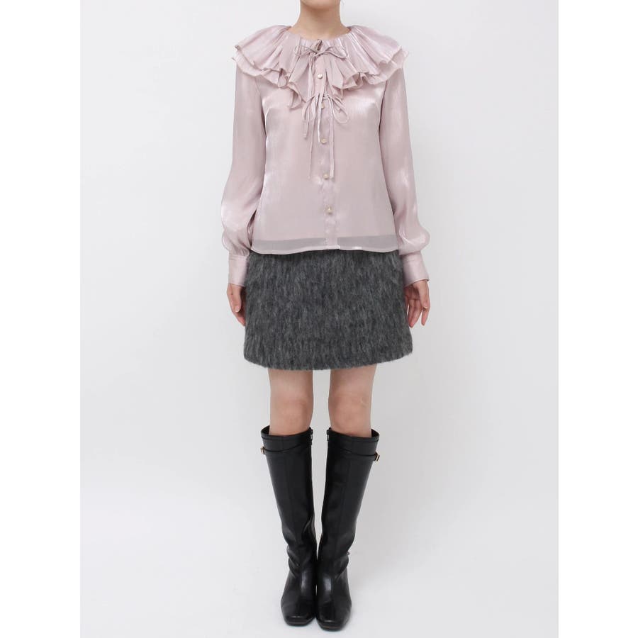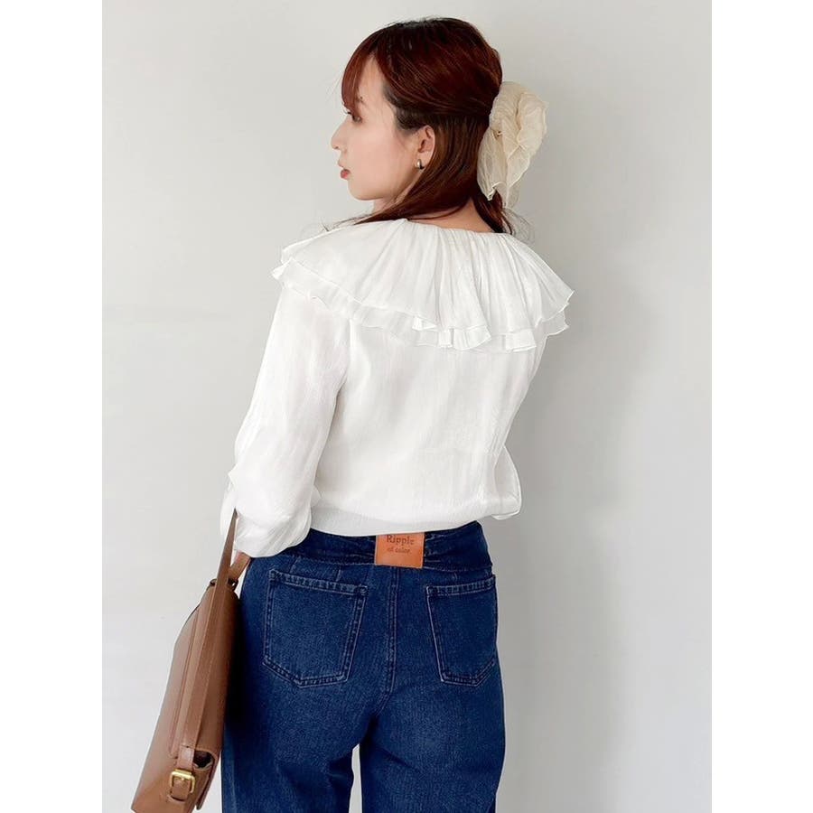 【商品】今季トレンド間違いなしのピエロカラーに、繊細なフリルを重ねたデザインが目を惹くブラウス。顔まわりに華やかさを添えるボリューム感のある襟元は、dazzlin(ダズリン)らしい甘さと品の良さを両立したポイント。素材は軽やかで張りを出しラッフルフリルを優しく仕上げました。艶のある素材で、ふんわりとしたシルエットが女性らしさを引き立てます。【スタイリング】今季はジャケットからフリルを出して華やかに着合わせるスタイリングがおすすめです。上品さがありながらもトレンド感を引き立てdazzlinらしい遊び心のあるスタイルが完成します。※実際にお届けする商品と仕様やサイズが異なる場合がございます。また生産の都合上、お届け時期が前後する場合がございます。【商品特徴】透け感:あり伸縮性:なし生地の厚さ:薄手サイズ感:普通裏地:あり毛ポケット:なし