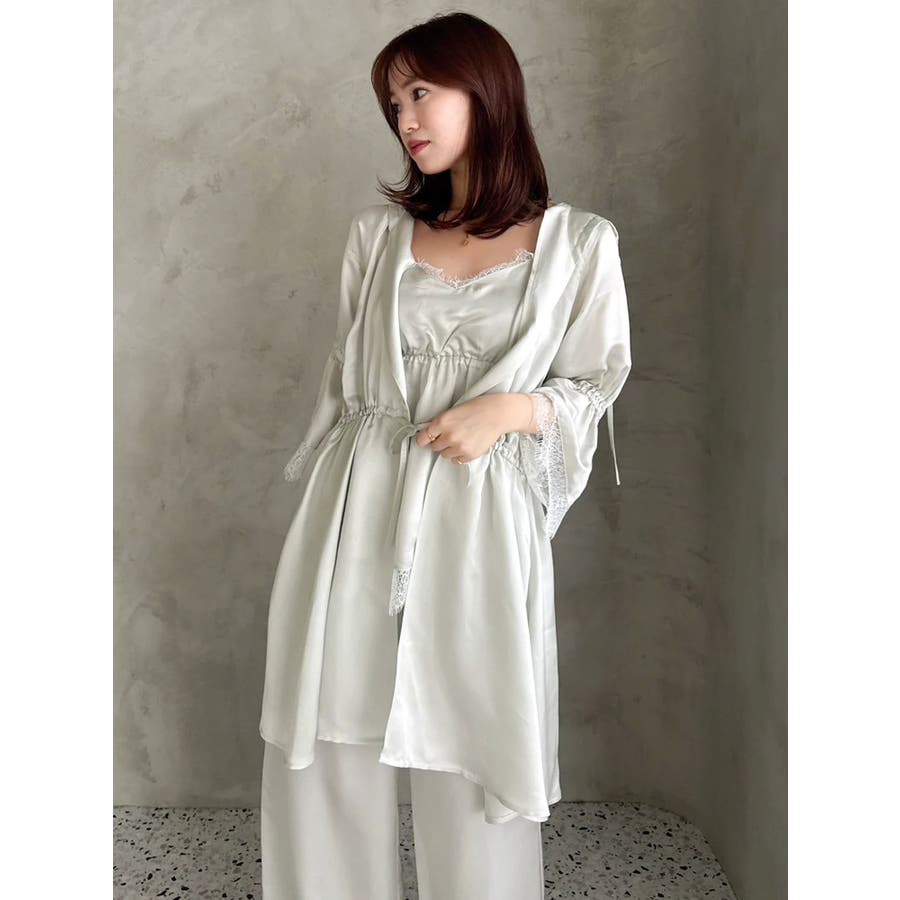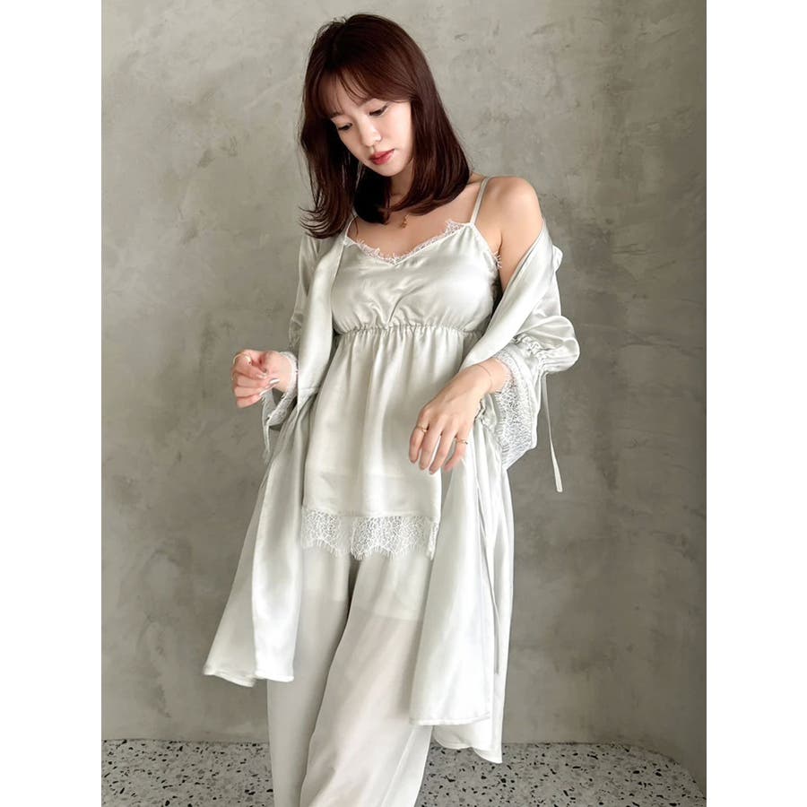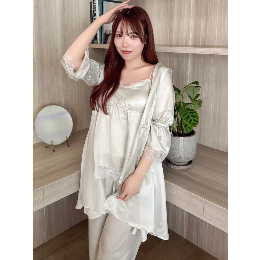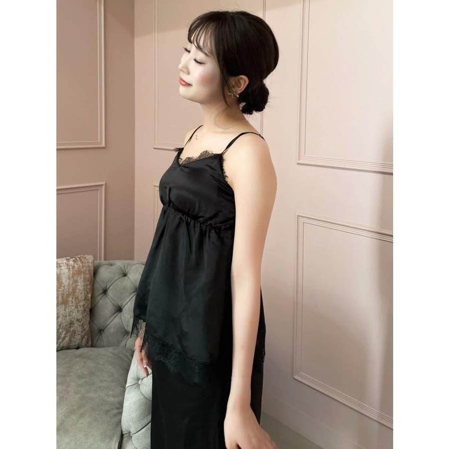 【商品】とろみ感のあるシルク素材と繊細なレースを組み合わせた、上品で色っぽい印象のカップ付きキャミソール。なめらかな質感が肌にやさしくフィットし、動きやすさと女性らしさを両立したリラックス仕様です。細めのストラップとVネックラインでデコルテをきれいに見せつつ、下着感のない抜け感デザインがポイント。カップ付きなので1枚でも安心して着用でき、ルームウェアとしてはもちろん、ちょっとしたお泊まりや旅行シーンにもぴったりです。【スタイリング】同素材のガウンやパンツとセットアップで着用すれば、統一感のある上質なおうちコーデに。肌寒い季節はニットカーディガンを羽織って、ゆるっと可愛いレイヤードスタイルもおすすめ。※実際にお届けする商品と仕様やサイズが異なる場合がございます。また生産の都合上、お届け時期が前後する場合がございます。