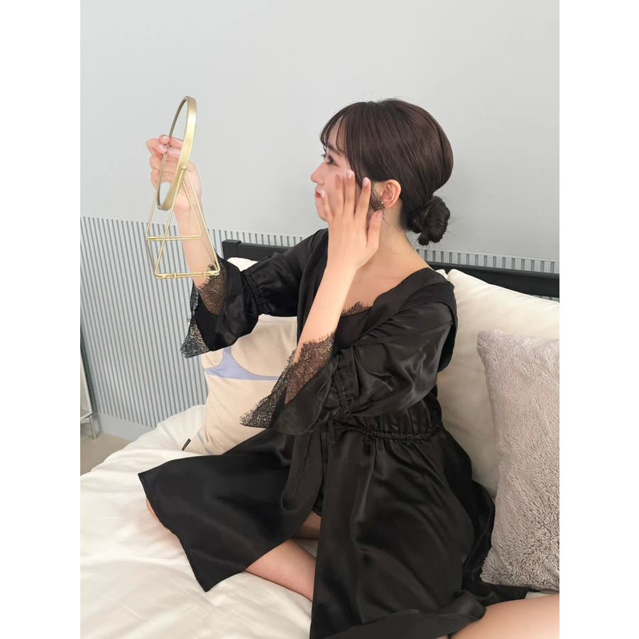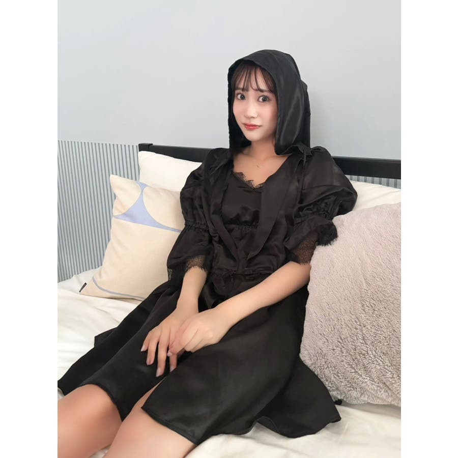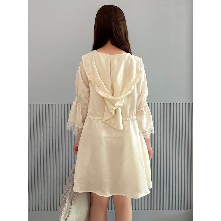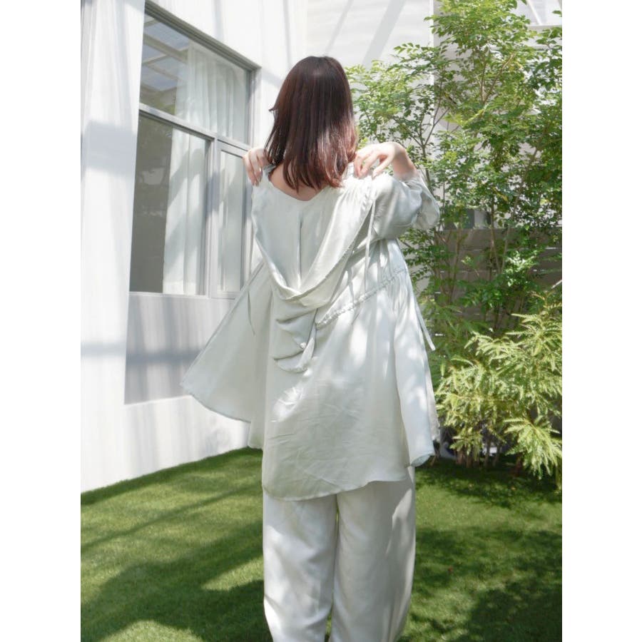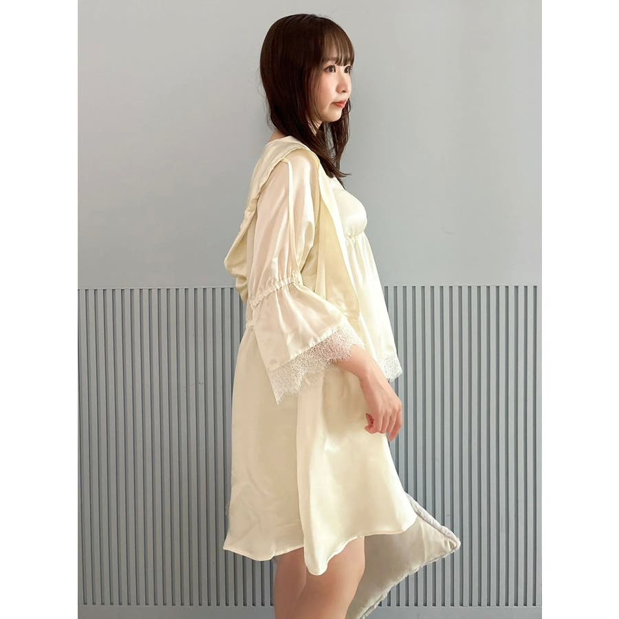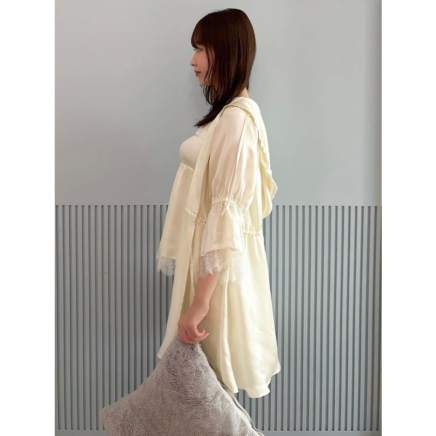 【商品】とろみ感と艶を兼ね備えた上質なシルク素材で仕立てたルームウェアガウン。しっとりとした滑らかな肌触りで、まとうだけでリッチな気分に包まれる一枚です。ゆったりとしたシルエットは締め付け感がなく、リラックスタイムに最適な着心地を実現。フードは大きめで、寝るときにかぶると髪を守るナイトキャップにもなります。付属のウエストリボンでシルエットを自在に調整でき、羽織るだけで洗練されたルームスタイルが完成します。【スタイリング】同素材のキャミソールやパンツとのセットアップで、統一感のある上品なルームコーデに。リボンを結んでウエストマークすれば、きちんと感が出て急な来客にも対応◎。ヘアはゆるっとまとめて、大ぶりのシュシュやヘアバンドを合わせるとより華やかに。おうち時間はもちろん、旅行やお泊まり女子会にもぴったりの1枚です。※実際にお届けする商品と仕様やサイズが異なる場合がございます。また生産の都合上、お届け時期が前後する場合がございます。
