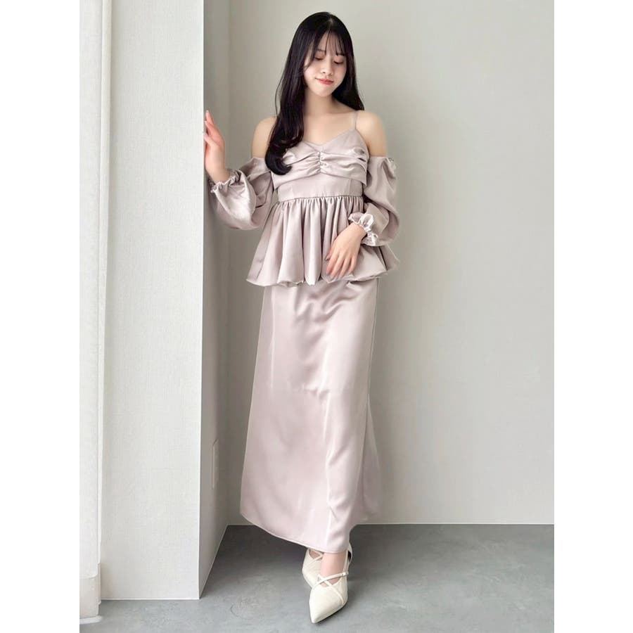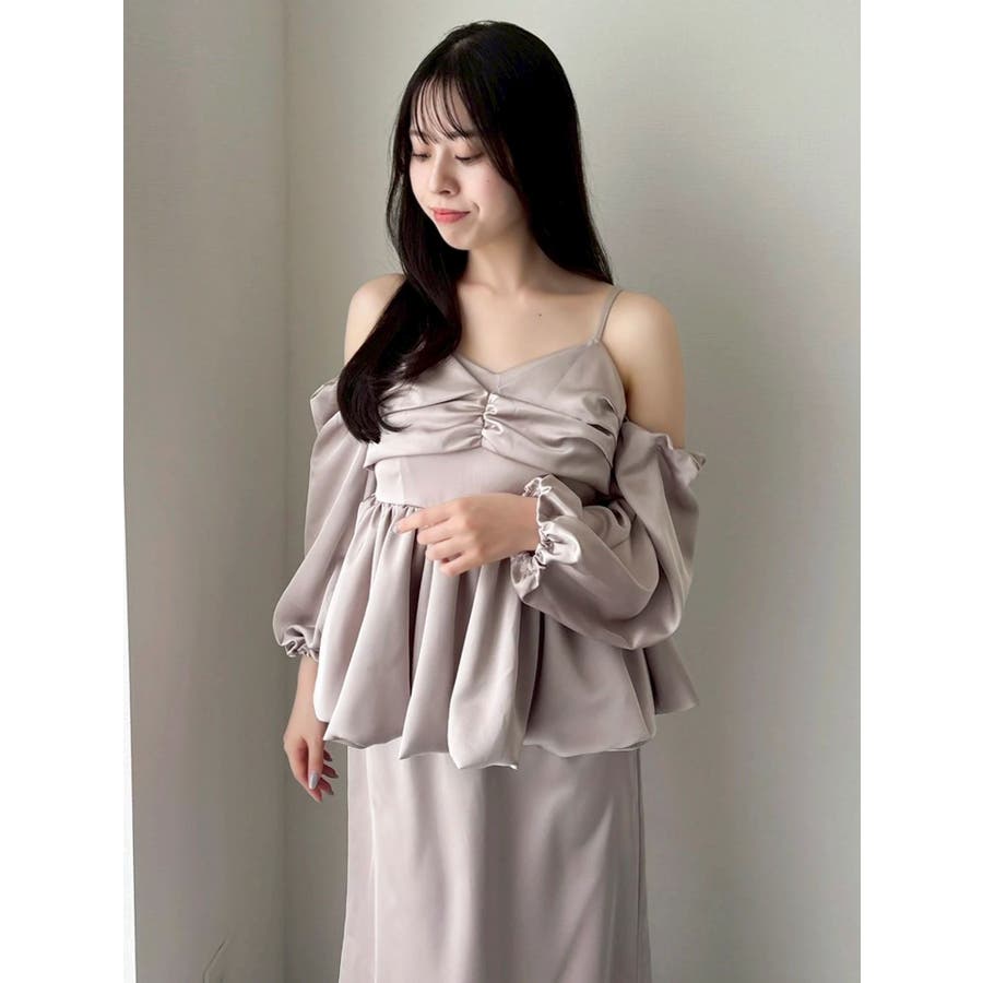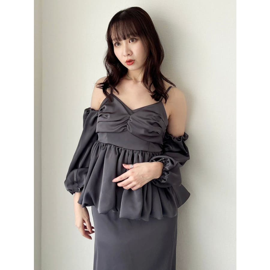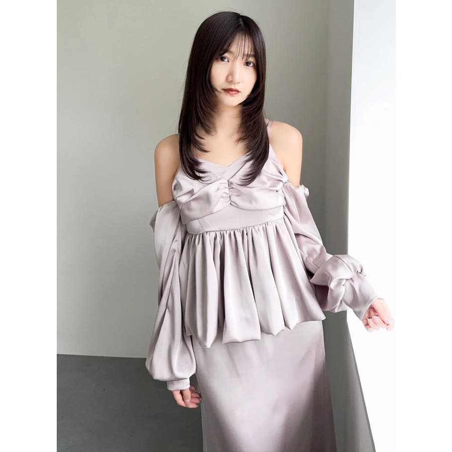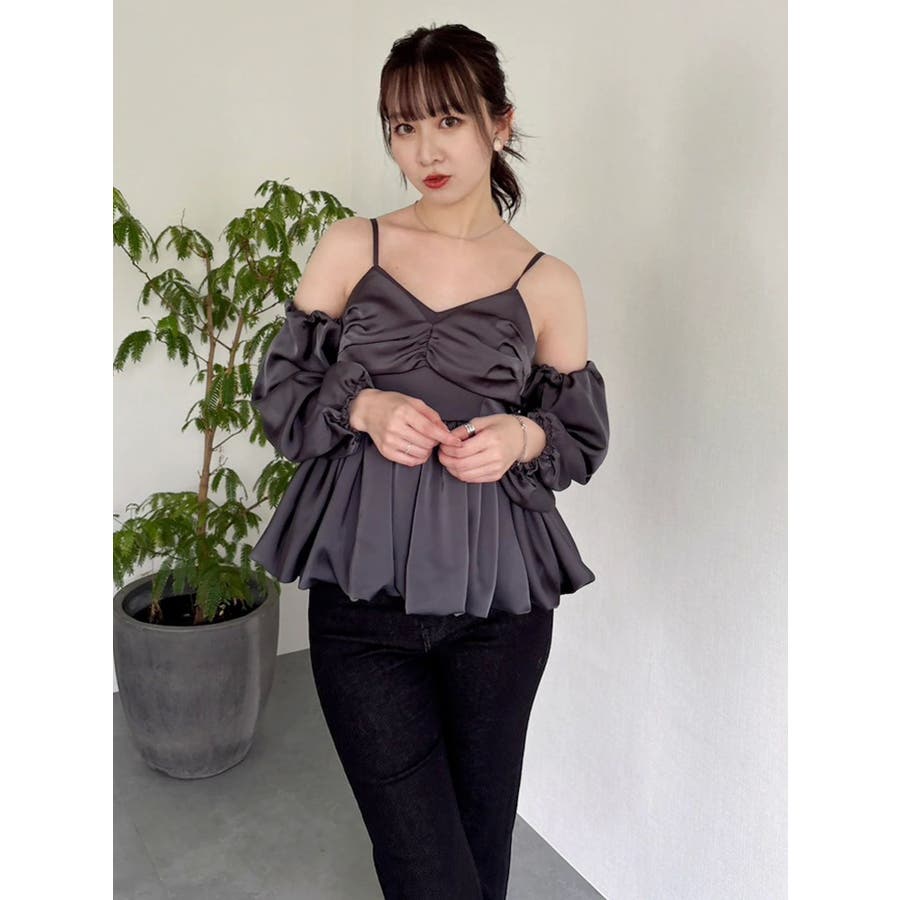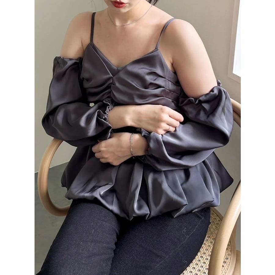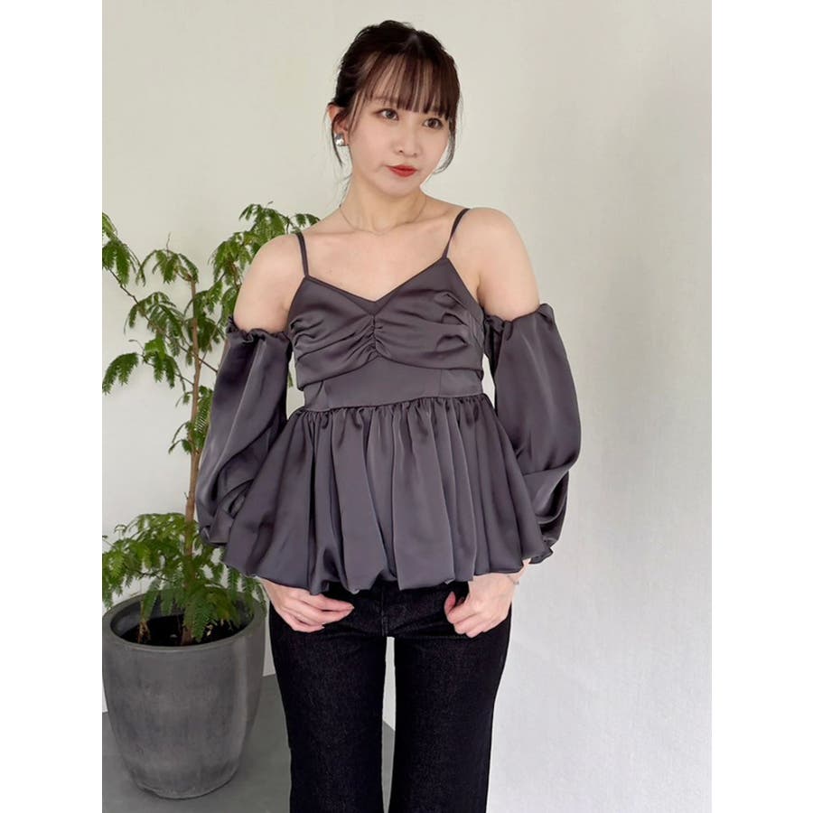 【商品】程よい艶感が美しいサテン素材で仕立てた、華やかさと上品さを兼ね備えたペプラムブラウス。ウエストにふんわり広がるペプラムデザインを施すことで、女性らしいラインを強調しつつ、スタイルアップ効果も抜群◎。袖は取り外し可能な2WAY仕様でビスチェとしても活躍します。空気を含んだようなバルーンスリーブは、動くたびに優雅に揺れる立体感をプラス。1枚で華やぎを演出できる、大人フェミニンな主役ブラウスです。【スタイリング】Iラインを描くナロースカートの組み合わせで上品さが際立つスタイリングに。スラックス系パンツ合わせでヘルシーな装いも叶います。コンパクトなシアートップスやリブニットのレイヤードで、これからの季節も長く着こなしを楽しめます。※実際にお届けする商品と仕様やサイズが異なる場合がございます。また生産の都合上、お届け時期が前後する場合がございます。【商品特徴】透け感:なし伸縮性:なし生地の厚さ:普通サイズ感:普通裏地:ありポケット:なし