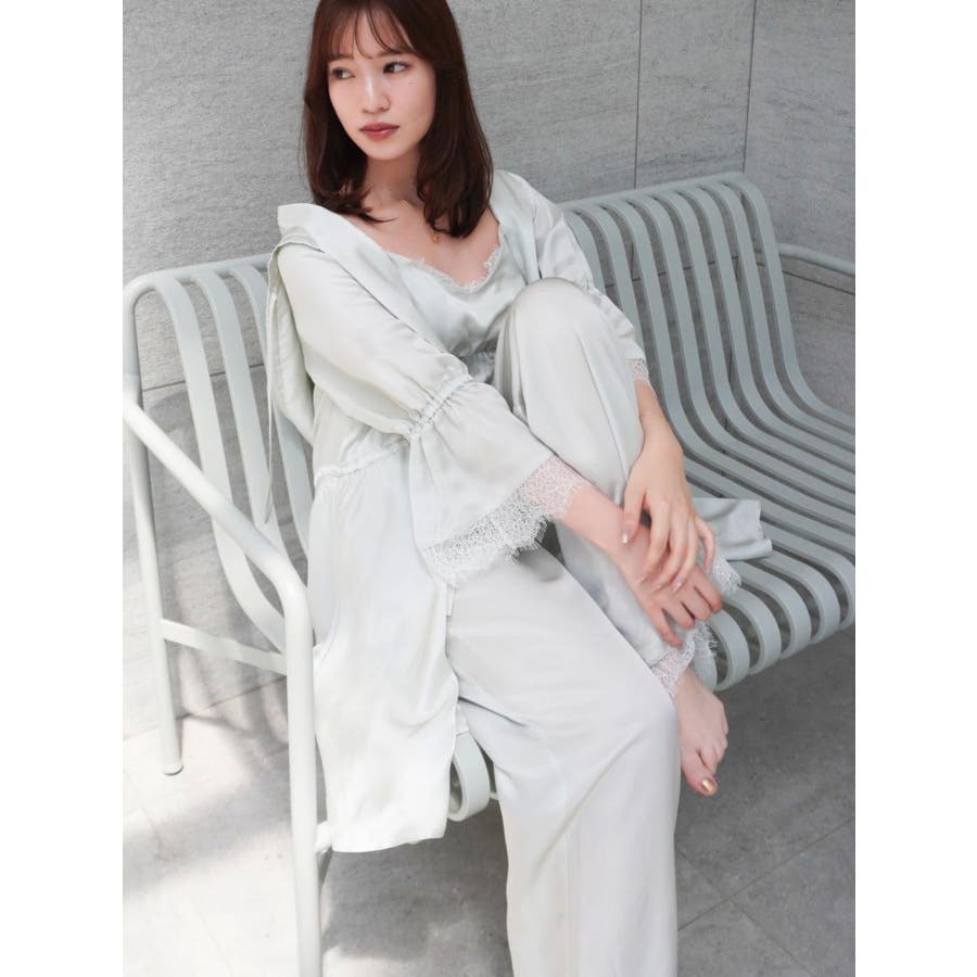 - 吉田朱里 supportted by dazzlin - akarin made.w/dazzlin アイテム第1弾 7.18 fri 12:00 PREORDER START! >>特設ページはこちら<<【アイテム】 上品なシルク素材とレースの裾が美しいロング丈ルームパンツ。 ゆったりとしたシルエットながらも、ストンと落ちるラインで脚長&美脚効果が期待できる1枚です。 裾に施されたスカラップレースが上品なアクセントになり、ルームウェアでも女性らしさをしっかりキープ。 ウエストはゴム仕様でリボン付き。 体に優しくフィットし、締め付け感のない快適な着心地です。~Cosmetic Wear~~~~~~~~~~~~~~~こちらのアイテムは『Cosmetic Wear』です。化粧品成分配合で肌にうるおいを与えます。ベクシル構造で出来たセラミド成分入りカプセルが生地に付着しております。油層が皮膚に触れると外側の油層が割れセラミド成分が塗布されます。着るたびに何層にもなった集合体からセラミド成分がお肌に塗布され、お肌の潤いを保ちます。※集合体が全て無くなった時点で効果は無くなります。※効果には個人差がございます。~~~~~~~~~~~~~~~~~~~~~~~~【スタイリング】同素材のキャミソールやガウンとのセット使いで、大人フェミニンなルームコーデが完成。肌寒い日にはニットトップスと合わせても◎。シンプルなTシャツをインして、ちょっとした外出にも着られるナチュラルスタイルにも使えます。ルームウェアとしてはもちろん、ギフトや旅行用にもおすすめの万能パンツです。▼セットで着れるRoomWear?・【吉田朱里】シルクフードヘアカバーガウン・【吉田朱里】シルクカップインキャミソール・【吉田朱里】シルクランジェリーライクショートパンツ■dazzlin'S STAFF コメント水分を含んでいるようなサラサラ艶々な素材で、肌に触れた時にしっとりと包み込んでくれるような着心地でした。足を出したくない方にオススメなロングパンツ型で、ウエストも総ゴムなのでとにかくストレスフリーな1枚です。お風呂上がりの保湿クリームやオイルを、朝まで効果持続させてくれるような質感なので、足元をきれいに保ちたい方に是非オススメしたいルームウェアです!!----------------------------------------------------気になるアイテムはお気に入り登録がおすすめ入荷情報やラスト1点、お得なプライスダウンの情報をいち早くお届け!ぜひご登録ください◎----------------------------------------------------※実際にお届けする商品と仕様やサイズが異なる場合がございます。 また生産の都合上、お届け時期が前後する場合がございます。