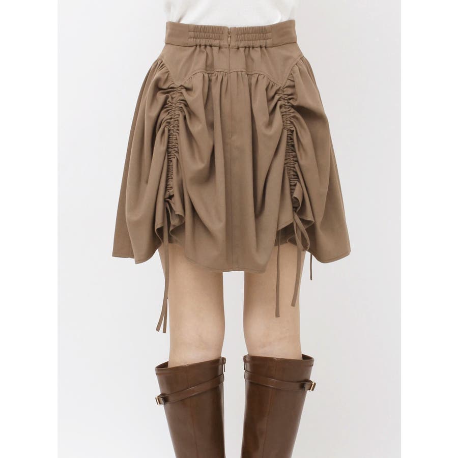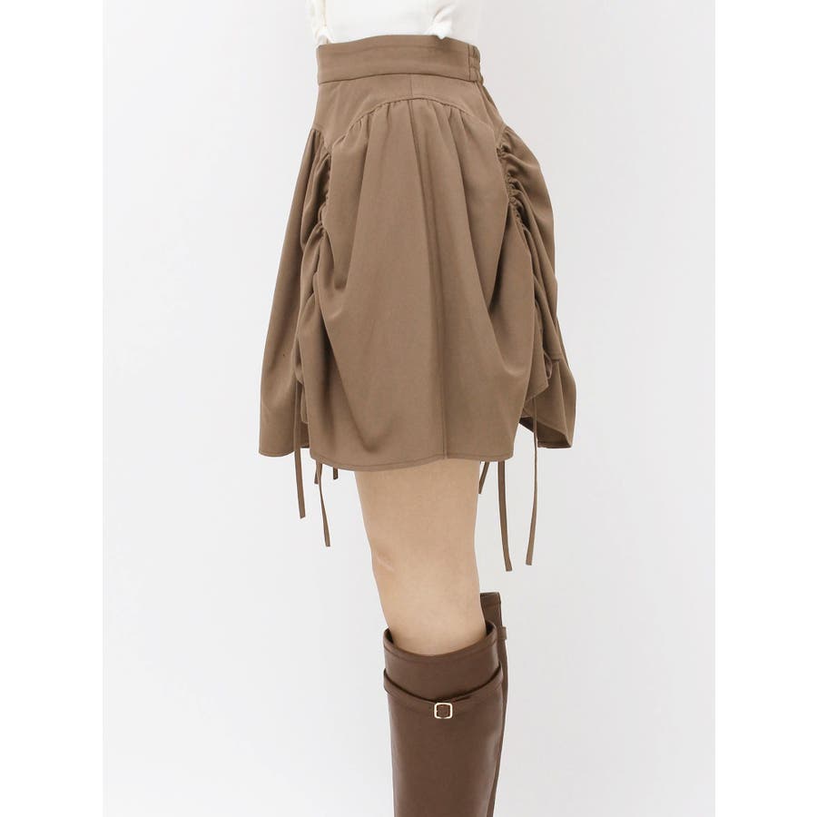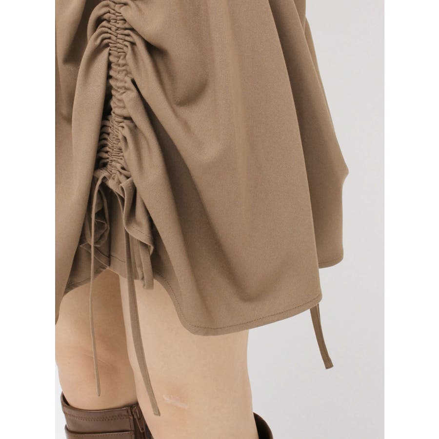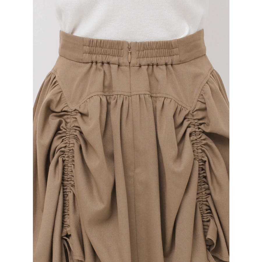 【商品】一着で二通りの表情を楽しめる2WAY仕様のギャザースカート。サイドのドロストを絞ることで、ボリュームたっぷりのミニバルーンスカートに変身。寄せずに着用すれば、自然なフレア感が美しいヘムラインのミディスカートとしても楽しめます。ハリ感のある素材が構築的なシルエットをキープし、スタイルに立体感をプラス。ウエストは太めの切替デザインで、腰位置が高く見えスタイルアップ効果も◎。【スタイリング】ミニバルーンで着る日は、コンパクトなトップスやショート丈ニットと合わせてメリハリのあるスタイルに。ロングブーツを合わせてモードに振るのもおすすめです。ミディスカートとして着用する際は、タックインシャツやカットソーで抜け感のあるシンプルコーデに仕上げると◎。その日の気分やシーンに合わせて自由に表情を変えられる、着回し力抜群の1枚です。※実際にお届けする商品と仕様やサイズが異なる場合がございます。 また生産の都合上、お届け時期が前後する場合がございます。【商品特徴】透け感:なし伸縮性:なし生地の厚さ:普通サイズ感:普通裏地:なしポケット:なし