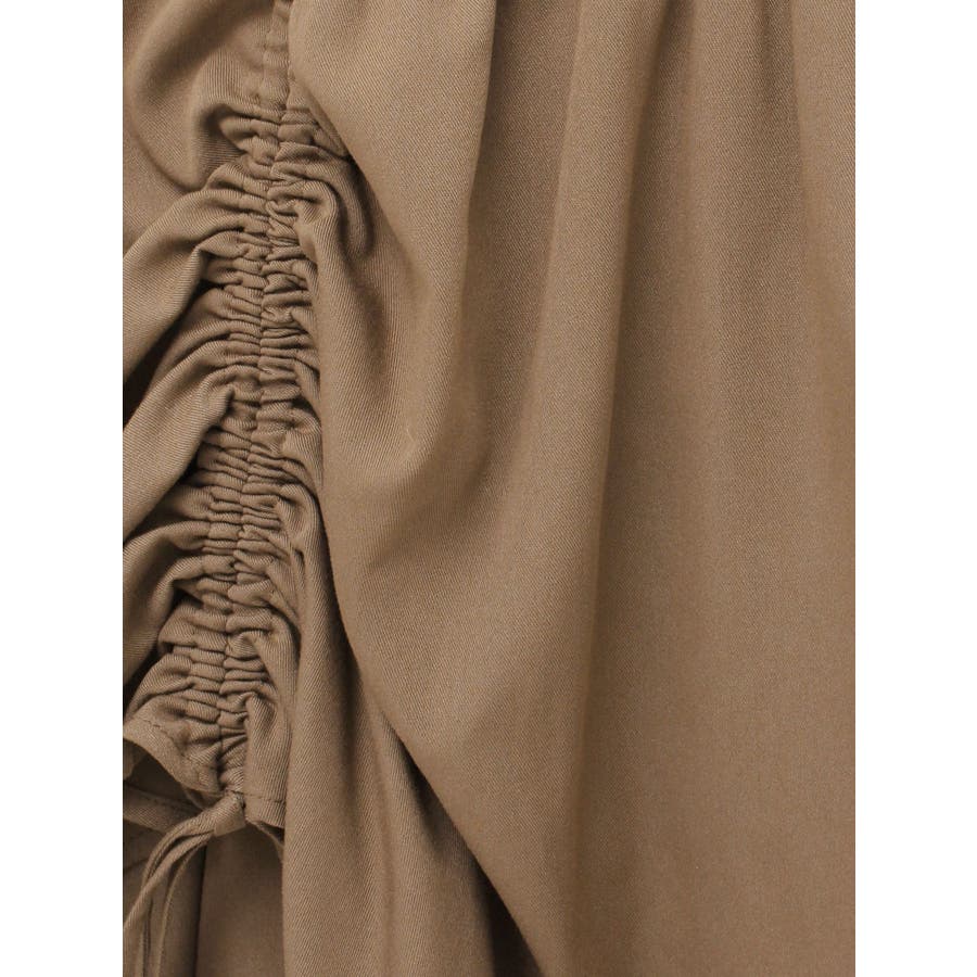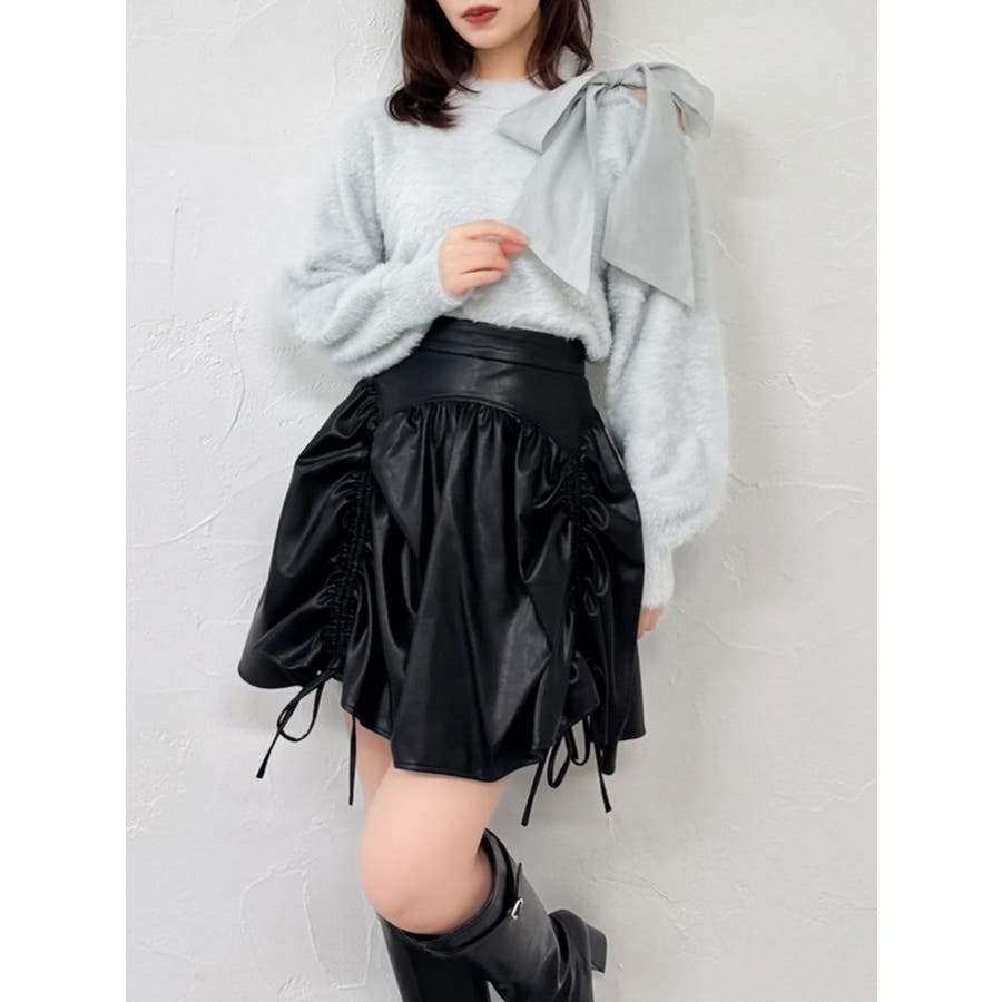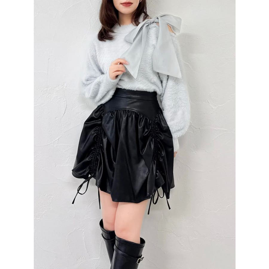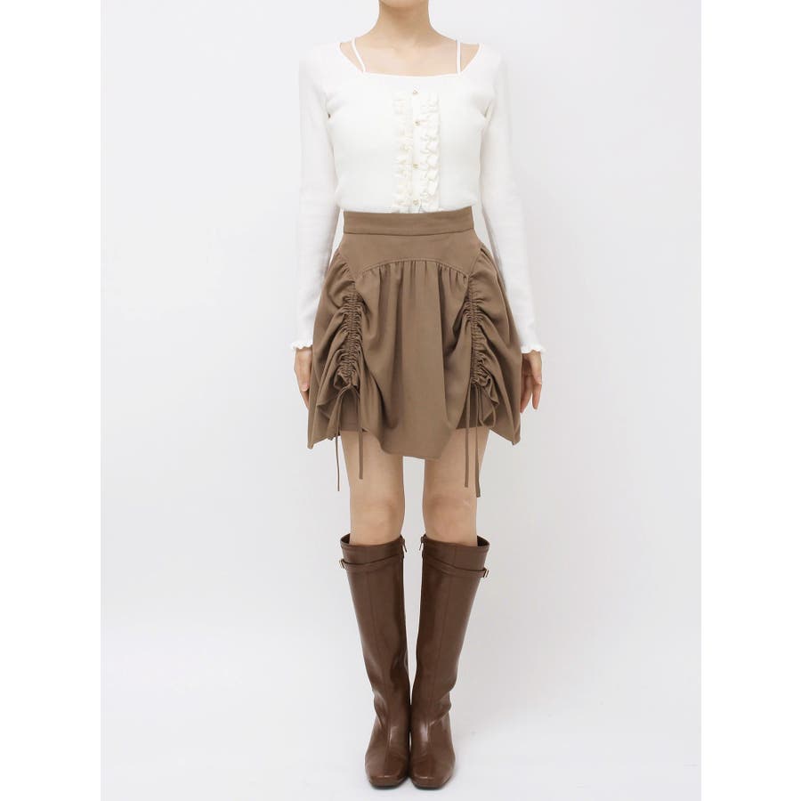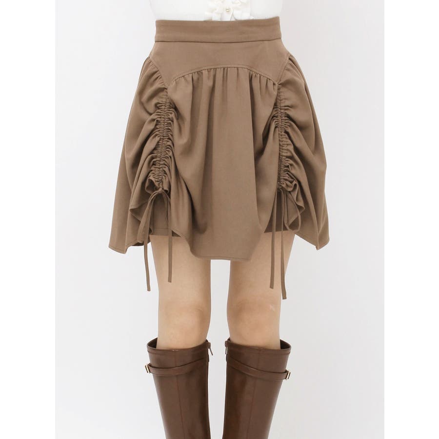 【商品】一着で二通りの表情を楽しめる2WAY仕様のギャザースカート。サイドのドロストを絞ることで、ボリュームたっぷりのミニバルーンスカートに変身。寄せずに着用すれば、自然なフレア感が美しいヘムラインのミディスカートとしても楽しめます。ハリ感のある素材が構築的なシルエットをキープし、スタイルに立体感をプラス。ウエストは太めの切替デザインで、腰位置が高く見えスタイルアップ効果も◎。【スタイリング】ミニバルーンで着る日は、コンパクトなトップスやショート丈ニットと合わせてメリハリのあるスタイルに。ロングブーツを合わせてモードに振るのもおすすめです。ミディスカートとして着用する際は、タックインシャツやカットソーで抜け感のあるシンプルコーデに仕上げると◎。その日の気分やシーンに合わせて自由に表情を変えられる、着回し力抜群の1枚です。※実際にお届けする商品と仕様やサイズが異なる場合がございます。 また生産の都合上、お届け時期が前後する場合がございます。【商品特徴】透け感:なし伸縮性:なし生地の厚さ:普通サイズ感:普通裏地:なしポケット:なし