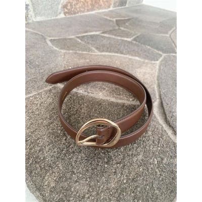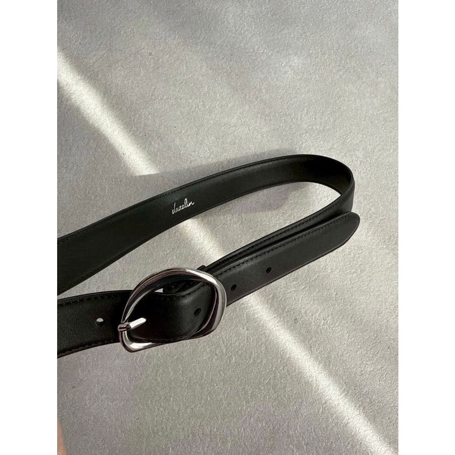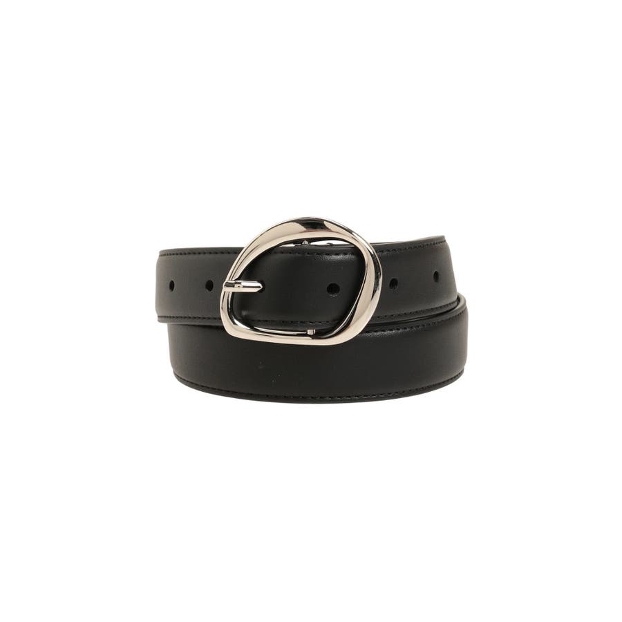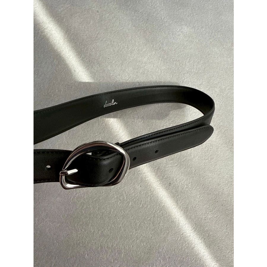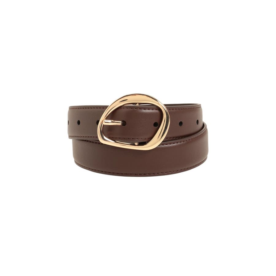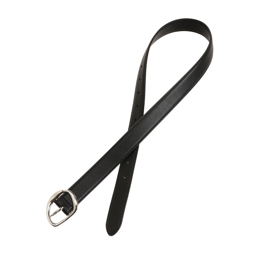 【商品】柔らかな曲線で描かれた、ニュアンスのあるゴールドバックルが目を引くレザーベルト。クラシカルながらもアーティな印象をプラスする独特なフォルムは、シンプルなスタイリングに上品なアクセントを添えてくれます。ベルト本体はしっかりとした厚みと程よい光沢感を持つフェイクレザーを採用し、高級感と耐久性を兼ね備えています。カラーはベーシックで合わせやすいブラックとダークブラウンの2色展開で、幅広いスタイリングに取り入れやすい汎用性の高い一本に仕上げました。【スタイリング】どんなスタイリングにも自然に馴染む本アイテムは、ウエストマークとしてワンピースに合わせれば、メリハリのある女性らしいシルエットを演出。スラックスやデニムのベルトループに通せば、程よいアクセントとしてスタイリングを上品に引き締めてくれます。ブラックはモードでシャープな印象に、ダークブラウンはナチュラルで柔らかな雰囲気に仕上がるので、シーズンや気分に合わせて色を使い分けるのもおすすめ。バックルのさりげないアシンメトリーデザインが、シンプルながらもこなれ感をプラスし、ワンランク上のベーシックアイテムとして活躍します。※実際にお届けする商品と仕様やサイズが異なる場合がございます。また生産の都合上、お届け時期が前後する場合がございます。
