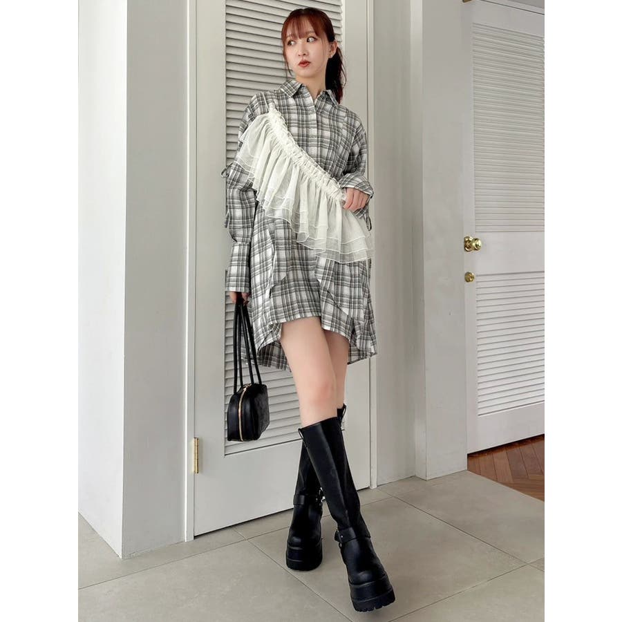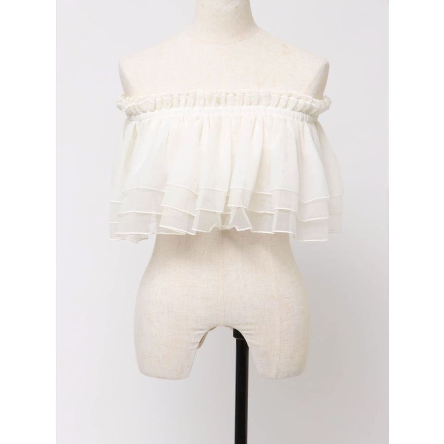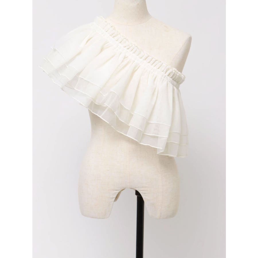 【商品】ボリューム感たっぷりのチュールフリルが印象的な、マルチウェイ仕様のアイテム。程よい透け感のあるチュール素材に微配色を効かせることで、甘さの中にも奥行きのあるニュアンスを演出しています。全体的にゴムを仕込むことで、身体にやさしくフィットし、着用する方のサイズやスタイリングに合わせて自在に巾の調整が可能です。また、スカート・チューブトップ・ネックフリル・ワンショルダーなど、多様な着こなしが叶う4WAY仕様となっており、スタイリングの幅が大きく広がります。【スタイリング】シンプルなインナーやボトムスと合わせてレイヤードスタイリングがおすすめ。スカートとして着用する際は、タイトなトップスをインしてウエストのフリルを際立たせれば、バランスの良い甘辛MIXスタイルが完成します。チューブトップとしての着こなしでは、デニムやカーゴパンツといったカジュアルなボトムスを合わせて、フェミニンとラフの絶妙なミックス感を楽しんで。さらに、首に巻いたり肩掛けで使えば、レイヤードのアクセントとしてコーディネートを一気に格上げしてくれます。ワンショルダーとして取り入れると、アーティスティックで他にないユニークな表情が際立ち、イベントや撮影などでも映える一着です。※実際にお届けする商品と仕様やサイズが異なる場合がございます。また生産の都合上、お届け時期が前後する場合がございます。