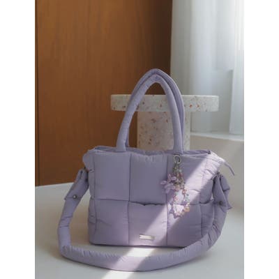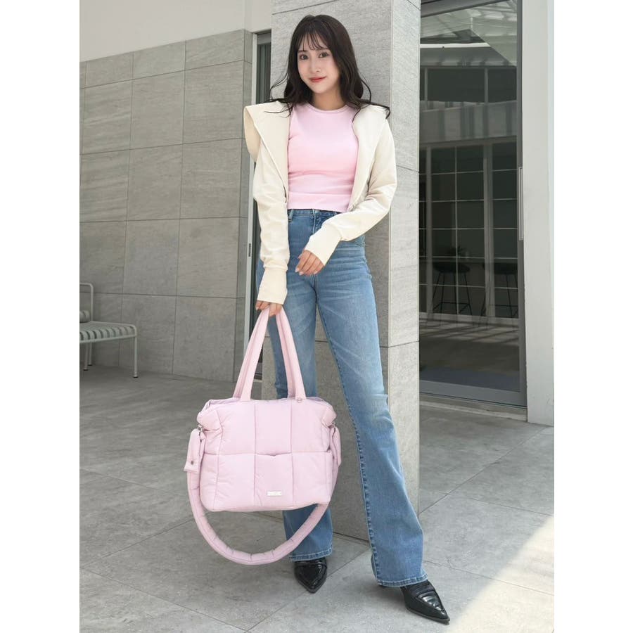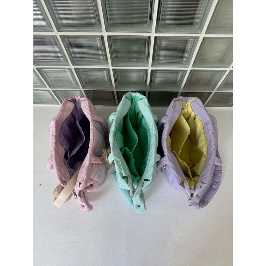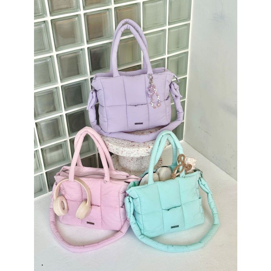 - 吉田朱里 supportted by dazzlin - akarin made.w/dazzlin アイテム第1弾 7.18 fri 12:00 PREORDER START! >>特設ページはこちら<<【アイテム】ふんわりとしたマシュマロのようなフォルムが魅力のキルティングバッグ。やわらかくて軽い素材感で、肩にかけても手持ちでもストレスフリーな使い心地を実現。大きすぎず小さすぎない絶妙なサイズ感で、デイリーユースはもちろん、ジムバッグやマザーズバッグとしてもマルチに活躍します。カラーは、見るだけで気分が上がるようなコンビ配色で、スタイリングのアクセントにも。持っているだけで季節感やトレンドをプラスできる、旬なアイテムです。【スタイリング】シンプルなワンツーコーデに合わせて、バッグを主役にしたPOPなスタイルがおすすめ。カラーリンクでスニーカーやキャップと合わせれば、統一感のあるフェミニンカジュアルに。甘めコーデにはパステルやホワイト系と合わせて、やさしいトーンでまとめるのが◎。秋冬にはボアアウターやニットと合わせた素材MIXで、さらにこなれ感アップ。■dazzlin'S STAFF コメントネーミングの通り、マシュマロのような柔らかい触り心地と、可愛らしいカラーリングで見ているだけでテンションが上がります!500mlのペットボトルを立ててもすっぽり入るサイズ感、中の仕切りも使いやすいです◎底があるので自立する点や、ファスナーで開閉する点など、『ありそうでなかった』を全て叶えてくれているトートバッグです!---------------------------------------------------- 気になるアイテムはお気に入り登録がおすすめ 入荷情報やラスト1点、お得なプライスダウンの情報をいち早くお届け! ぜひご登録ください◎ ---------------------------------------------------- ※実際にお届けする商品と仕様やサイズが異なる場合がございます。 また生産の都合上、お届け時期が前後する場合がございます。 ※2025年10月下旬出荷分につきましては、 パープルの裏地(イエロー)のカラーが初回生産分よりやや薄めとなります。