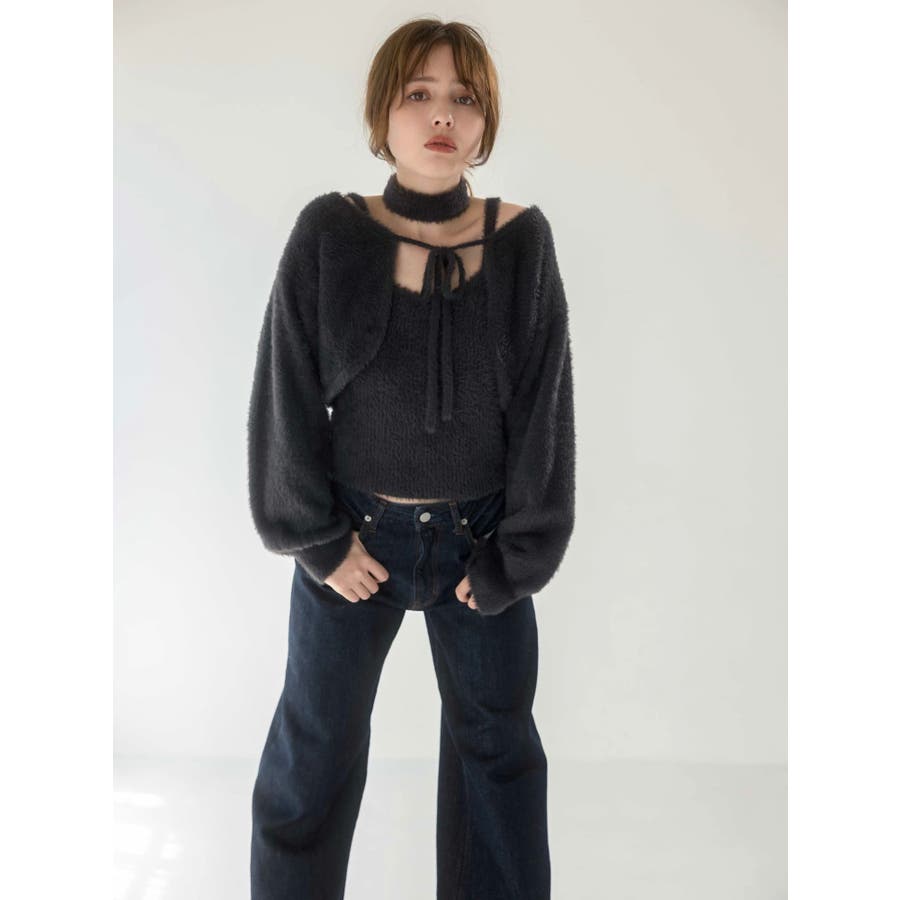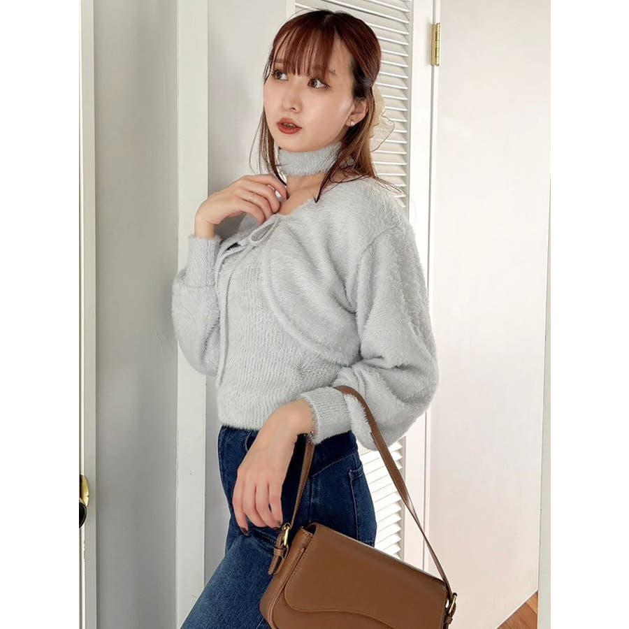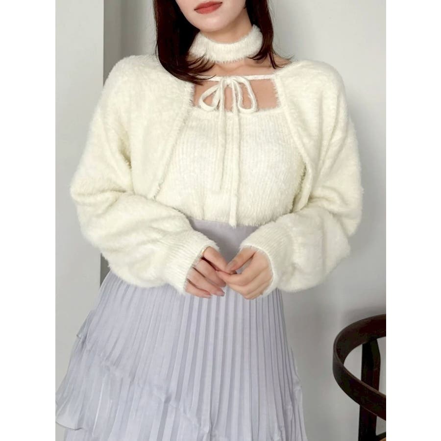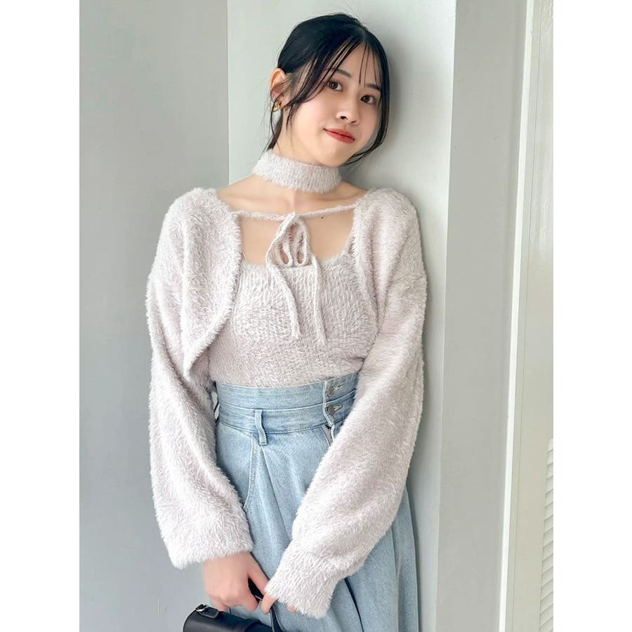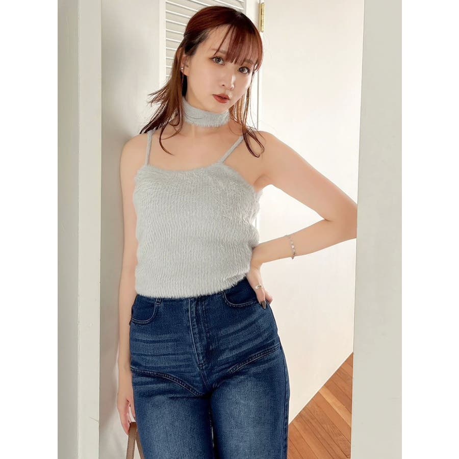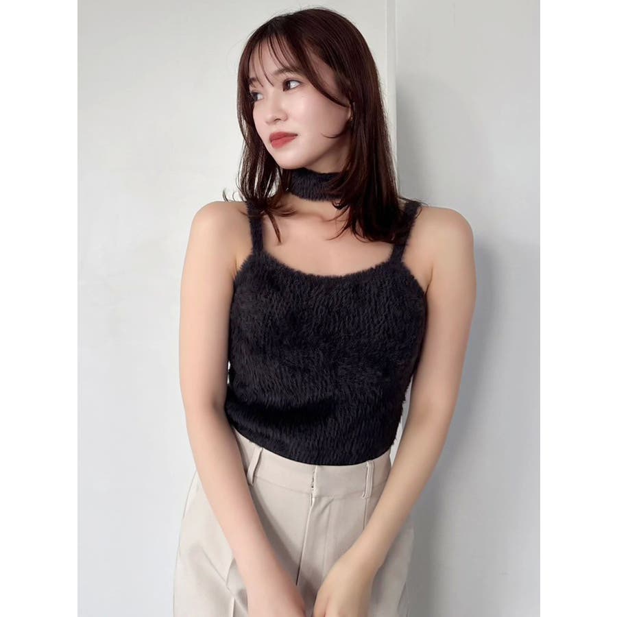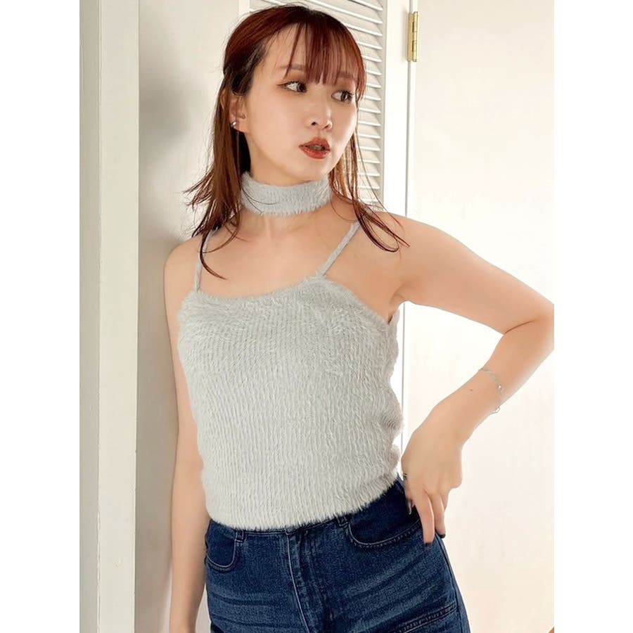 チョーカー付ミニシャギーニットキャミソール