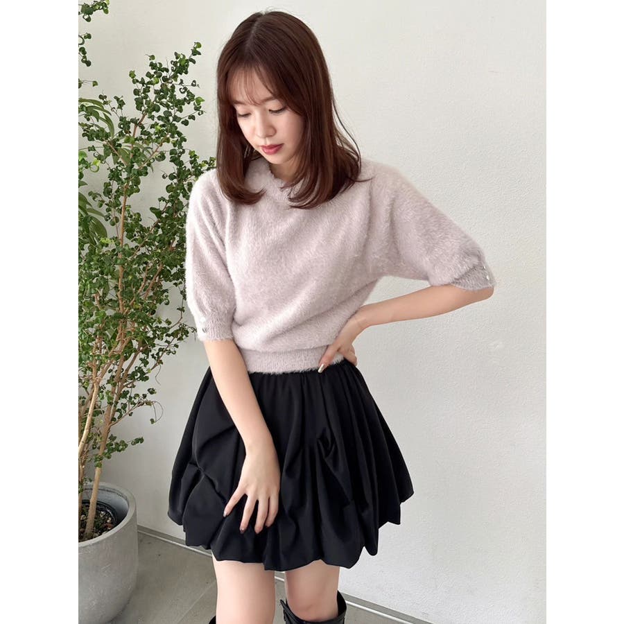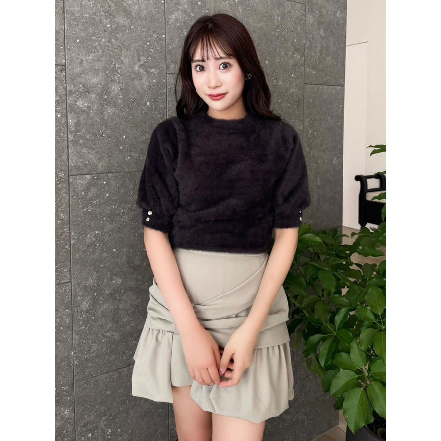 2wayシャギーハーフスリーブトップス