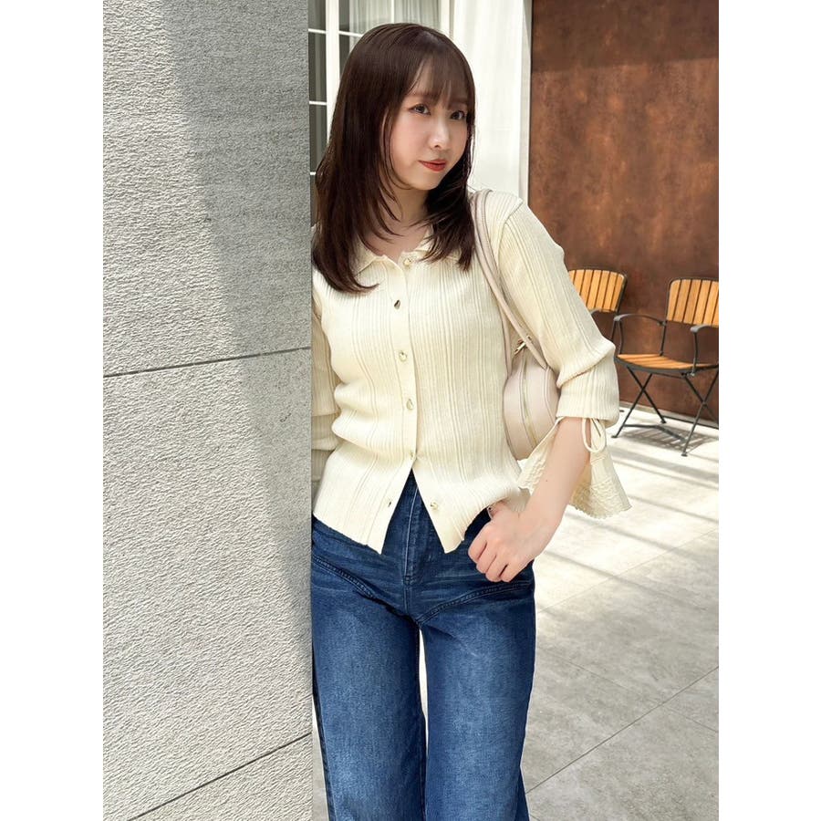 【商品】袖に施されたアイレットデザインが、抜け感と女性らしさを演出してくれる一枚。柔らかなニット素材で着心地も抜群。ランダムリブの編み柄で遊び心をプラス。コンパクトなシルエットが、ハイウエストボトムやスカートとの相性◎INOUT自在にスタイリング可能なので、抜け感も与えてくれます。【スタイリング】フレアデニムと合わせると、こなれ感のある大人カジュアルに。ボリュームスカートと合わせると、デートにもぴったりな甘めスタイルが完成?足元はパンプスで上品に、スニーカーでラフにと、シーンに合わせてアレンジを楽しめます。一枚で着映えするので、アクセはミニマルにまとめるのが◎※実際にお届けする商品と仕様やサイズが異なる場合がございます。また生産の都合上、お届け時期が前後する場合がございます。