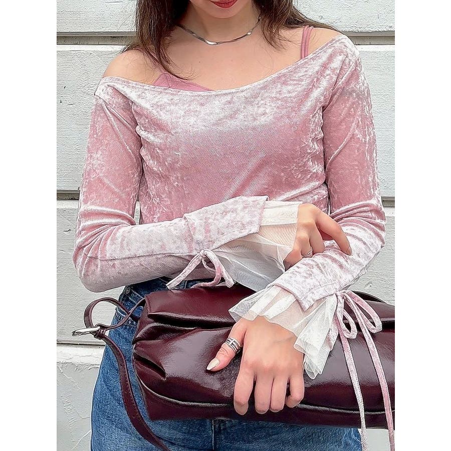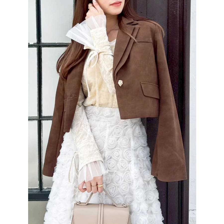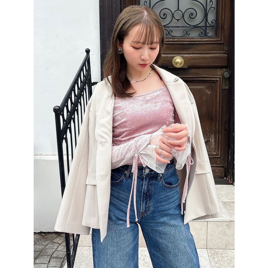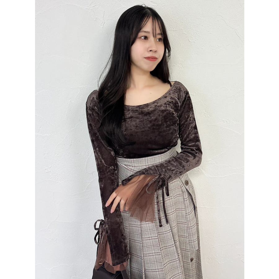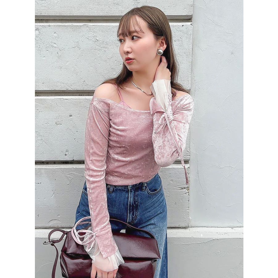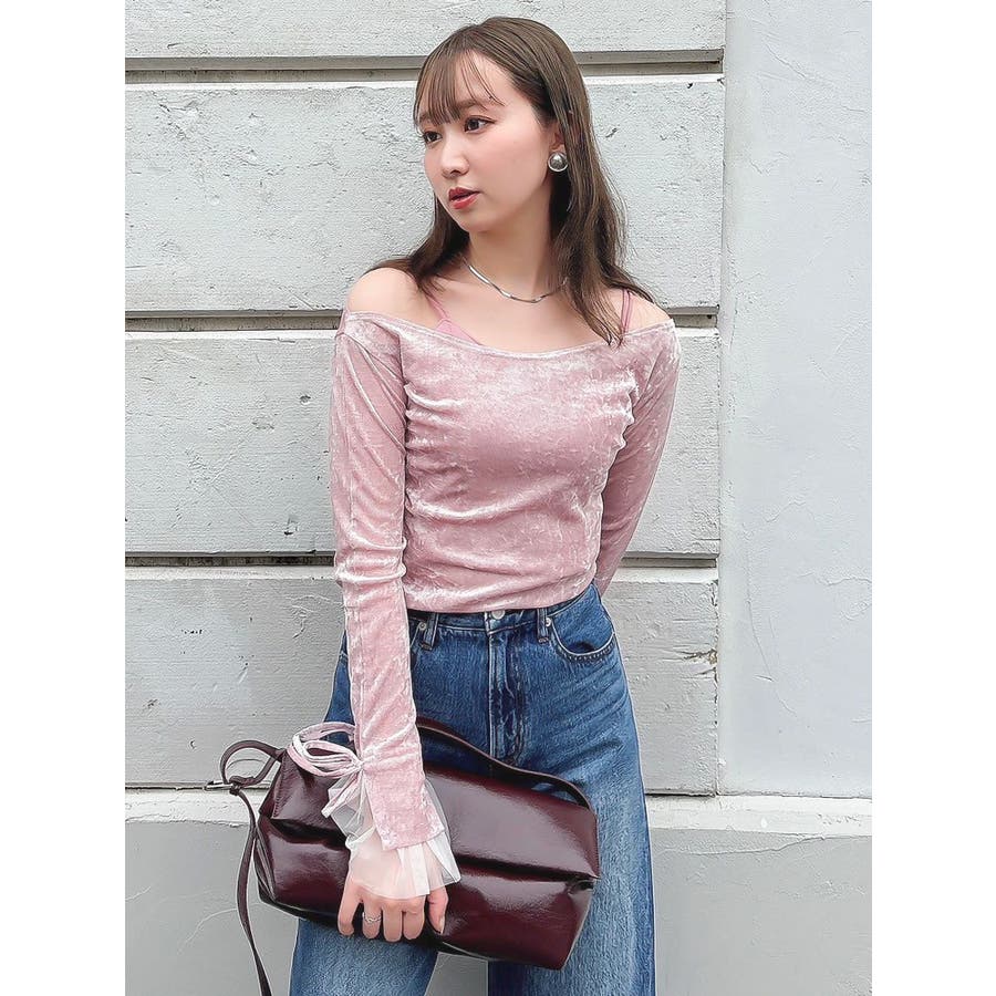 F: バスト[トップス]86~[ビスチェ]一部ゴム仕様:80~104cm/着丈[トップス]50cm/袖丈[トップス]57cm/肩幅[トップス]38~cm/総丈[ビスチェ]26cm/計量約228g