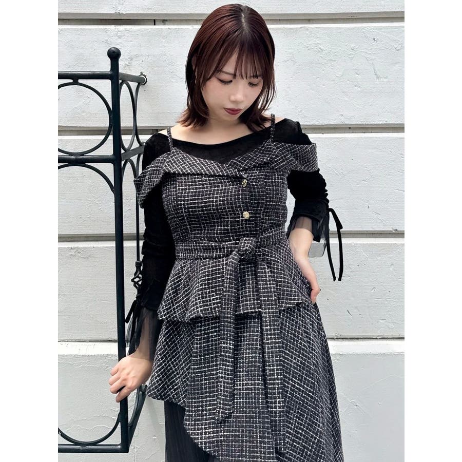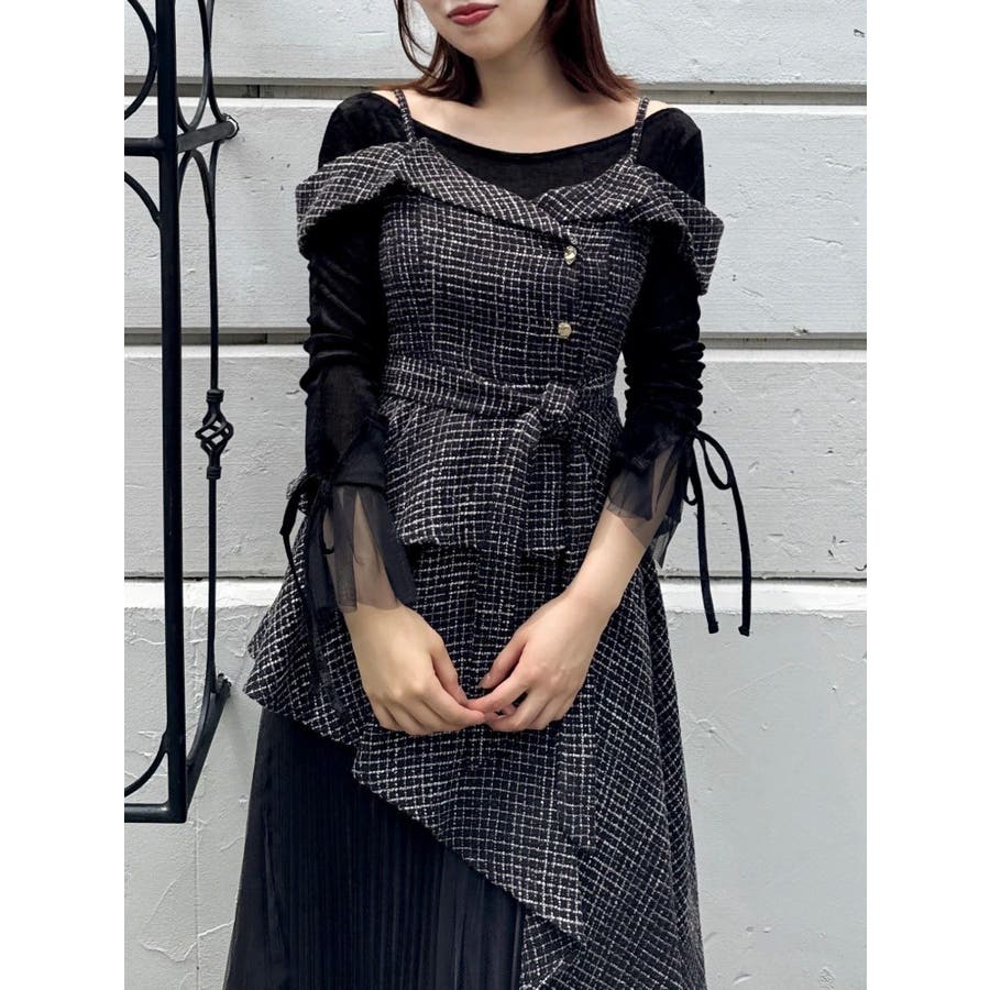 | 素材 | [トップス]本体:ポリエステル92% ポリウレタン8% 別布:ポリエステル100%[ビスチェ]表地:ポリエステル48% 綿46% ポリウレタン6% |