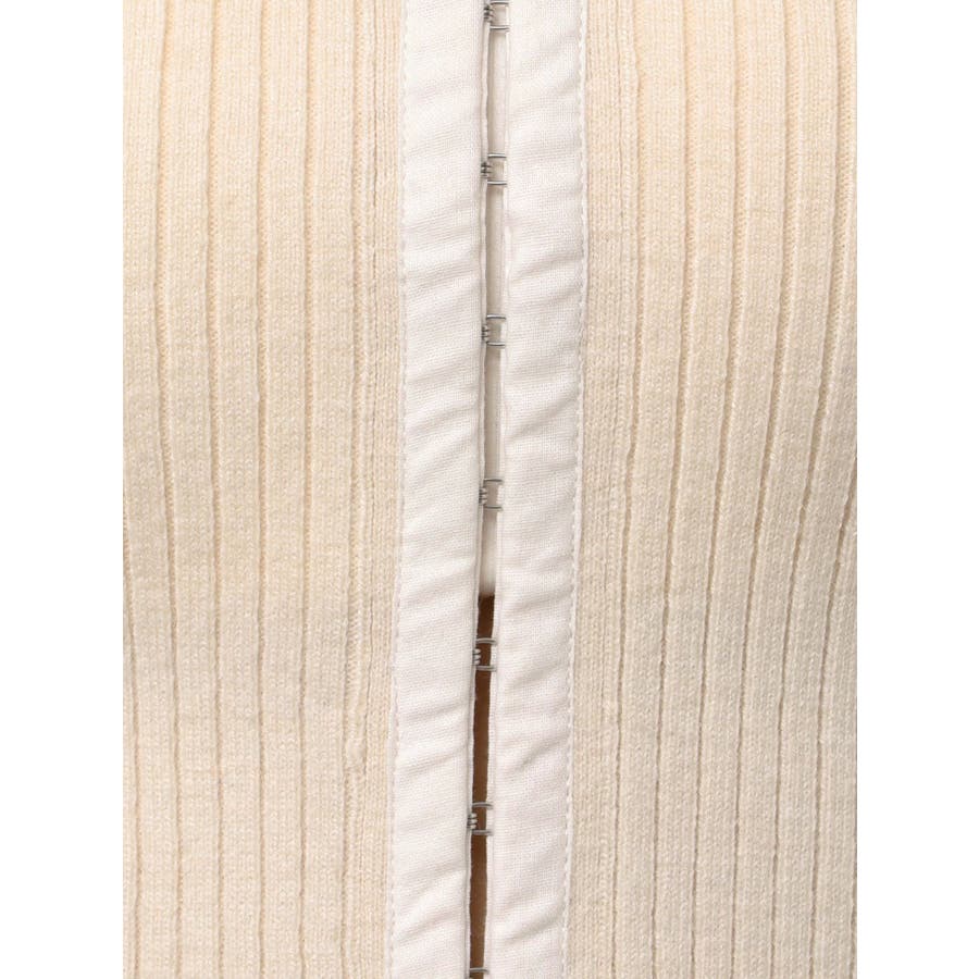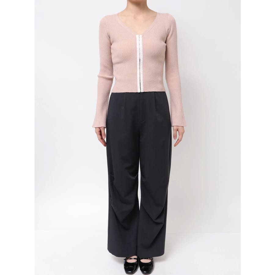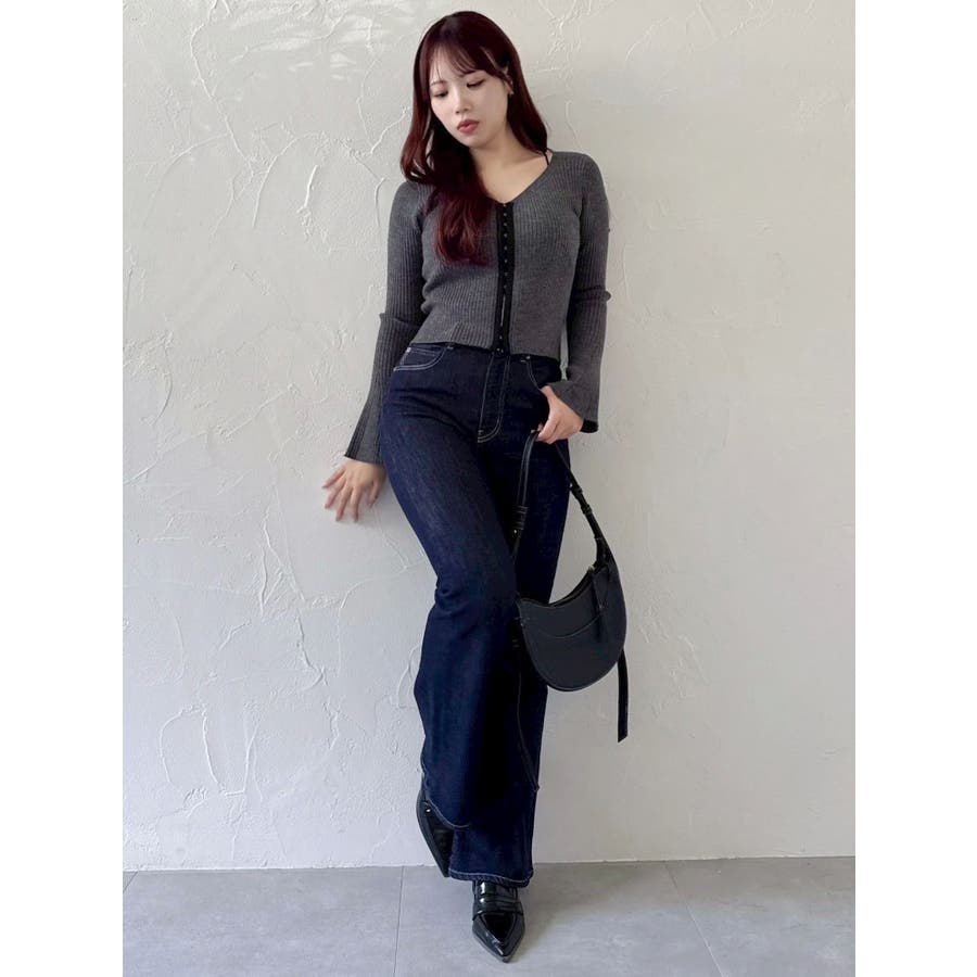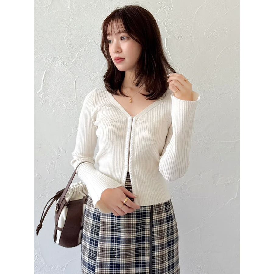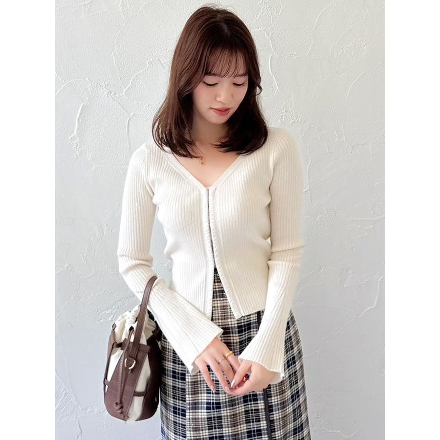 【商品】フロントにホックディテールをドッキングすることで古着ライクなエッジを効かせたニットカーデトップス。ハートネックライクな衿ぐりにウエストをフィットさせ、コルセット調のシルエットで女性らしく仕上げました。【スタイリング】インナーは、シャツやブラウスをレイヤードさせて軽やかに見せるのが今季ポイント。裾はアウトでホックを開けて、アンニュイに、こなれ感のあるスタイリングがおすすめです。※実際にお届けする商品と仕様やサイズが異なる場合がございます。また生産の都合上、お届け時期が前後する場合がございます。【商品特徴】透け感:なし伸縮性:あり生地の厚さ:普通サイズ感:普通裏地:なしポケット:なし