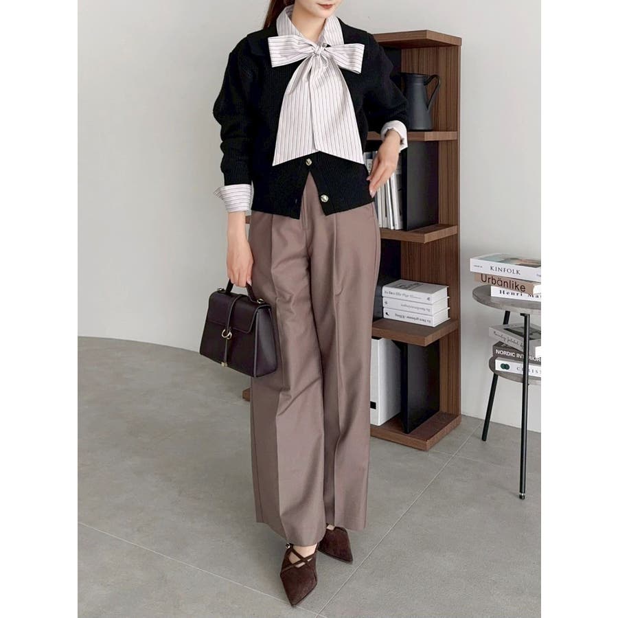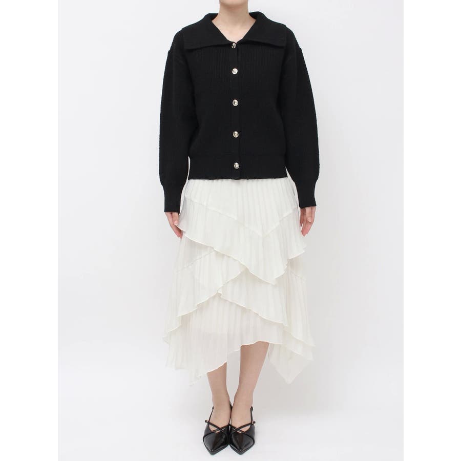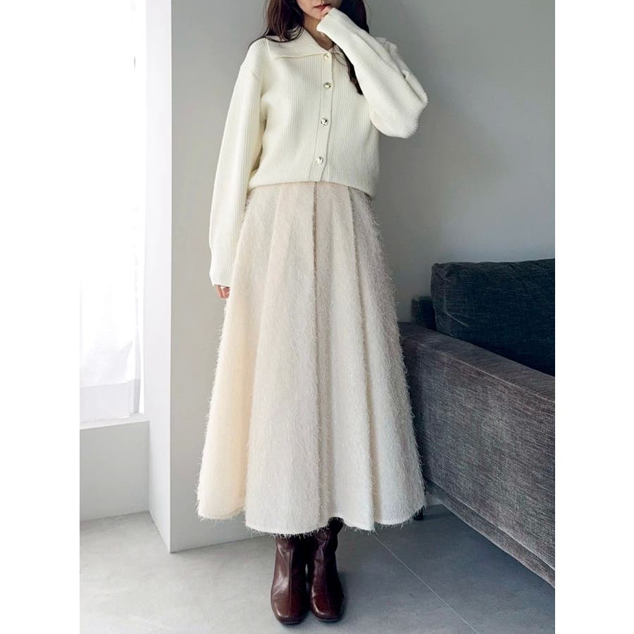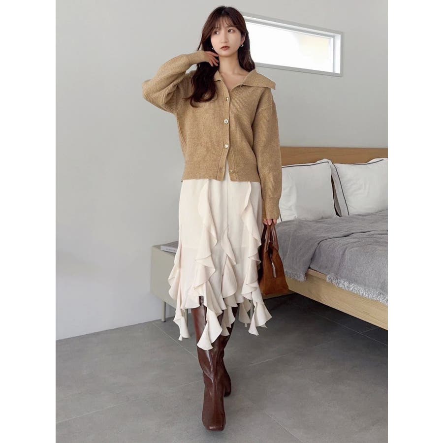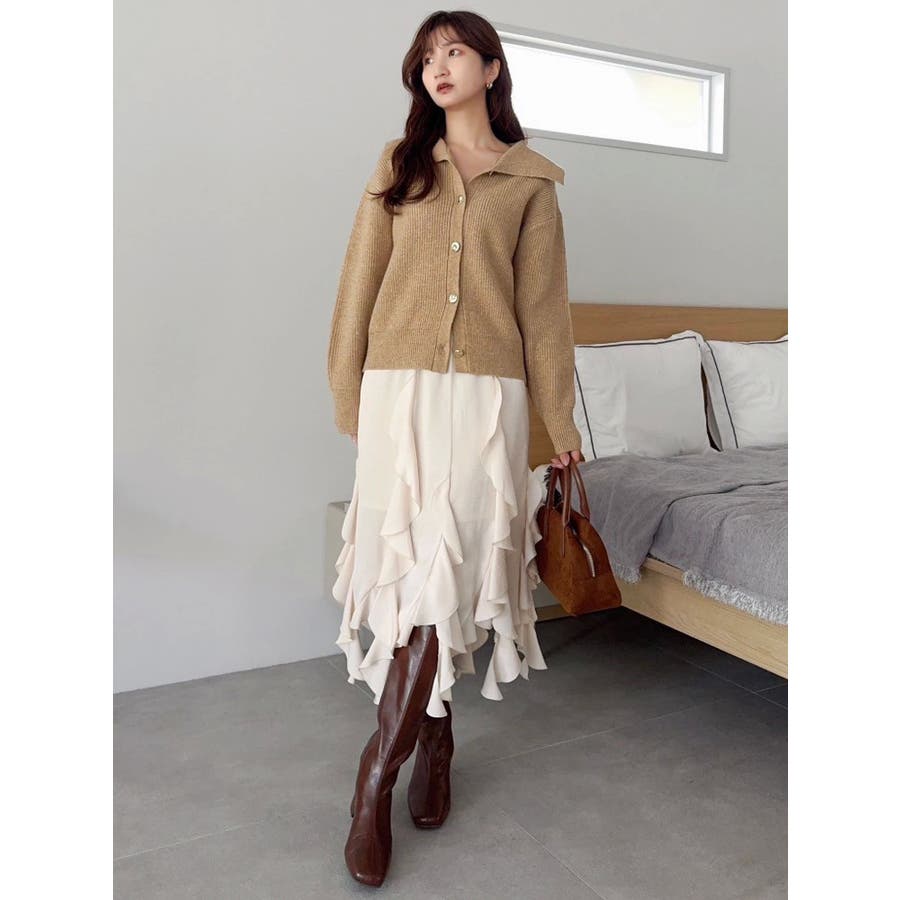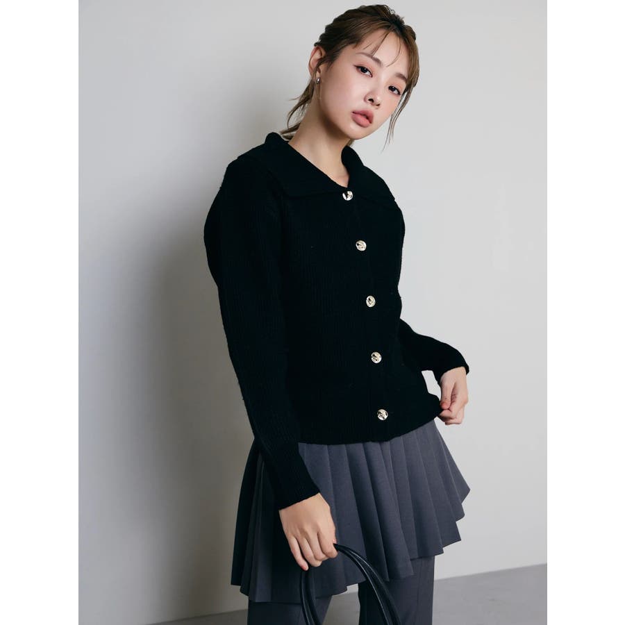 【商品】トレンド感溢れるビッグカラーが目を惹くニットカーディガン。柔らかな起毛感ある糸で着心地も抜群。程よい厚みがあり、ロングシーズン活躍します。小顔効果も高く、シンプルながらも存在感のある一枚。袖口と裾にはリブを施し、シルエットにメリハリを持たせています。【スタイリング】1枚で主役級のデザインなので、ボトムはシンプルにまとめるのがおすすめ。デニムと合わせてカジュアルダウンすれば、甘すぎない大人フェミニンスタイルに。ミニスカートやワイドパンツと合わせれば、トレンド感のあるバランスコーデが完成。羽織りとしても、トップスとしても使える万能アイテムで、着回し力も抜群です。※実際にお届けする商品と仕様やサイズが異なる場合がございます。 また生産の都合上、お届け時期が前後する場合がございます。【商品特徴】透け感:なし伸縮性:あり生地の厚さ:普通サイズ感:普通裏地:なしポケット:なし