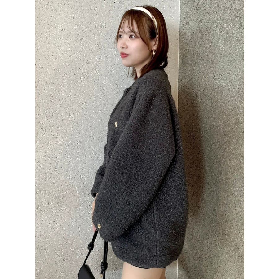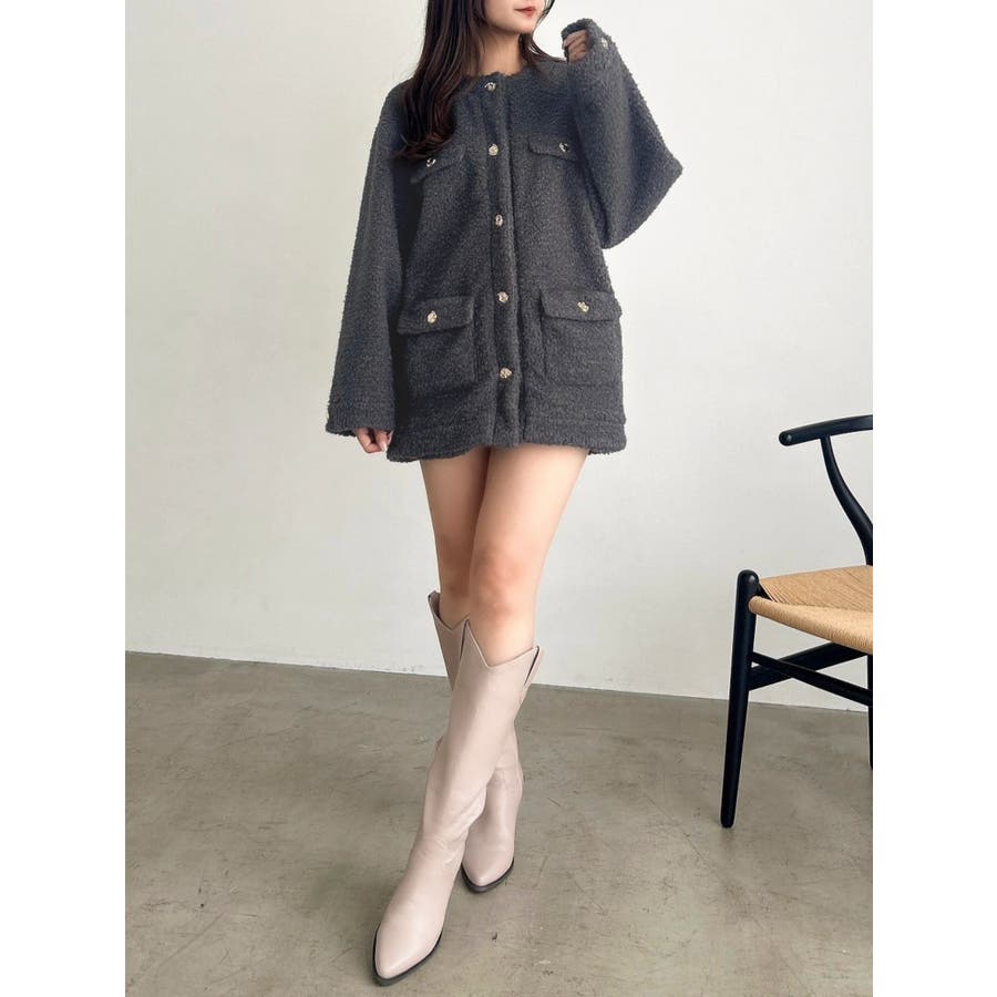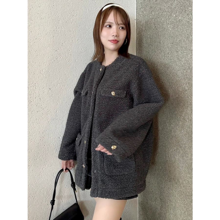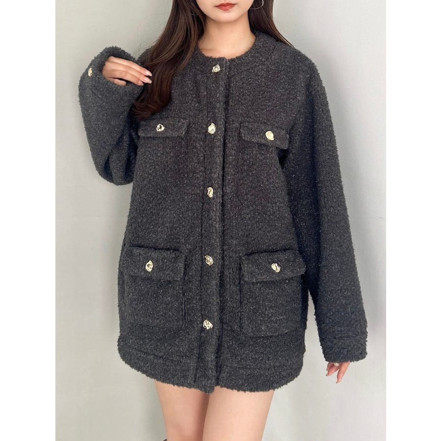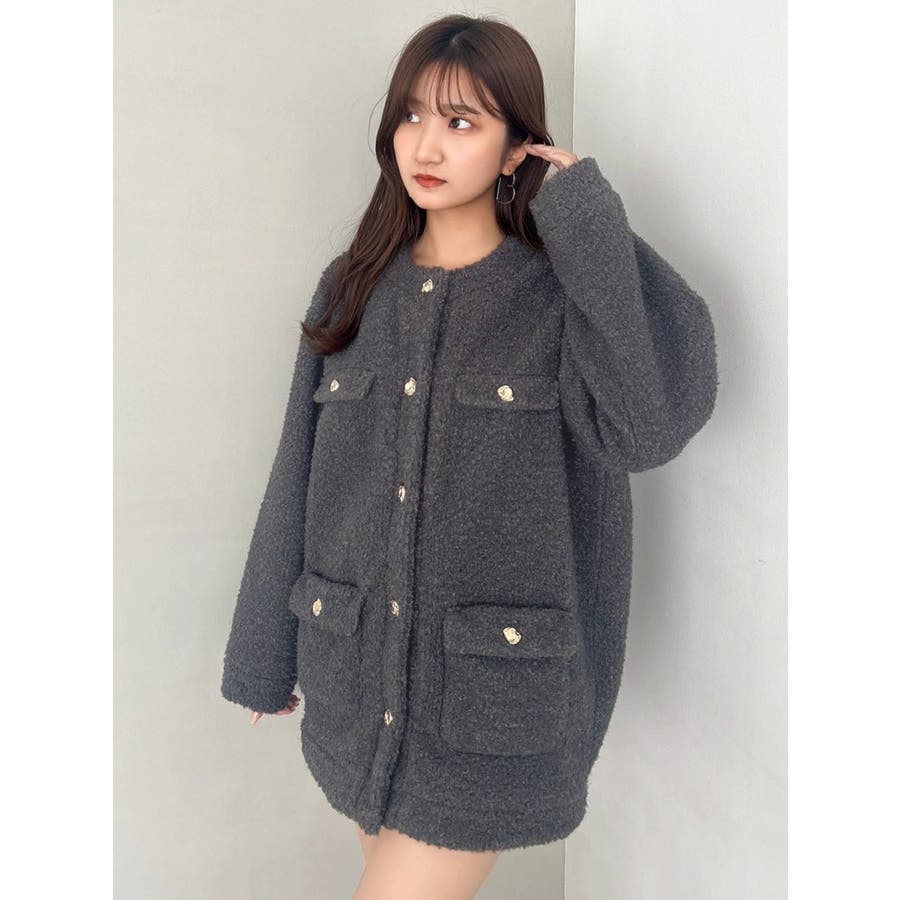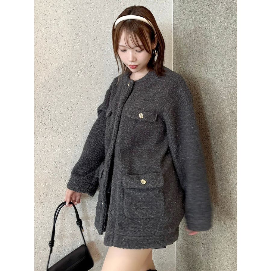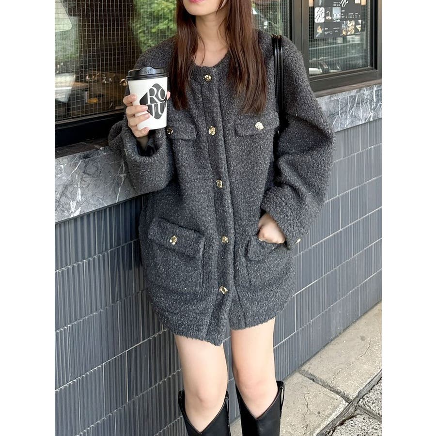 【商品】ヴィンテージライクなメタルボタンがアクセントになり、甘さの中に程よいスパイスをプラス。ゆったりとしたサイズ感で、インナーに厚手のニットを合わせてももたつかず着こなせます。フロントを閉じてTOPS風に着ても、羽織としても使える2WAY仕様が嬉しいポイントです。ボリューム感のあるフォルムながら、軽やかな着心地で着膨れしにくい設計。肩の落ち感が抜け感を演出し、骨格問わず華奢見えが叶うシルエット。腰までしっかり隠れる丈感で、体型カバーにも効果的です。※実際にお届けする商品と仕様やサイズが異なる場合がございます。また生産の都合上、お届け時期が前後する場合がございます。【商品特徴】透け感:なし伸縮性:なし生地の厚さ:厚手サイズ感:ゆったり裏地:ありポケット:あり(前)