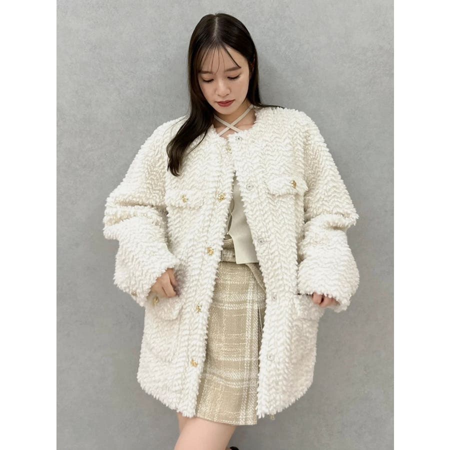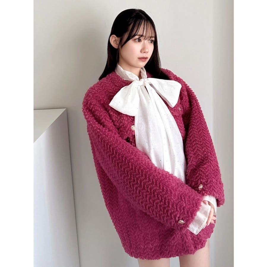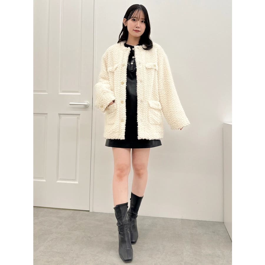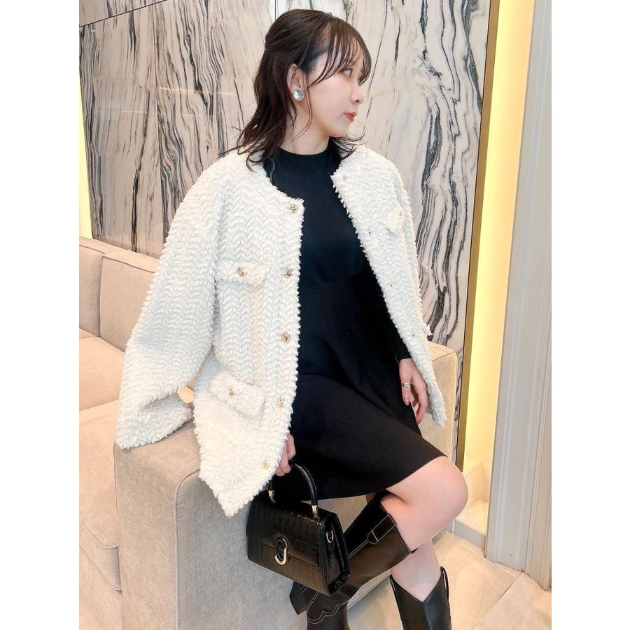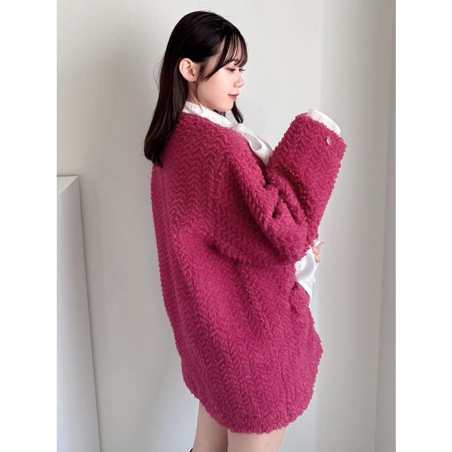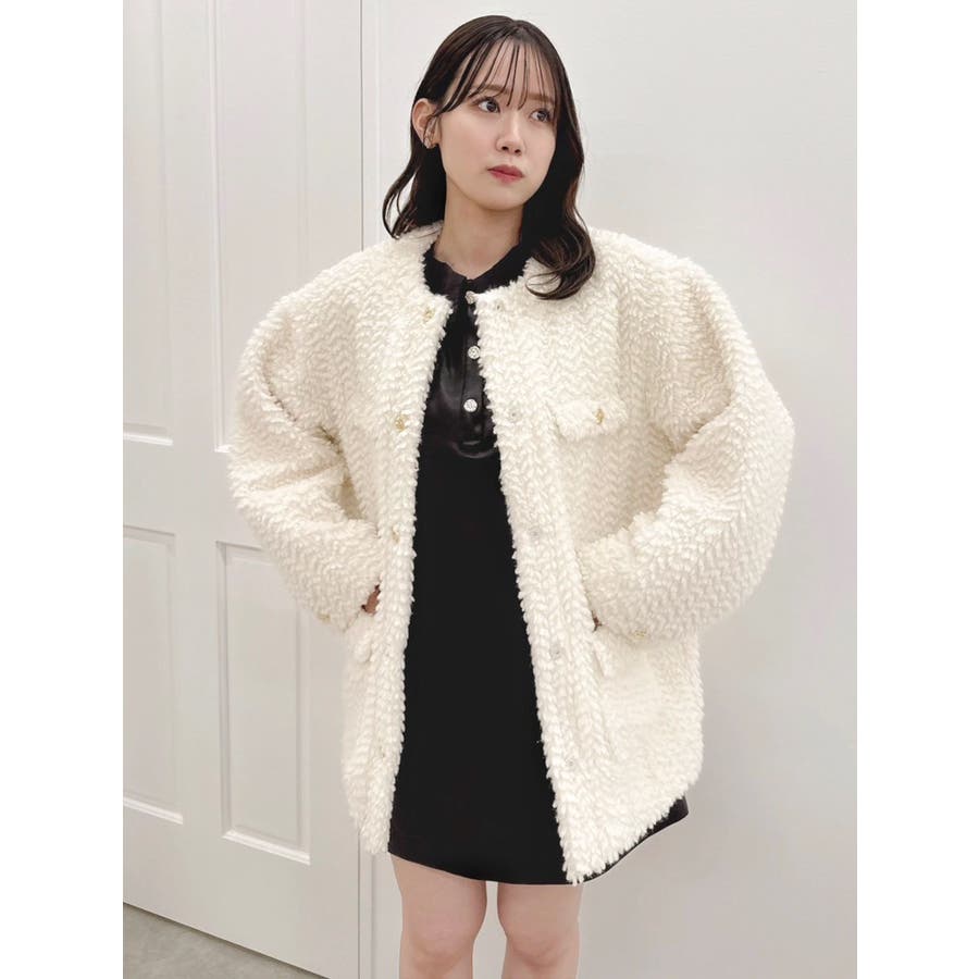 【商品】ヴィンテージライクなメタルボタンがアクセントになり、甘さの中に程よいスパイスをプラス。ゆったりとしたサイズ感で、インナーに厚手のニットを合わせてももたつかず着こなせます。フロントを閉じてTOPS風に着ても、羽織としても使える2WAY仕様が嬉しいポイントです。ボリューム感のあるフォルムながら、軽やかな着心地で着膨れしにくい設計。肩の落ち感が抜け感を演出し、骨格問わず華奢見えが叶うシルエット。腰までしっかり隠れる丈感で、体型カバーにも効果的です。※実際にお届けする商品と仕様やサイズが異なる場合がございます。また生産の都合上、お届け時期が前後する場合がございます。【商品特徴】透け感:なし伸縮性:なし生地の厚さ:厚手サイズ感:ゆったり裏地:ありポケット:あり(前)