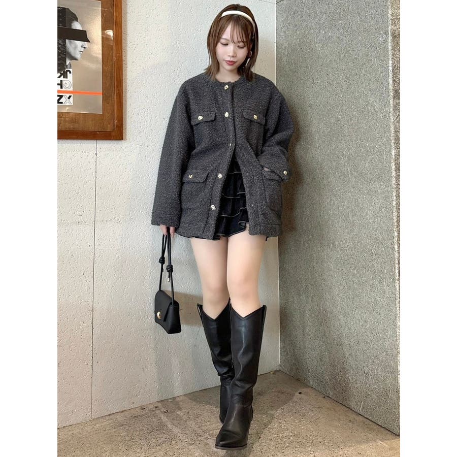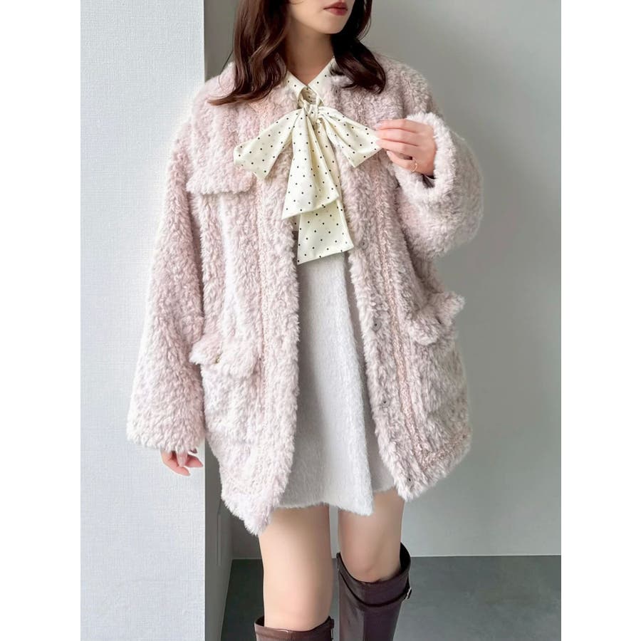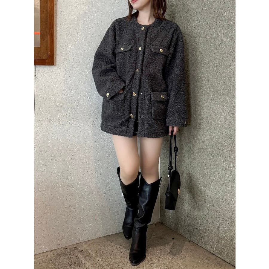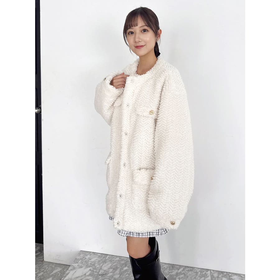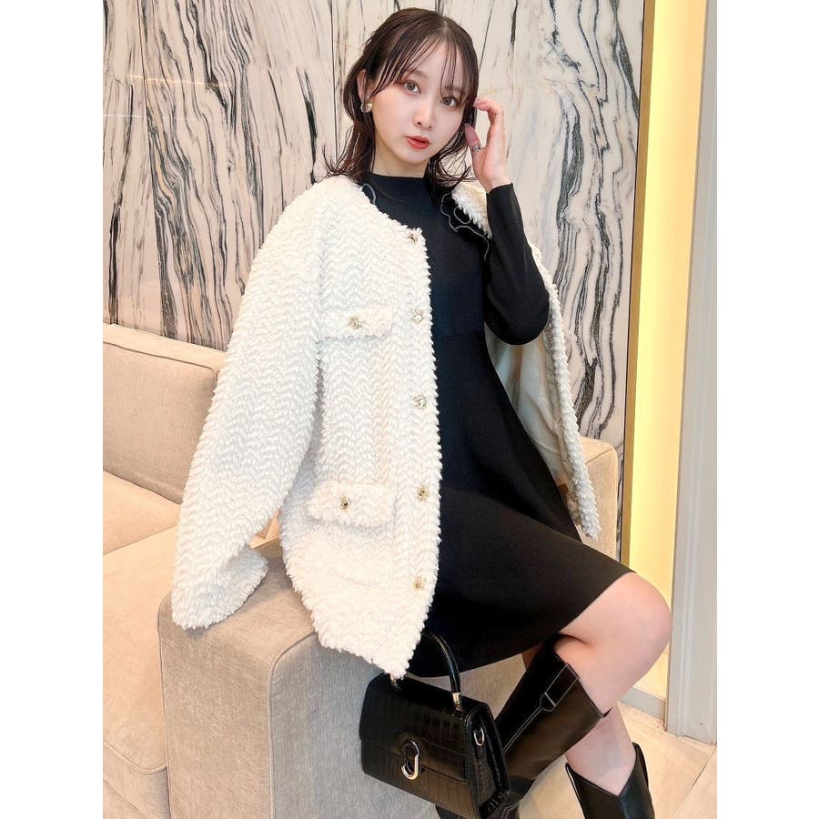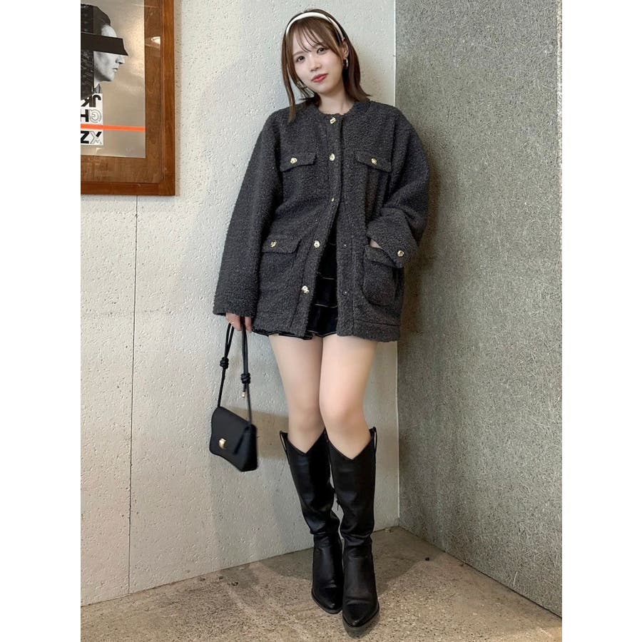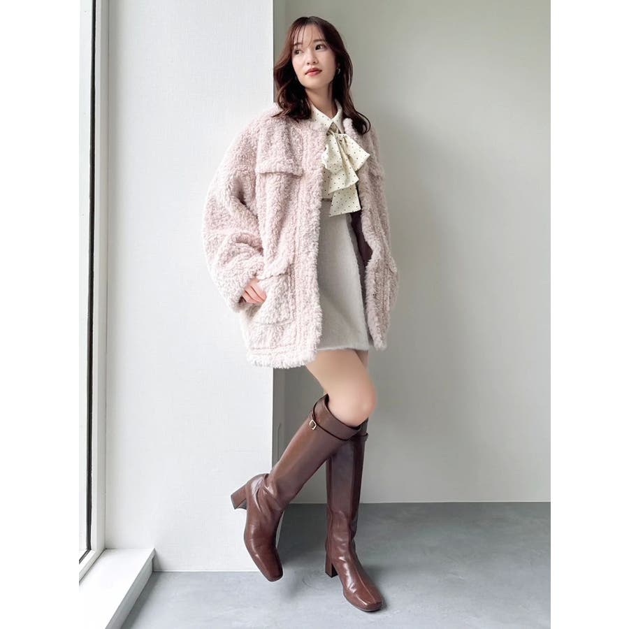 【商品】ヴィンテージライクなメタルボタンがアクセントになり、甘さの中に程よいスパイスをプラス。ゆったりとしたサイズ感で、インナーに厚手のニットを合わせてももたつかず着こなせます。フロントを閉じてTOPS風に着ても、羽織としても使える2WAY仕様が嬉しいポイントです。ボリューム感のあるフォルムながら、軽やかな着心地で着膨れしにくい設計。肩の落ち感が抜け感を演出し、骨格問わず華奢見えが叶うシルエット。腰までしっかり隠れる丈感で、体型カバーにも効果的です。※実際にお届けする商品と仕様やサイズが異なる場合がございます。また生産の都合上、お届け時期が前後する場合がございます。【商品特徴】透け感:なし伸縮性:なし生地の厚さ:厚手サイズ感:ゆったり裏地:ありポケット:あり(前)