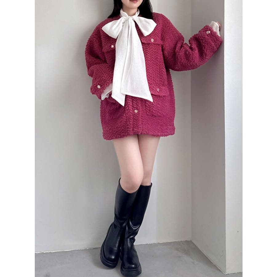 | 素材 | 表地 基布:ポリエステル100% ボア部分:ポリエステル100% 裏地:ポリエステル100% |