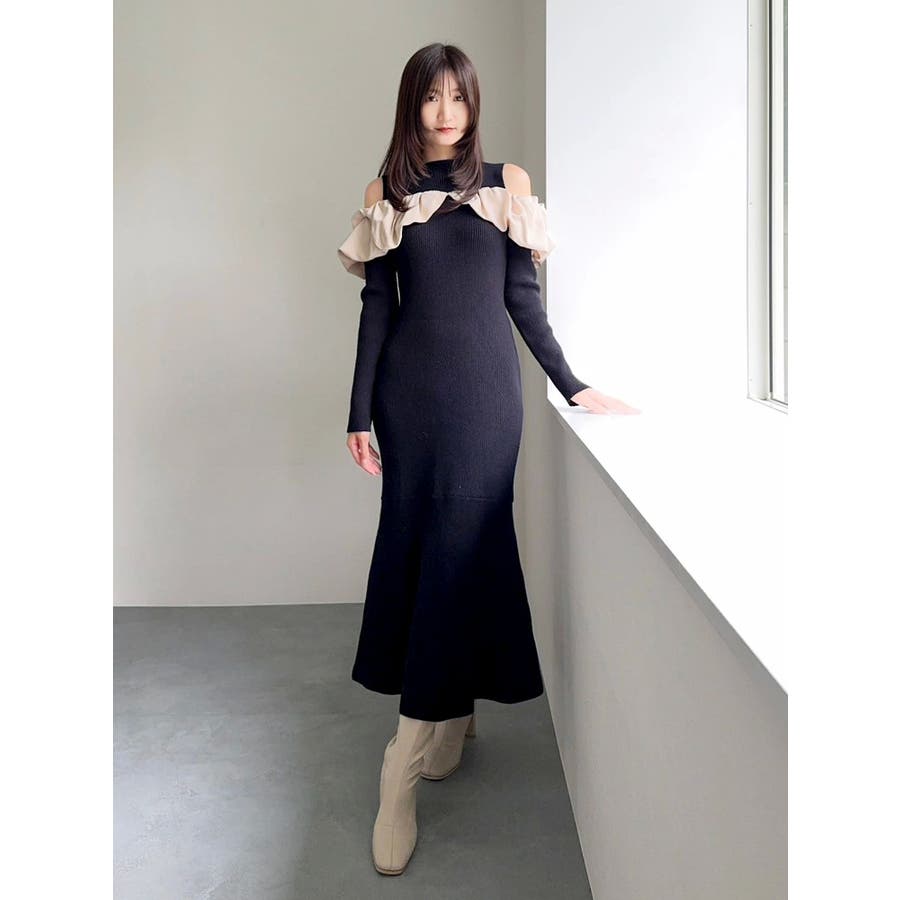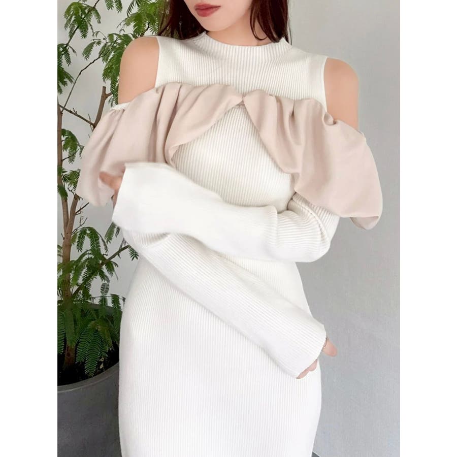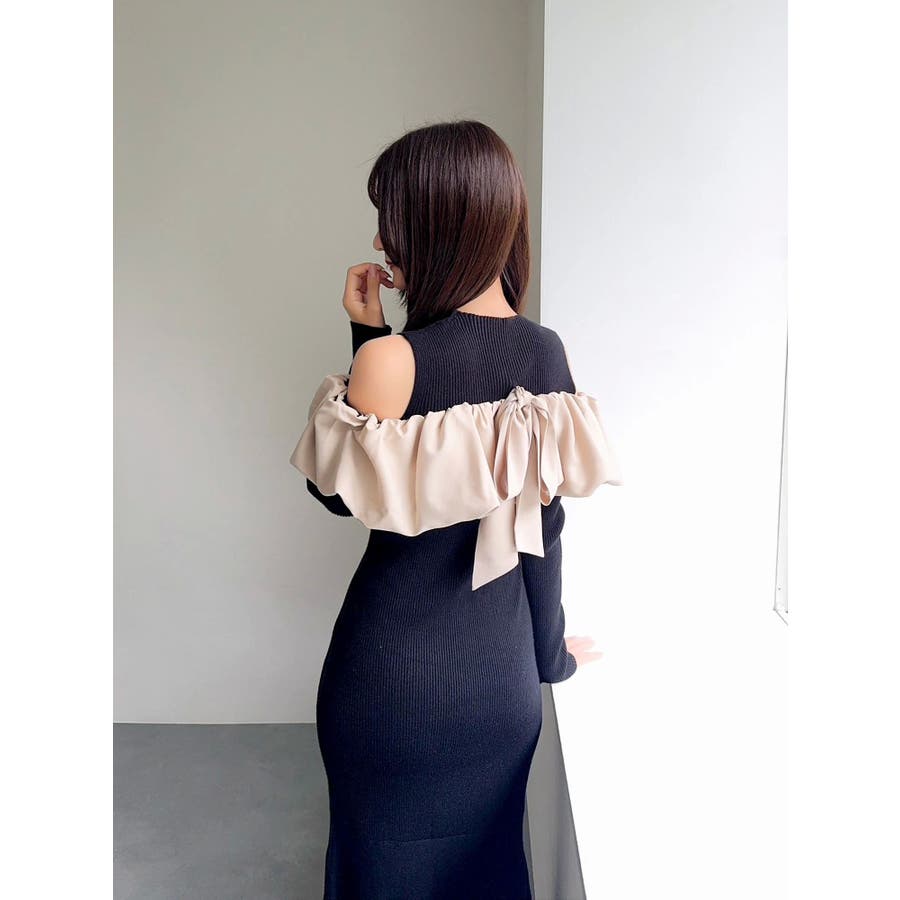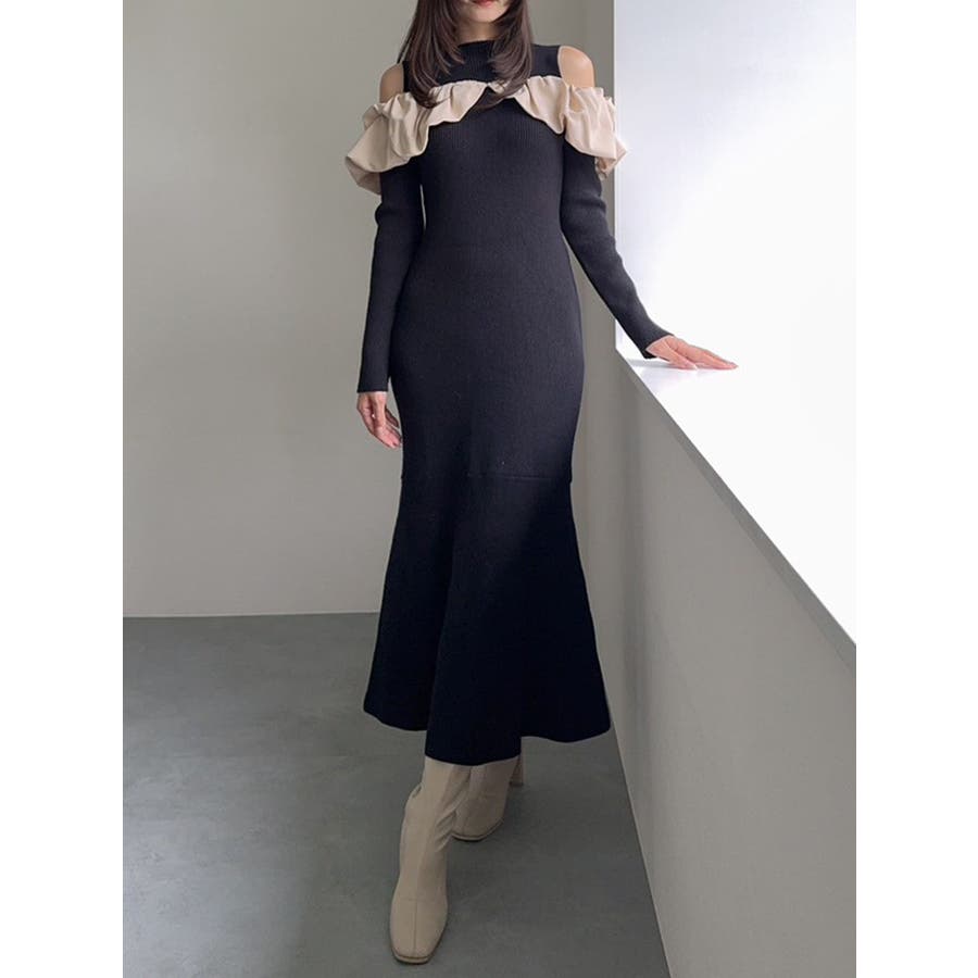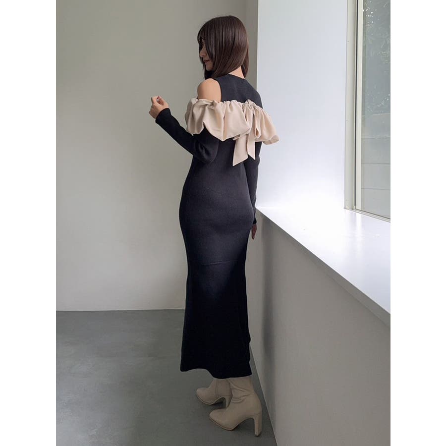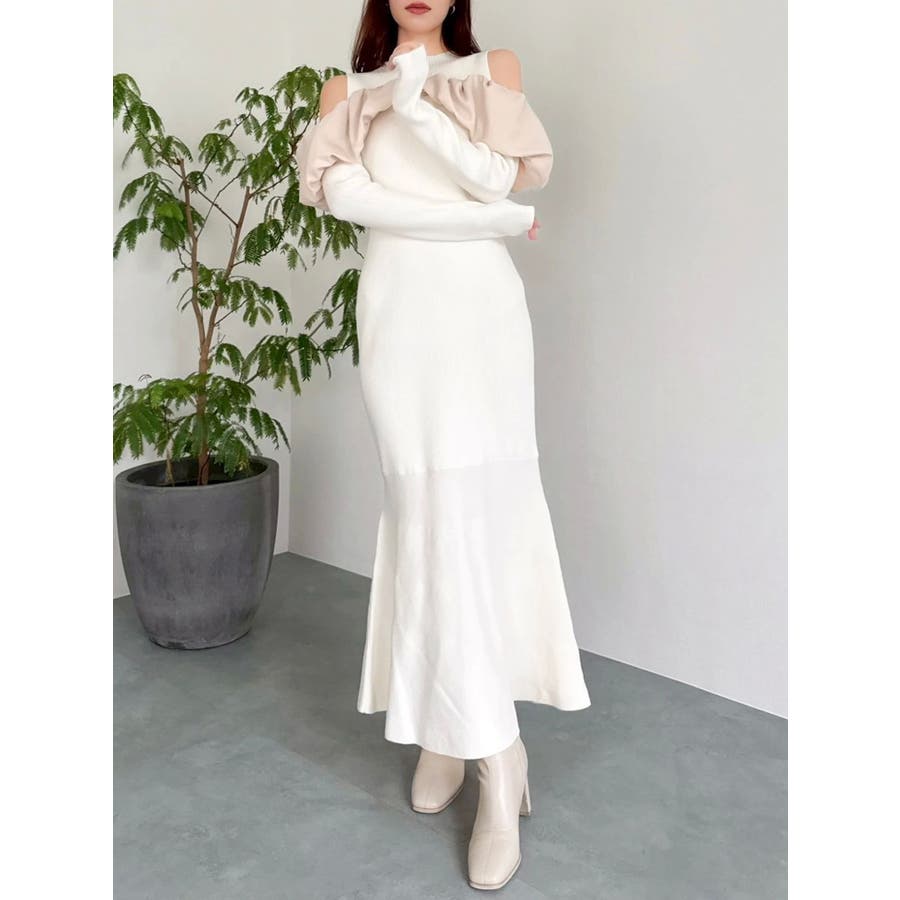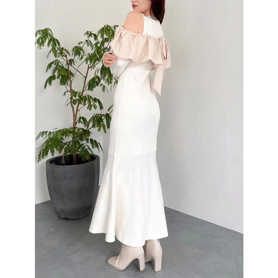ドッキングバルーンネックニットワンピース