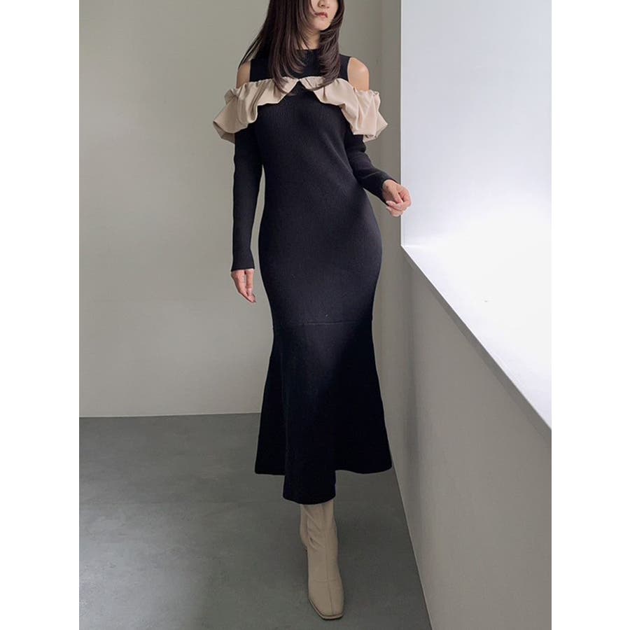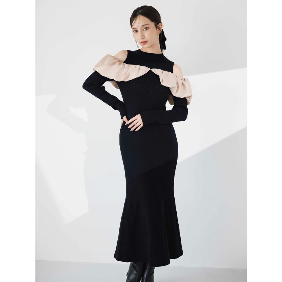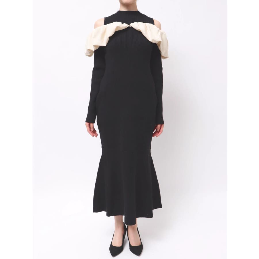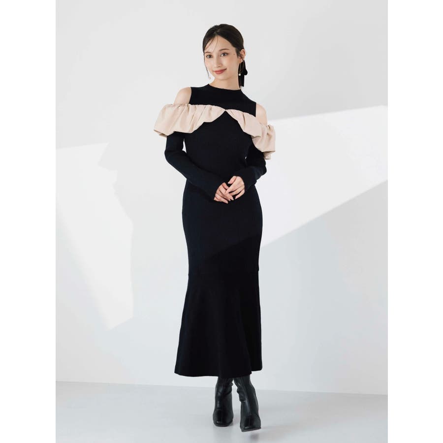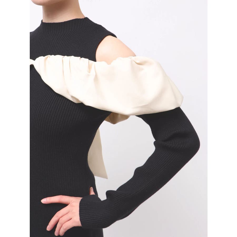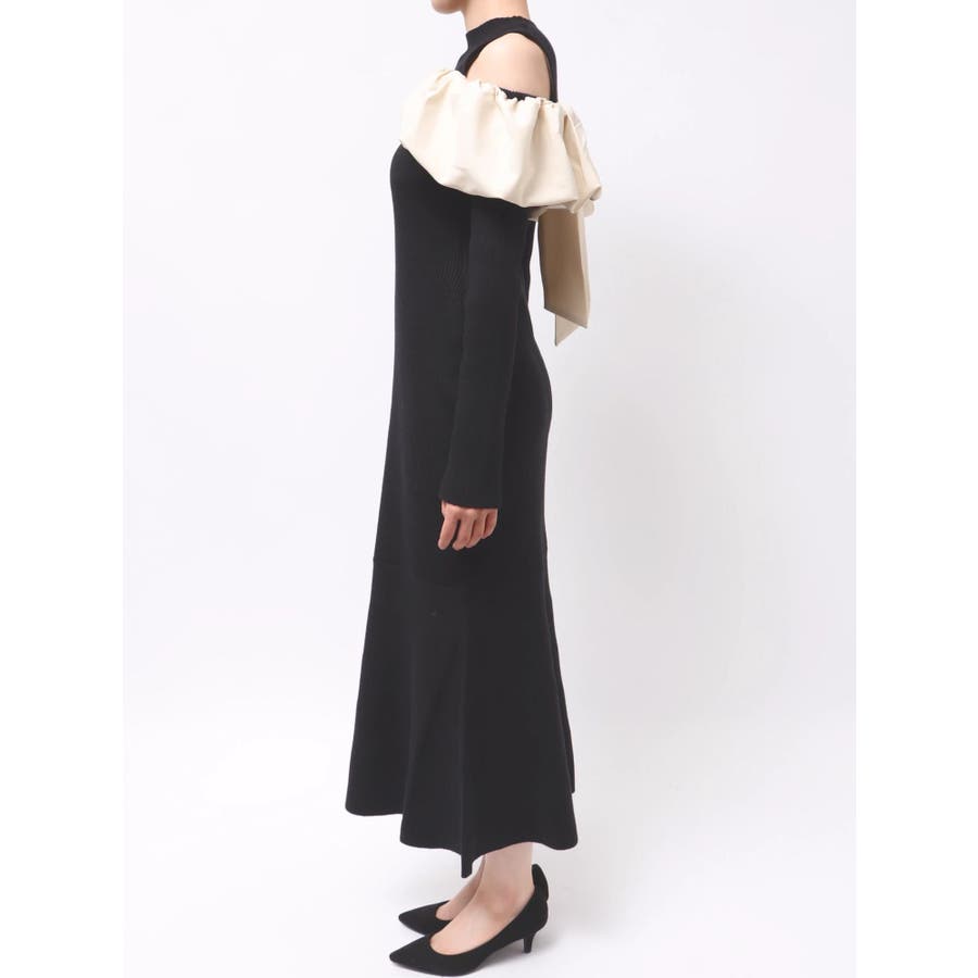 【商品】バルーンネック×異素材ドッキングで、1枚で映える上品ニットワンピースが登場。程よい艶感のあるサテンで顔まわりに立体感をもたらすボリュームネックデザインは、小顔見えも叶う華やかポイント。裾に向かって広がるマーメイドシルエットが、女性らしいラインを引き立て、スタイルアップ効果も抜群です。【スタイリング】ロングコートをさらりと羽織れば、縦ラインが強調されて大人の美バランスに。足元を華奢なパンプスで程よく肌見せすることで女性らしさを高めます。※実際にお届けする商品と仕様やサイズが異なる場合がございます。また生産の都合上、お届け時期が前後する場合がございます。【商品特徴】透け感:なし伸縮性:あり生地の厚さ:普通サイズ感:普通裏地:なしポケット:なしファスナー:なし